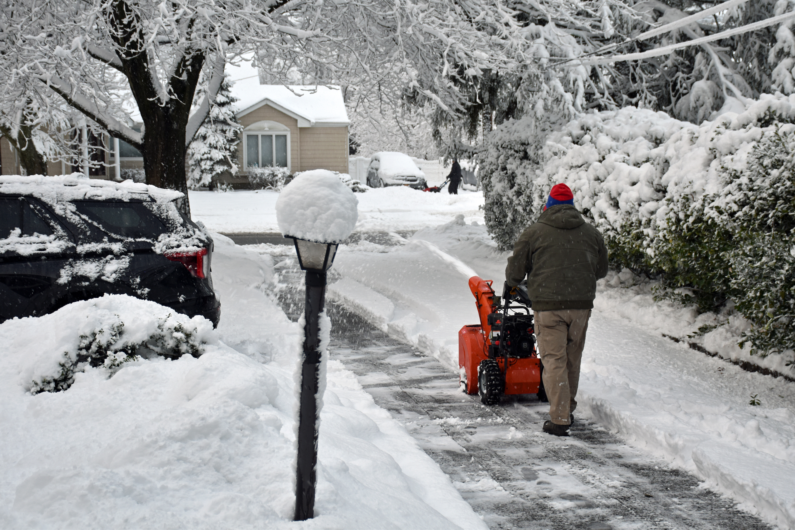By 5:07, snow blowing had commenced: