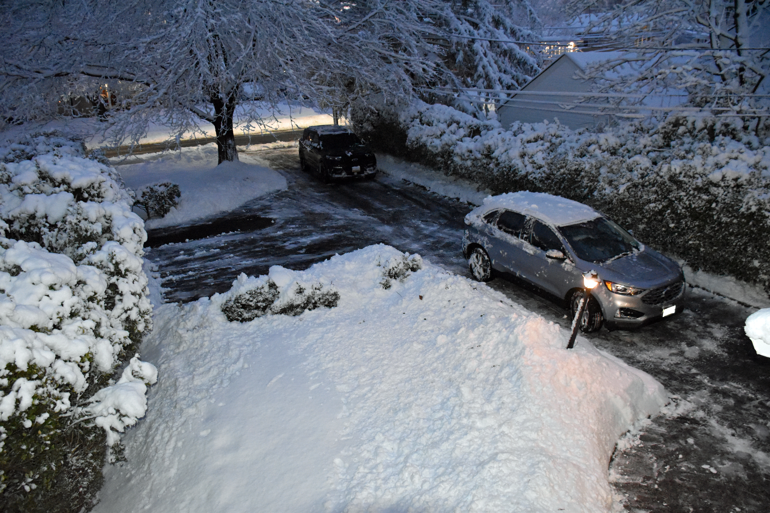 Then, the two of us shoveled. I was finished by 5:40 and took these photos: