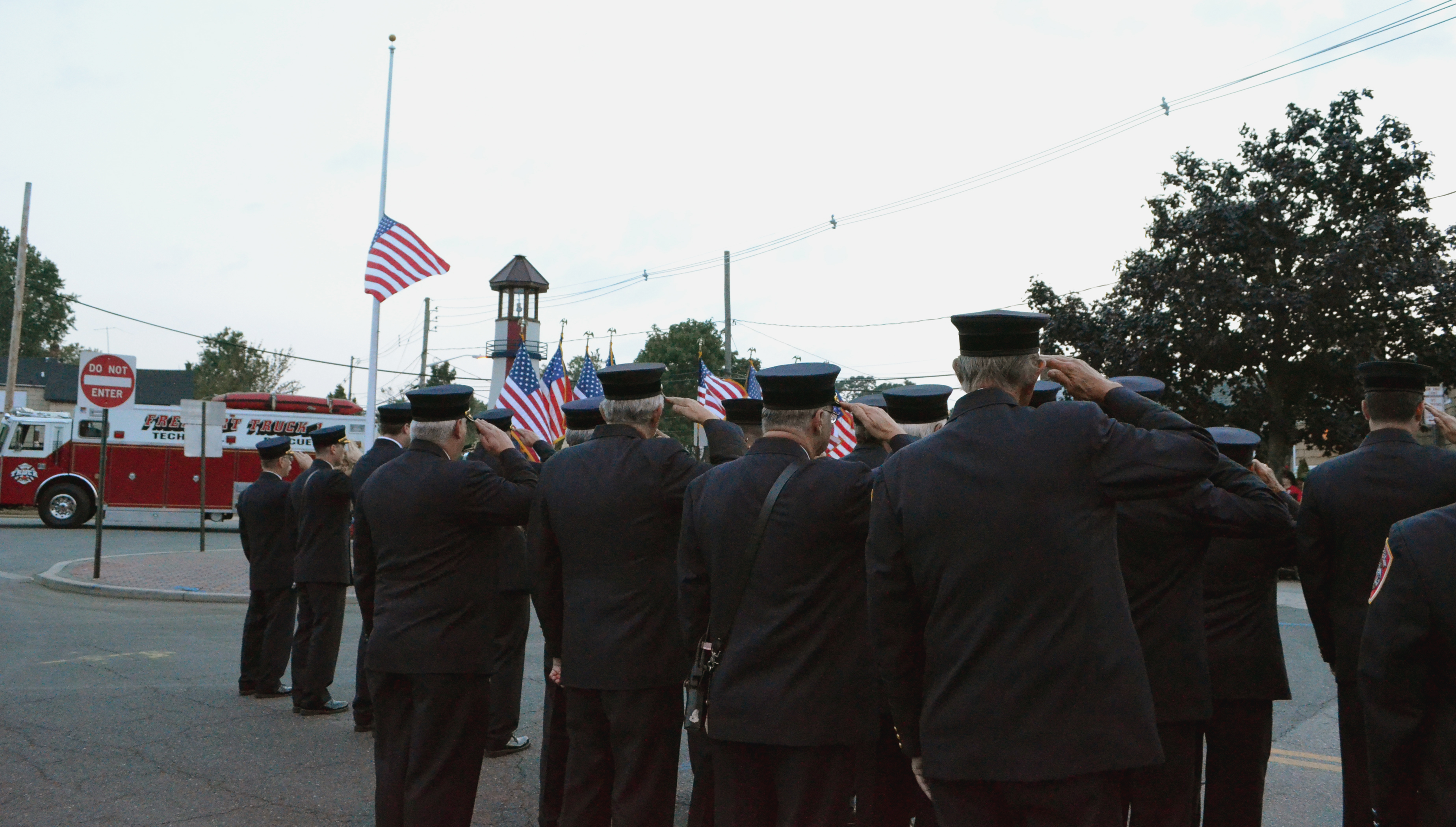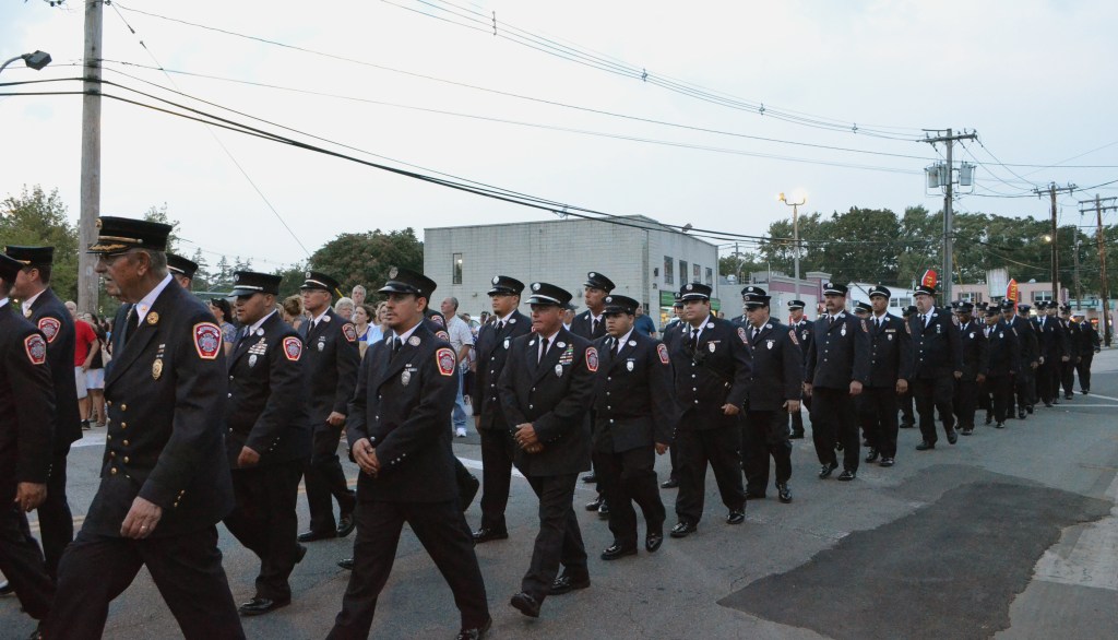 In 2013, I attended Freeport’s 9/11 memorial ceremony. The attacks led my dad to become a firefighter himself in 2002, in Truck 1, Joe Falco’s Freeport Fire Department company. I took a photo of him before the ceremony: