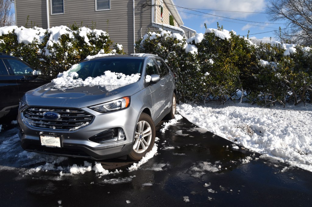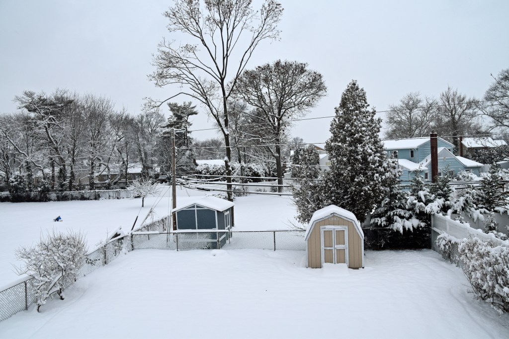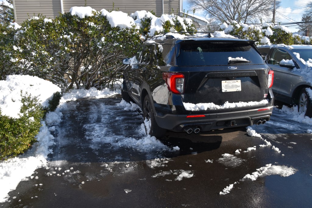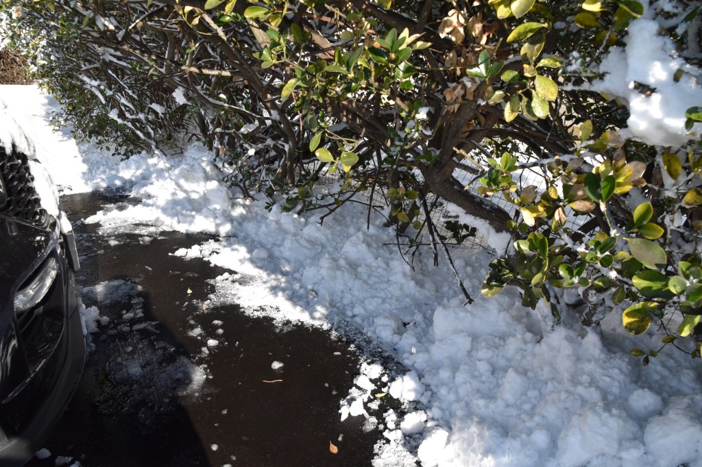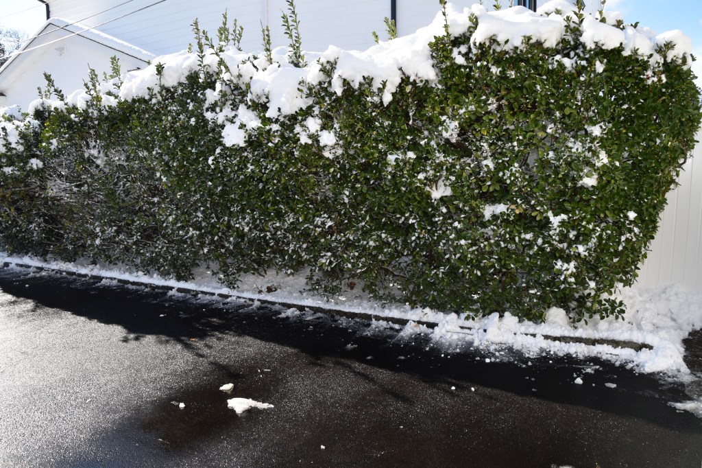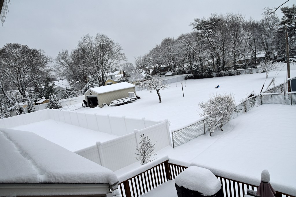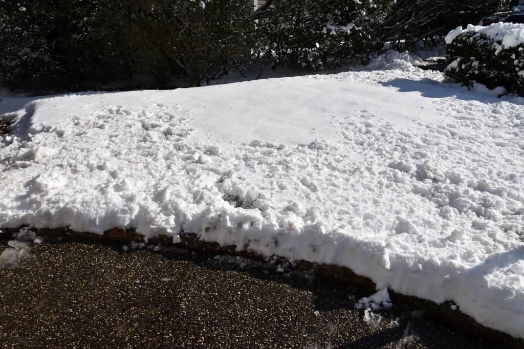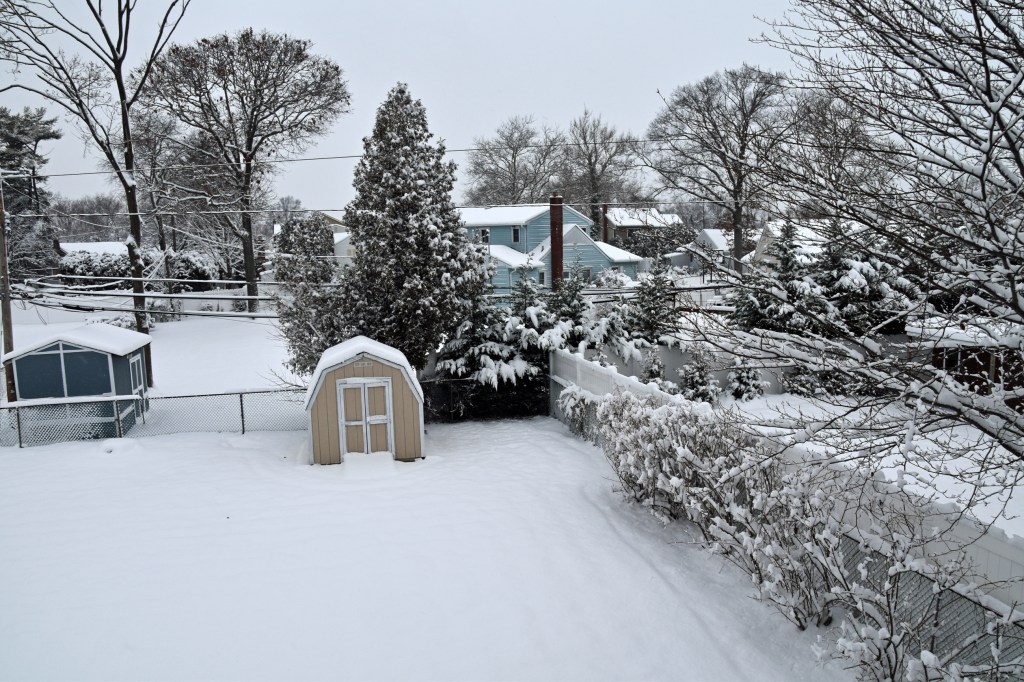 The initial forecast earlier in the week called for a rain/snow mix, but I’ve learned to expect a colder and snowier forecast as the event approaches. That’s what happened here. Thursday’s winter weather advisory called for 3 to 5 inches, then 2 to 4. 8 inches fell (one less than five years ago), at least on our lawn. I measured 5 inches in the driveway, which was resurfaced in August. With air temperatures around the freezing mark (32 degrees Fahrenheit), snow was more wet than powdery, at least by the time I woke up. My friend Jeff Jensen noted it was powdery at the onset. Seeing snow clumped on the trees and bushes misled me.