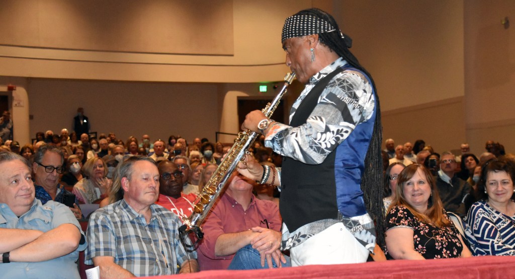 …and Nelson Rangell on alto sax, flute, piccolo, whistling, and vocal percussion (seen on alto):