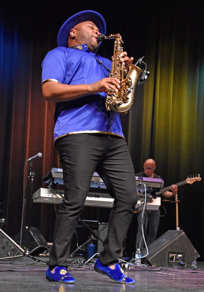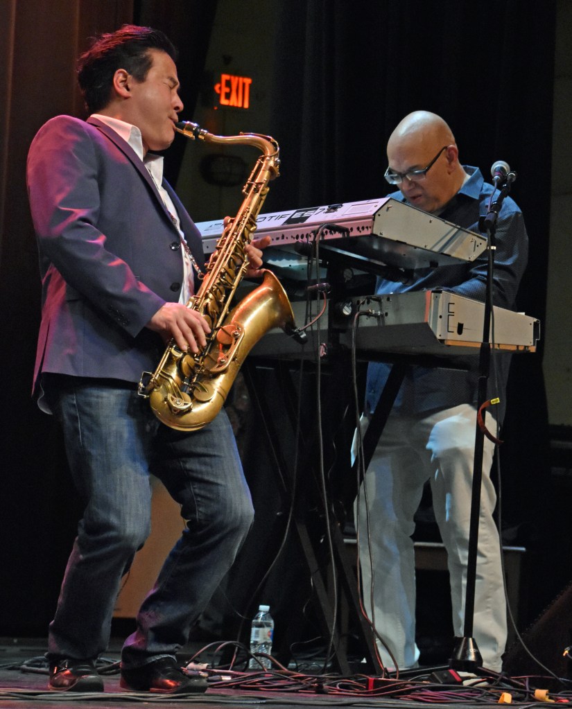 Keyboardist Jay Rowe‘s 18th annual Smooth Jazz for Scholars (benefiting the Milford Public Schools music department) continued Saturday night with the second of two shows. Saturday’s headliners were Jeff Kashiwa (who made a surprise appearance late Friday), Alex Bugnon, and in his debut, Marcus Anderson. Alex appeared in place of Brian Simpson, who had to back out at some point after my promotional blog post in February. SJFS attendees last saw Alex on the first night in 2013.