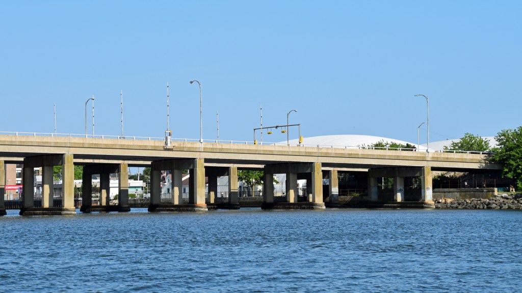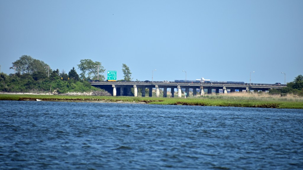I’d get a better view of this Loop Parkway bridge on the way back, as well, but here, you can make out Jones Beach Theater.