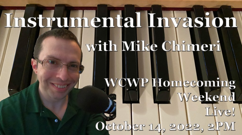 The second Instrumental Invasion of this year’s Homecoming Weekend block on WCWP was recorded one hour per day on October 2 (at home) and 3 (at my second location). I considered it a backup that might air, but found out last Saturday that it would air at 6AM Sunday. (Click here for a recap of Friday’s live 2PM show.)