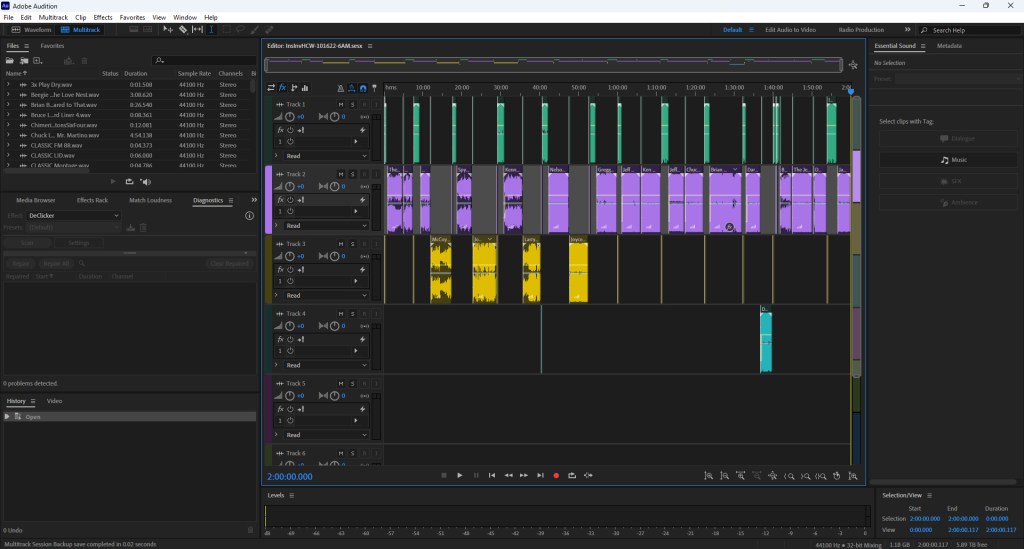 My attempt at airchecking Jamie Mazzo and Sara Dorchak’s Ladies of Prison Break Radio show at 10AM was a bust. With my weekly Zoom meeting at 11:30, I had to aircheck on my laptop. I should have recorded the audio loopback, like on my desktop, but I didn’t. The same unnatural audio boost problem that kept me up in the hours after my September 14 show afflicted the laptop aircheck.