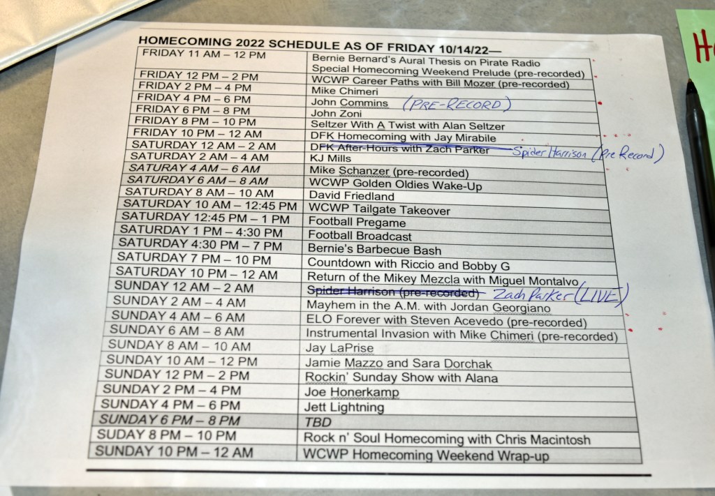 Friday’s live WCWP Homecoming Weekend show was my first live radio show in three years and the first live show of the 61-hour block (starting at 11AM, not noon)!