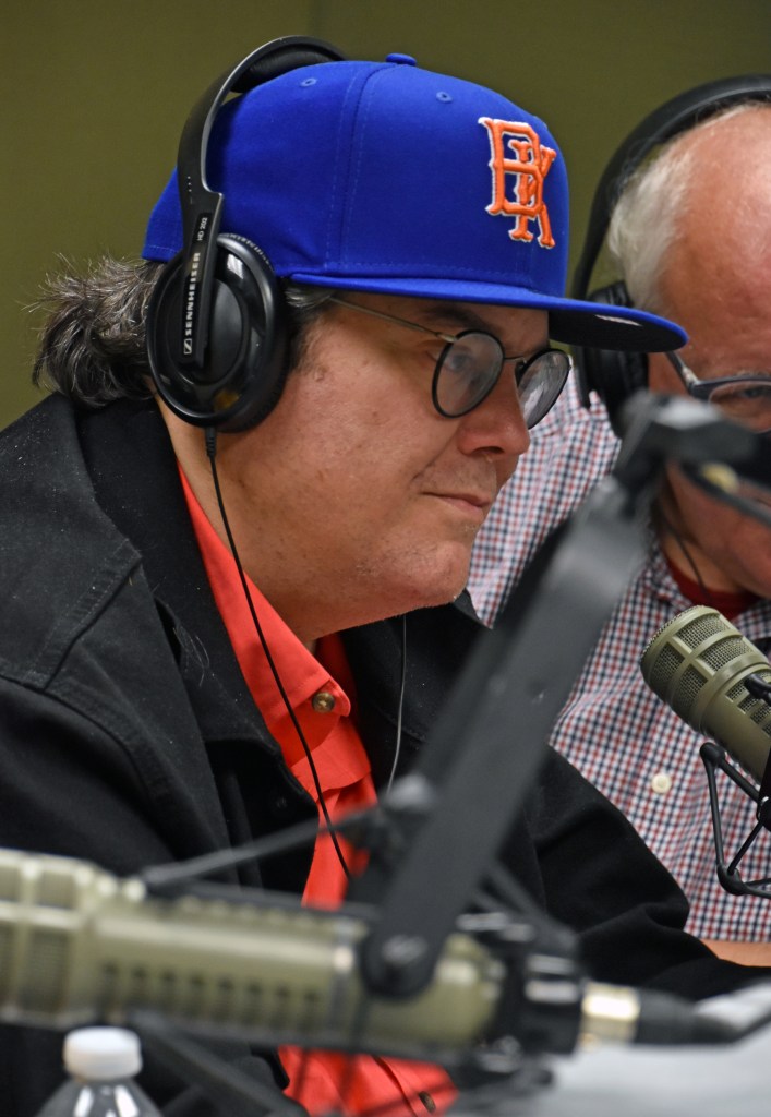 The tradition of Mike Riccio (sitting) and Bobby Guthenberg (standing) following Bernie with their countdown show continued this year. Bernie spoke with them beforehand.