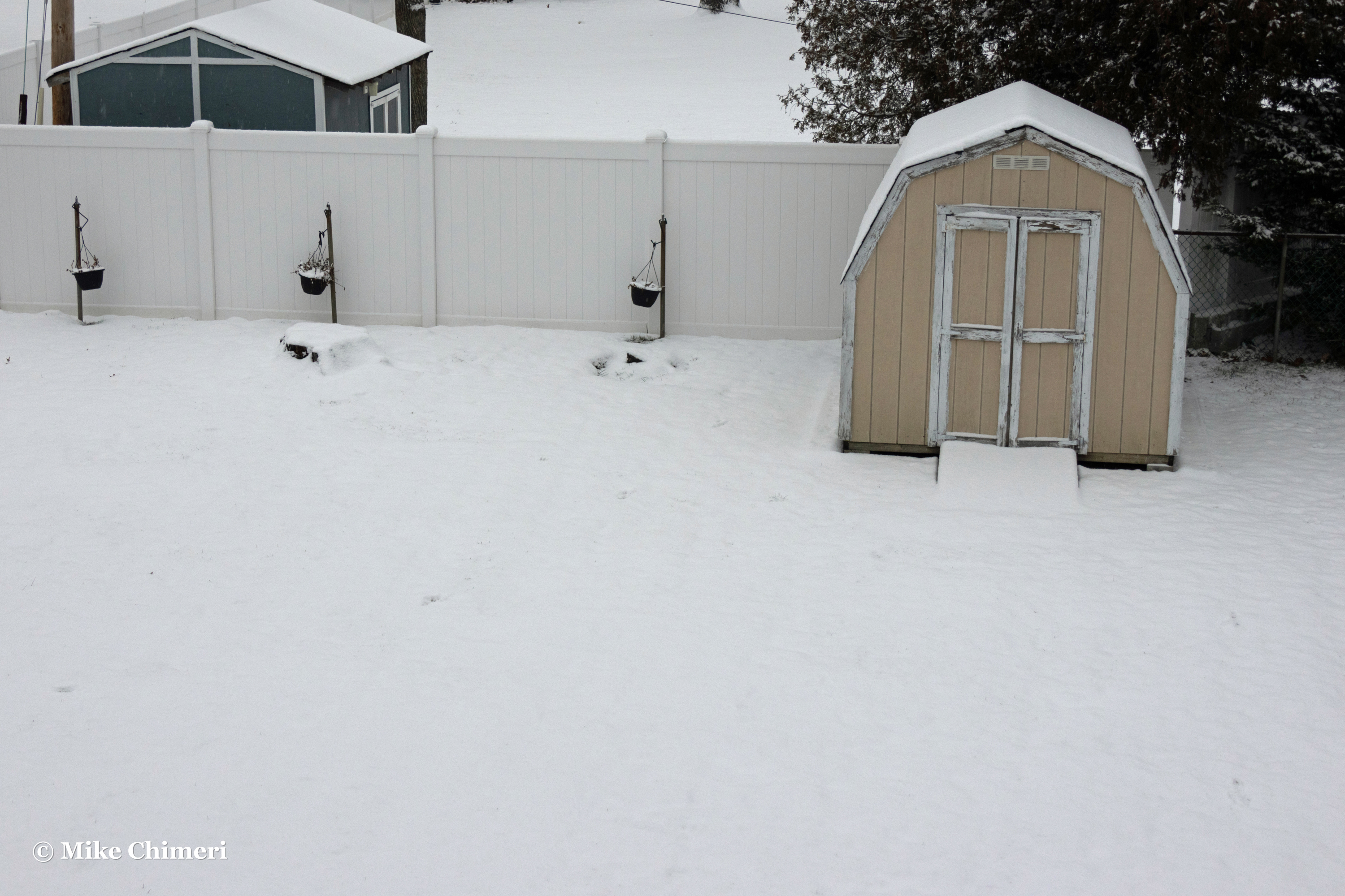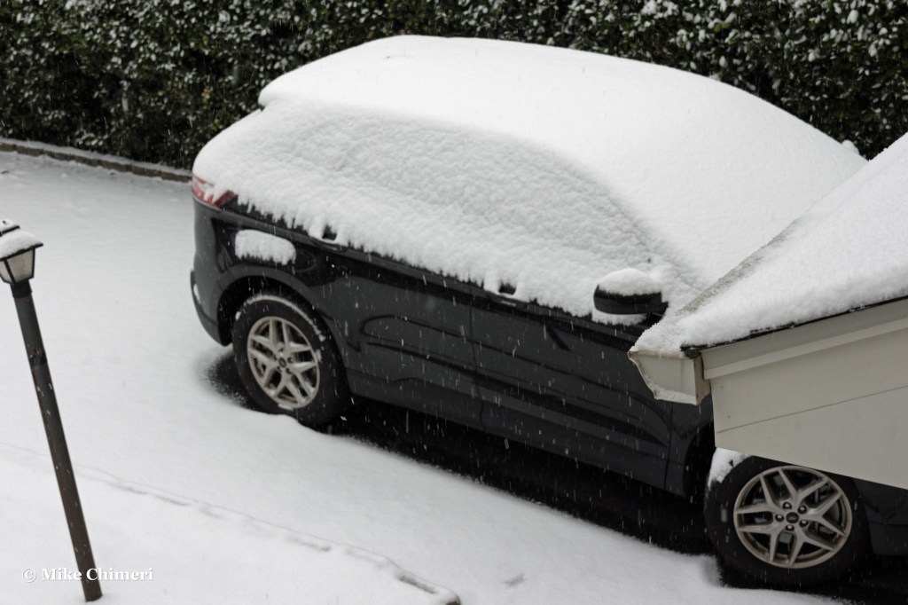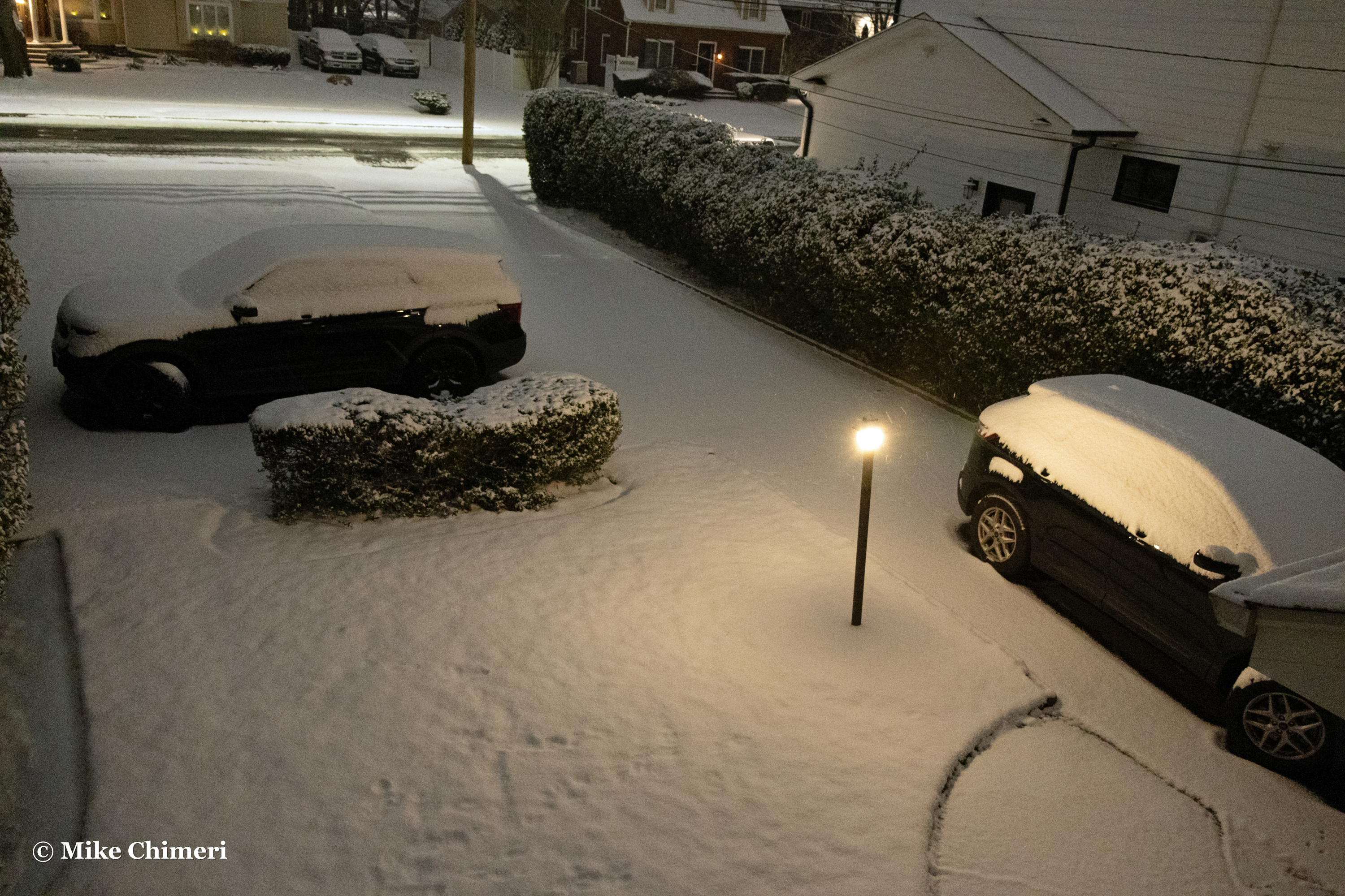What follows is a photographic timeline from the snowfall before bed on Monday night through the cleared driveway and car after walking to and from my credit union to deposit coins (and bringing garbage pails to the curb for Wednesday morning pickup).