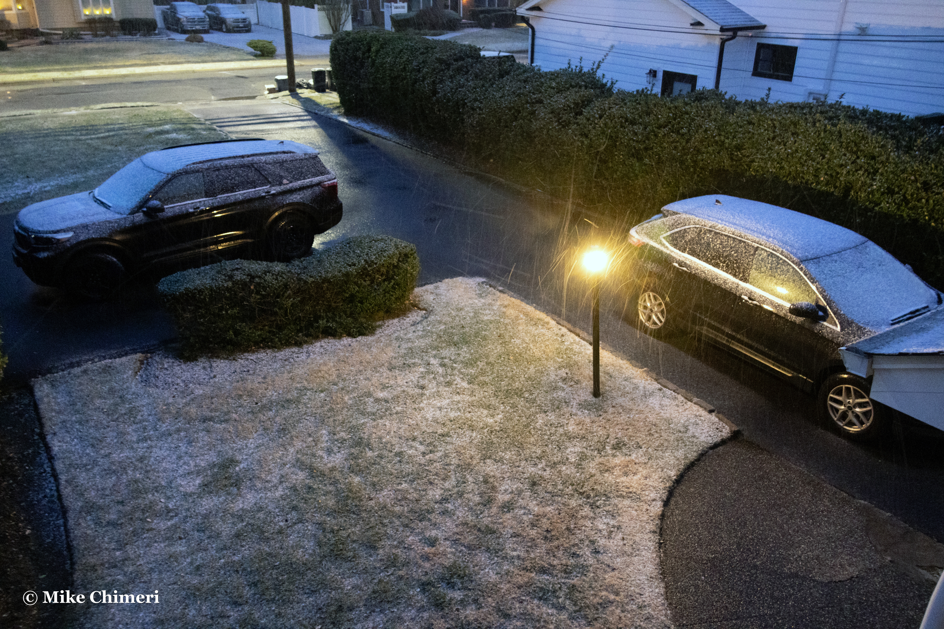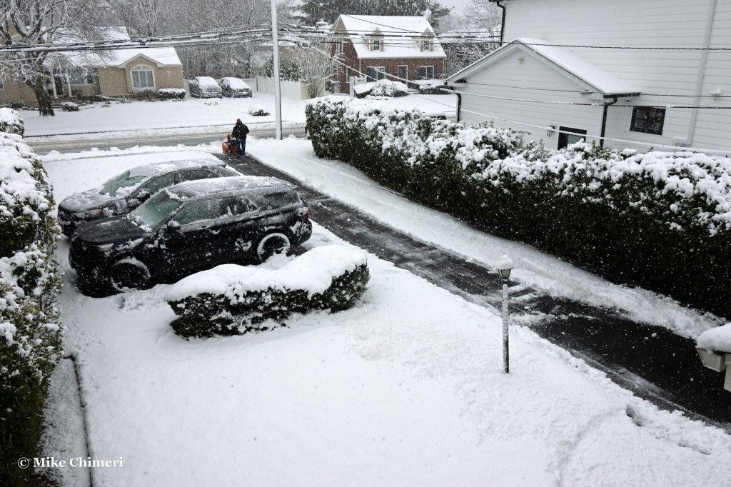 Despite reassurances from Facebook friends that the forecast was media hype and little to no snow would fall, it fell nonstop from about 6AM to about 1PM. I didn’t measure afterward, but going by the NWS snow report for neighboring Levittown, I figure my neighborhood in Wantagh got 6 inches.