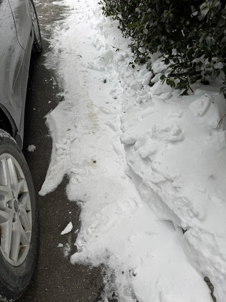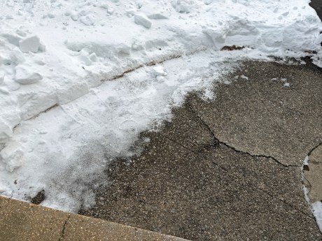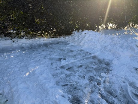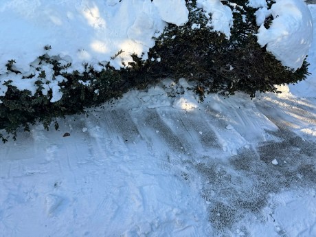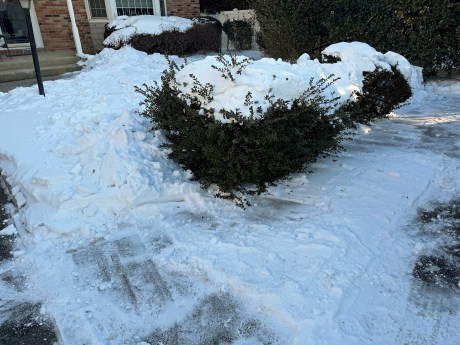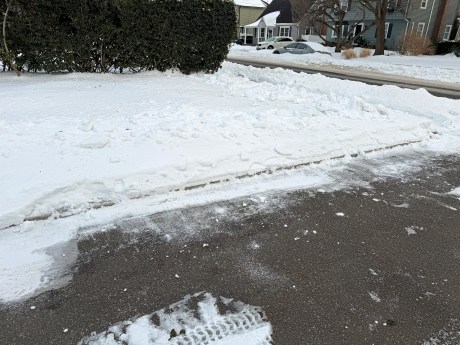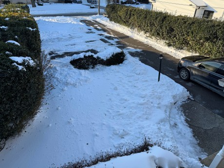 I volunteered to follow-up on Dad’s snow blower work by completely clearing as snow as I could that remained on the driveway and sidewalk. Phase 1 occurred last Tuesday afternoon. Without my Canon EOS R7 on hand, I used my iPhone 17 Pro for aftermath photos at 4:08 PM.