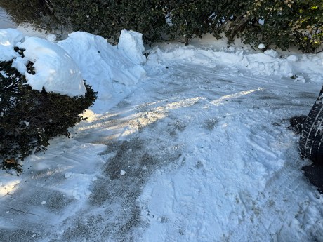In a 48-minute span, not counting when I paused my watch’s stopwatch feature, I could only clear the front porch, porch steps, pathway between the porch and driveway, the edge of the driveway by the garage door, and a path to the oil tank fuel cap on the left side of the house.