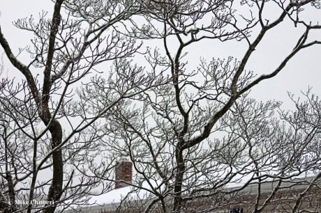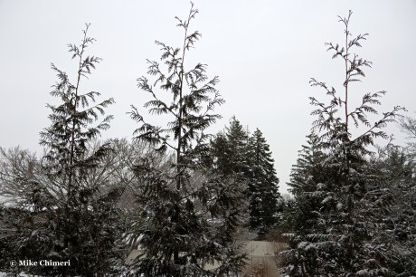 When I looked outside for the first time after sunrise, I noticed remnant flurries falling. This set of photos was taken between 7:32 and 7:38 AM. The location of the photos is noted in the captions.