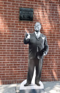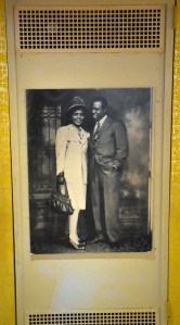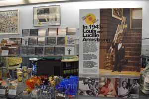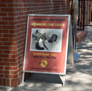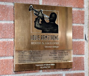The tour headed upstairs where the aforementioned bedroom and recording room were located. The bedroom had a double-size bed with drawers on either side, paintings of scenery hanging on the walls, Mylar wallpaper, a lamp, and a chandelier. The Mylar wallpaper carried into the spacious bathroom and closet. The recording room had reel-to-reel tape decks, amps, a record player, radio, shelves of records and tapes, a desk, and a portrait of Louis painted by his friend Tony Bennett. Bennett signed it with his real surname: Benedetto. Actually, the tapes and records are housed at Queens College, but will move to the Education Center that is going to be constructed across the street from Louis’s house.