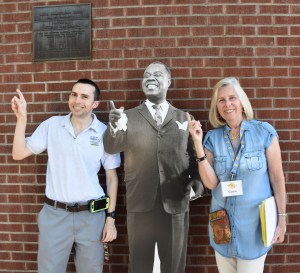 When we got back outside, Elaine suggested we pose with Louis’s cutout. She said it was necessary to gesture as he did: