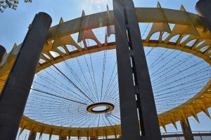 As I noted at the top, we walked through the park first. On our way to the Unisphere, I got a great view of the New York State Pavilion:
