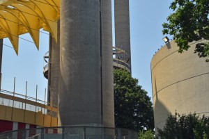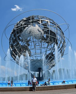 One day last July, my friend Lori Downing and I toured the Fire Island Lighthouse. On Wednesday, our destination was Corona, Queens, to tour a pair of museums. Our first stop was the Louis Armstrong House Museum on 107th Street, followed by the Queens Museum in Flushing Meadows-Corona Park. In between, we walked through the park to see two relics from the 1964 New York World’s Fair: the abandoned New York State Pavilion, and the Unisphere. That part of this post includes home movies my grandfather shot at the fair, as well as recollections from my aunt Randy and Hank Neimark.