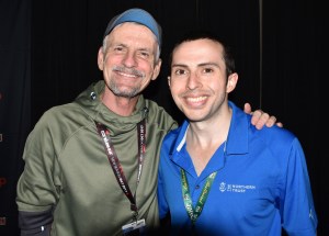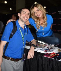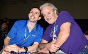 As I waited in line, I saw Dee and other celebrity guests assembling behind the curtain. I waved to Dee and he signaled back to me, pointing two fingers at his eyes and then toward me, as if to say “I’m watching you.” That was flattering. When I was next in line, I learned that photos were not allowed at the table; autographs only. I asked the representative if he had a photo op. Yes, at 3:40, an hour and 50 minutes before the rescheduled Shatner photo op would have been. I was fine with that.