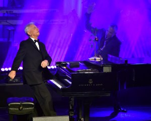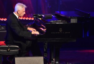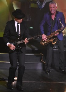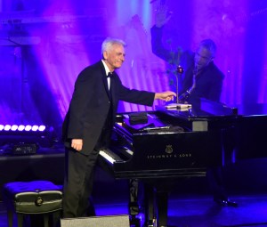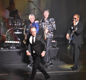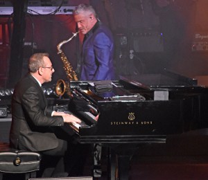 The show began at 8:08 when David Benoit, offstage, announced: “Ladies and gentlemen, please welcome your host for the evening, Dave Koz!”