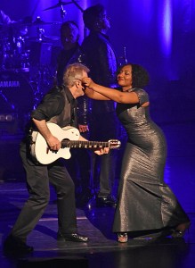 Saturday night, my friend Lori Downing and I saw the Dave Koz 20th Anniversary Christmas Tour at the Tilles Center for the Performing Arts on the campus of my college alma mater, LIU Post. Saxophonist Dave Koz’s friends are guitarist Peter White, horn player Rick Braun, pianist David Benoit, and singer Selina Albright, daughter of saxophonist Gerald Albright. (She plays the sax, too.) The rest of the band was made up of music director Randy Jacobs on guitar, Brian Simpson on keyboards, Nathaniel Kearney Jr. on bass, and Jay Williams on drums.