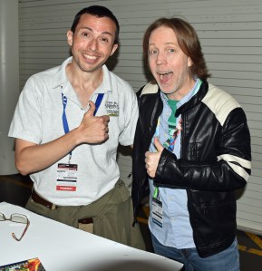 Of course, Tom is the titular character on SpongeBob SquarePants. I love that show, but also love Futurama, where Tom’s credits include the all-purpose commissioner Abner Doubledeal and Leela’s bland eye doctor boyfriend Adlai Atkins, and the aforementioned Johnny Bravo, where he played Johnny’s (Jeff Bennett) nerdy friend Carl Chryniszzswics (“cruh-SIN-uh-wits”). He was glad to hear Carl get some love at the convention, as one attendee ahead of me had a drawing of Carl. We talked about his co-star, the late Larry Drake, who voiced Pops. I even imitated Pops (“Hey, Johnny!”). Tom told me about Larry’s horror film background, which I wasn’t aware of but glad to learn. Prior to Johnny Bravo, I only knew him from L.A. Law.