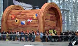 The ride to Penn Station took about 45 minutes. When I exited at 8th Avenue and West 33rd Street, I greeted by persistent drizzle. It followed me all the way to the Javits Center. It took a while for the massive throng of attendees to get through security, but my search was quick and scold-less. After I was checked, I walked toward the entrance and then zipped my backpack compartments back up.