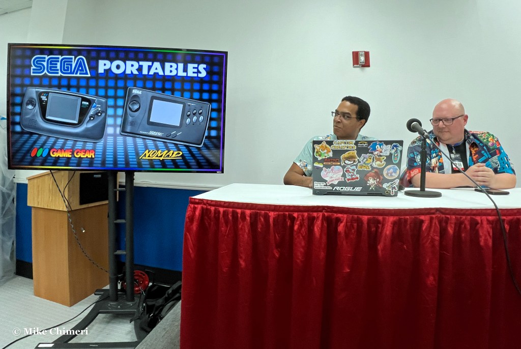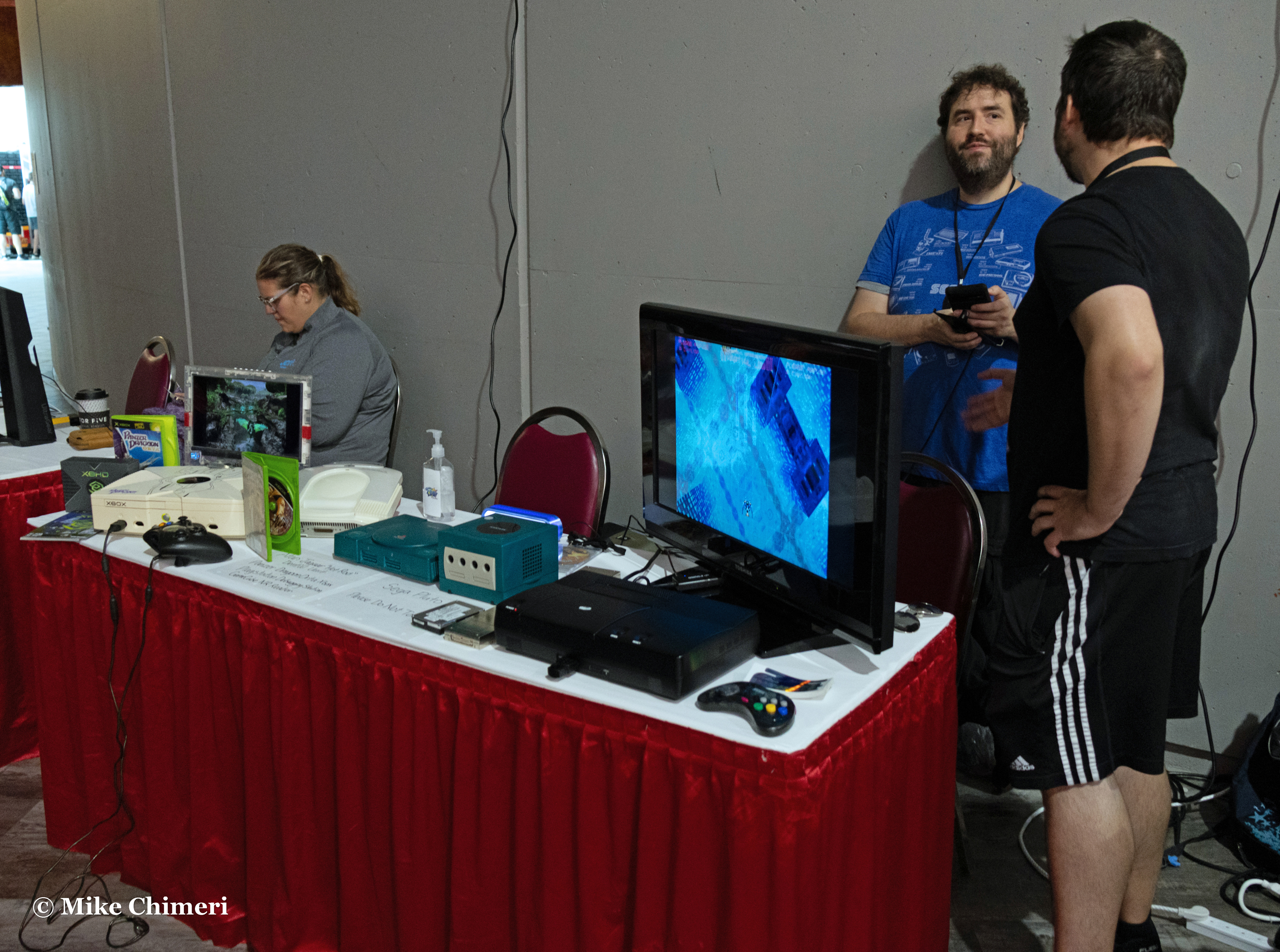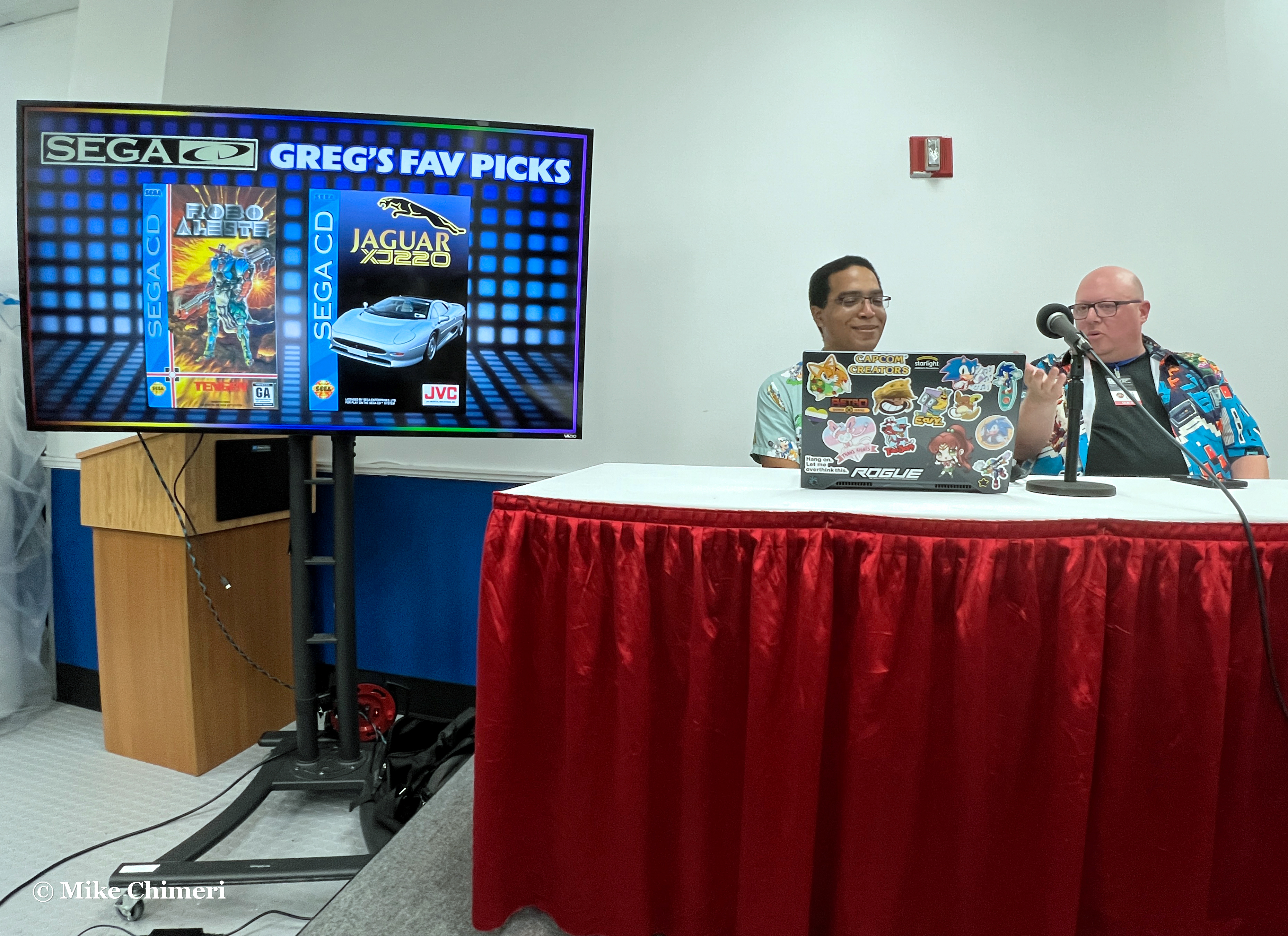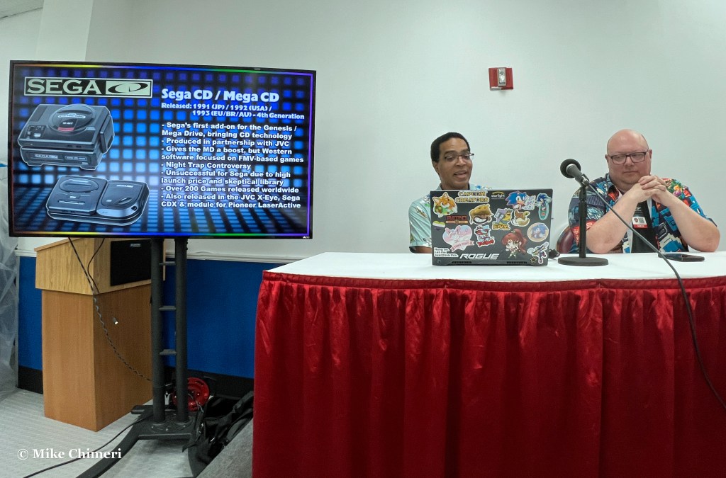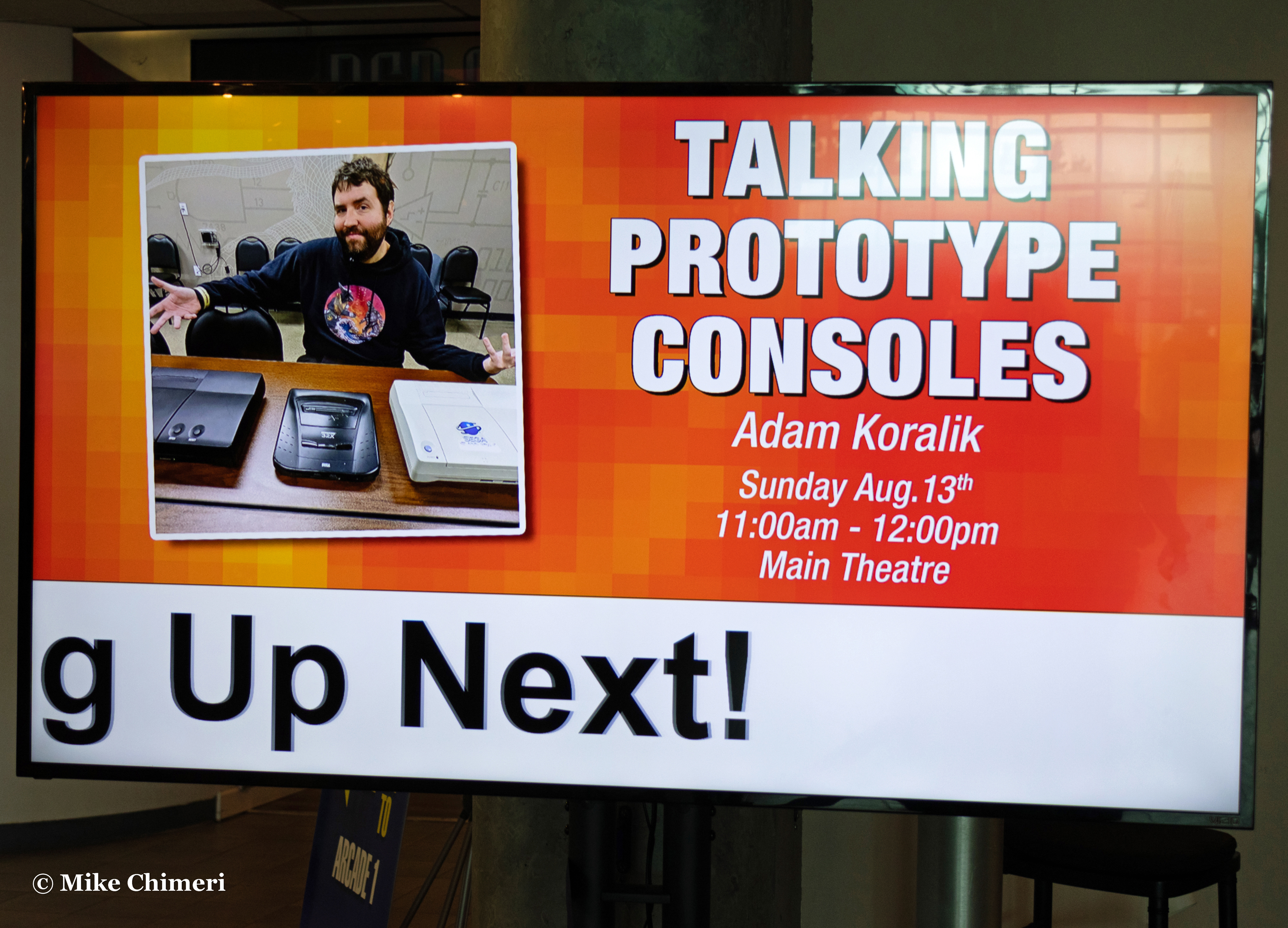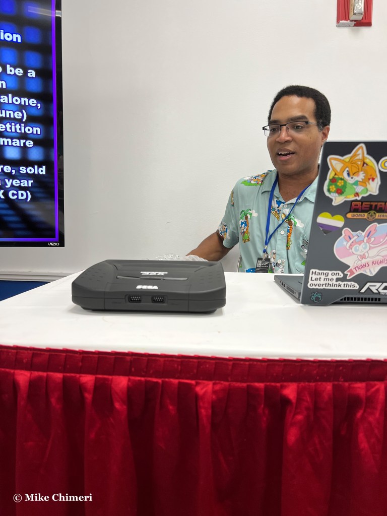 Sunday afternoon, “Mike Camera” and Adam Koralik met a third time. (That’s my server name on his Discord.) Adam’s trusty Sega Pluto prototype was part of the Retro Gaming Museum exhibit and he was more than happy to discuss it with attendees and have them try out its few playable games.