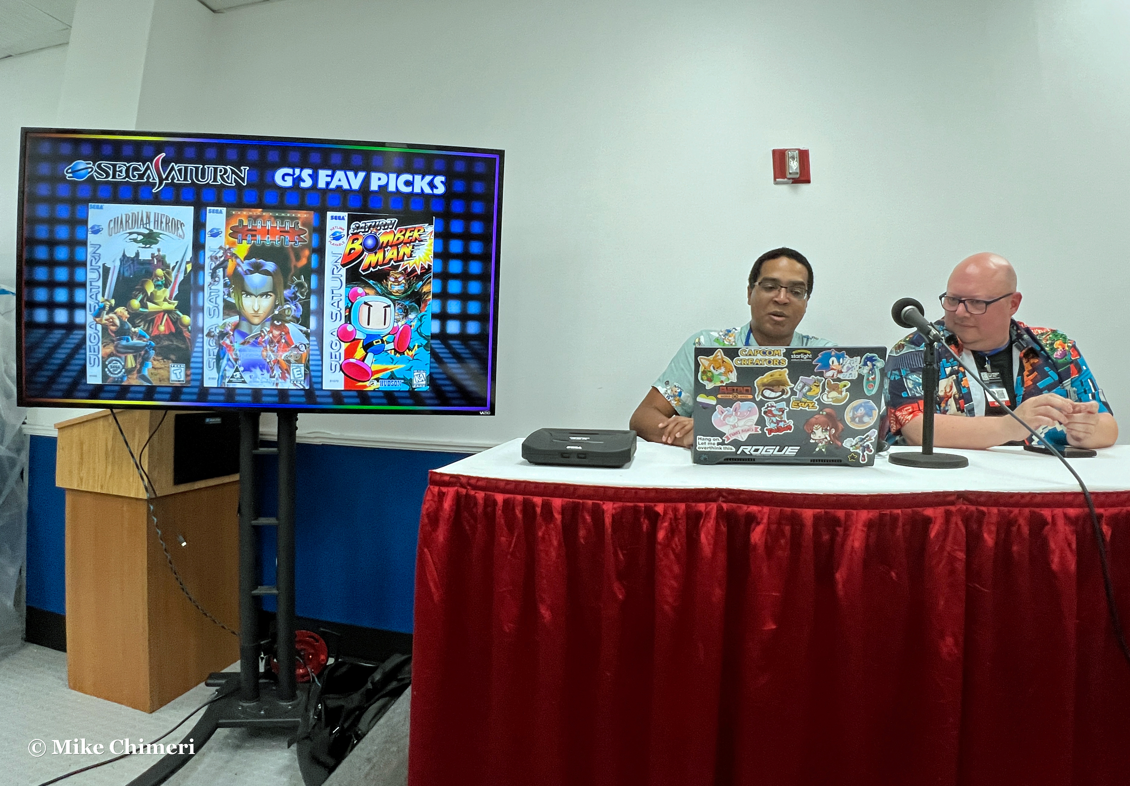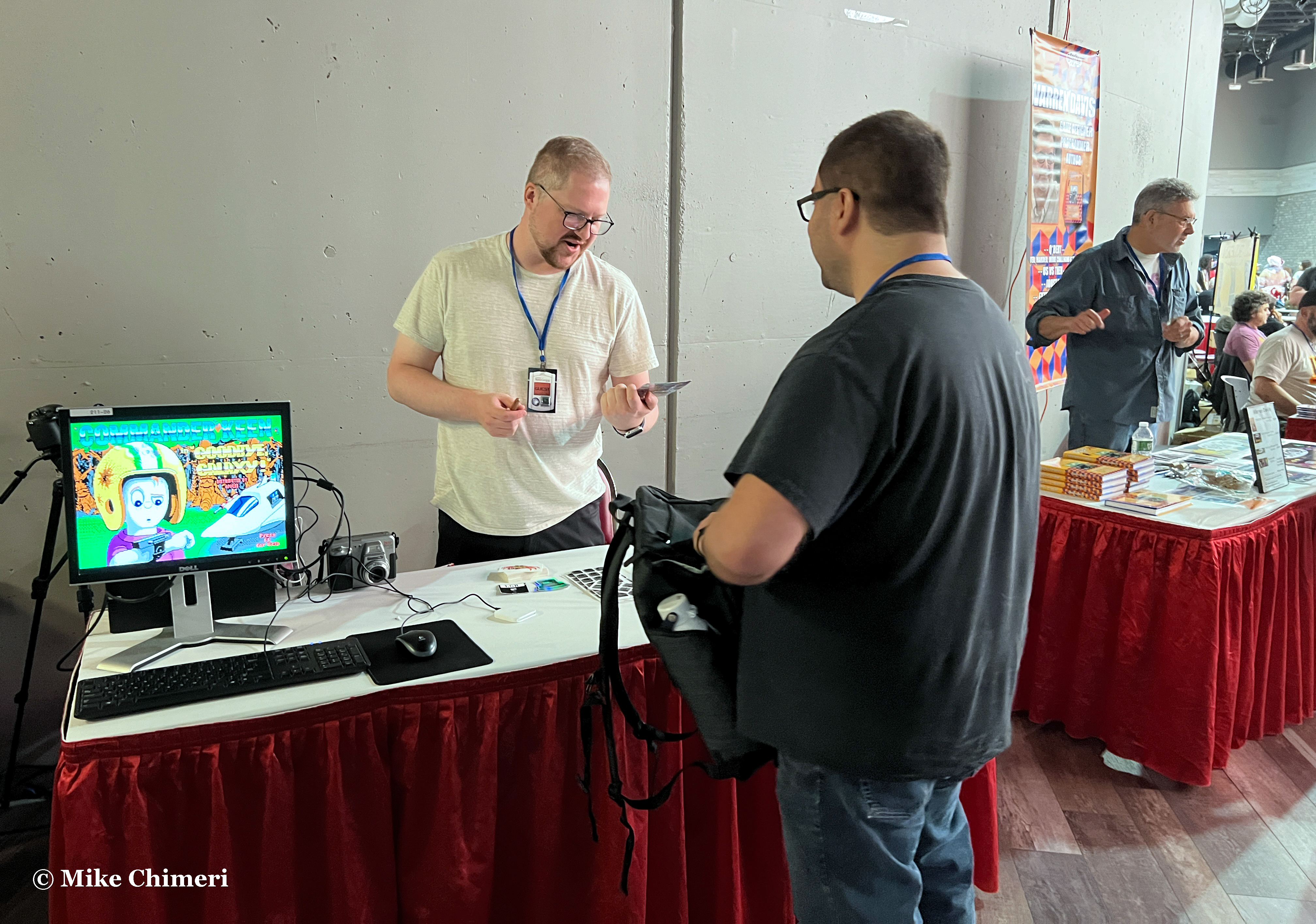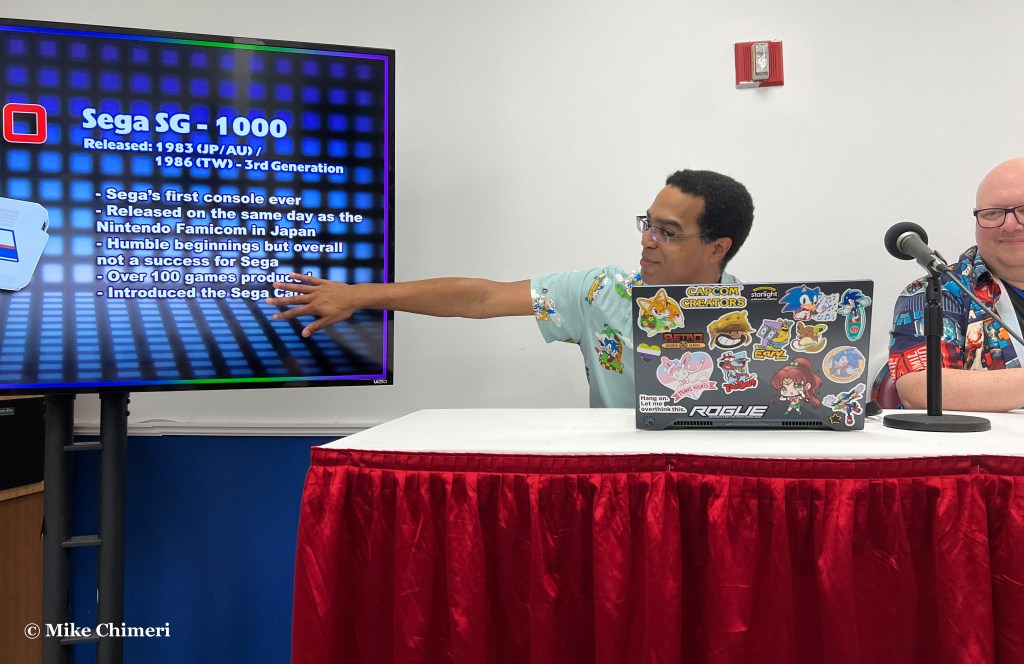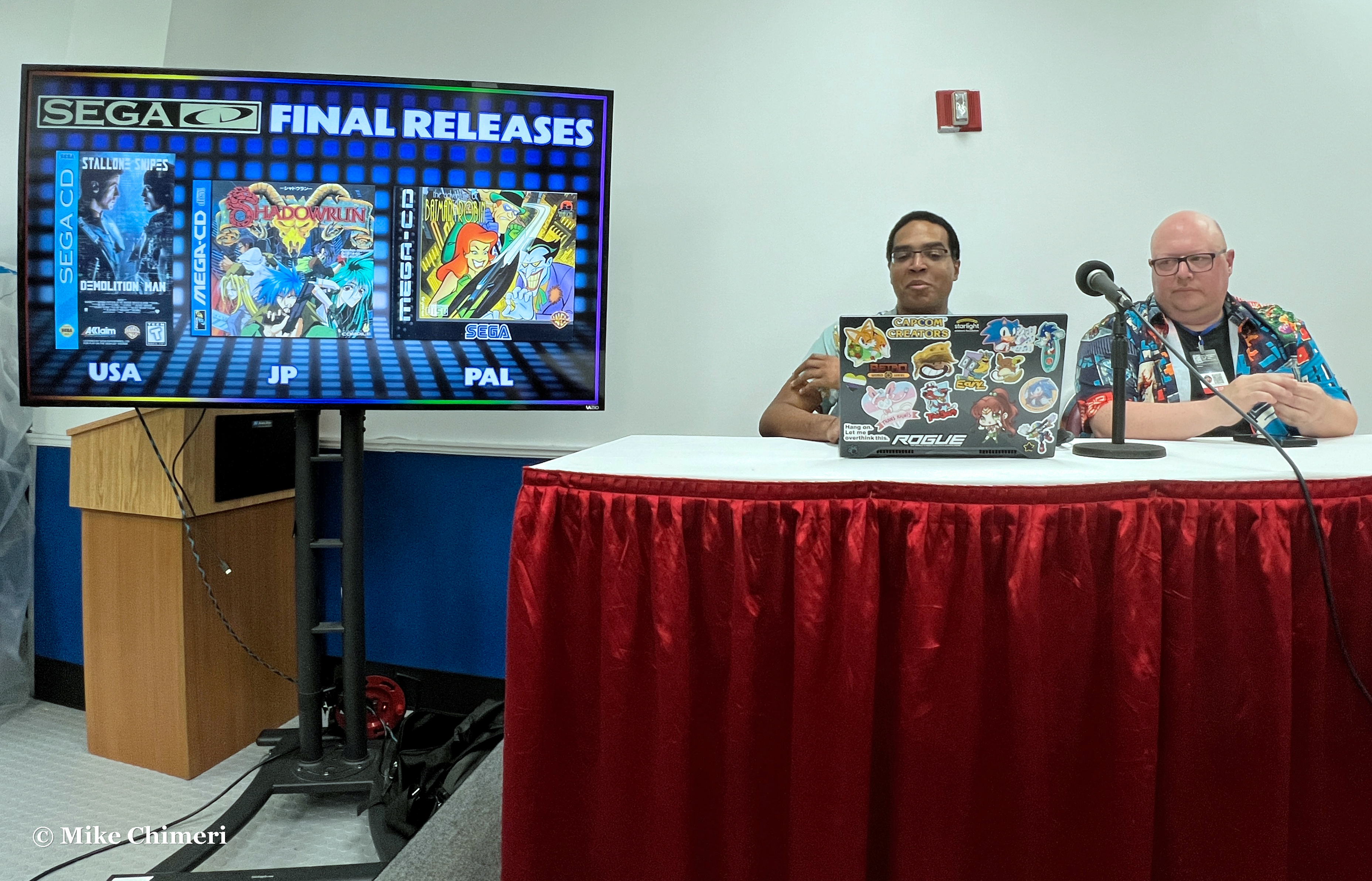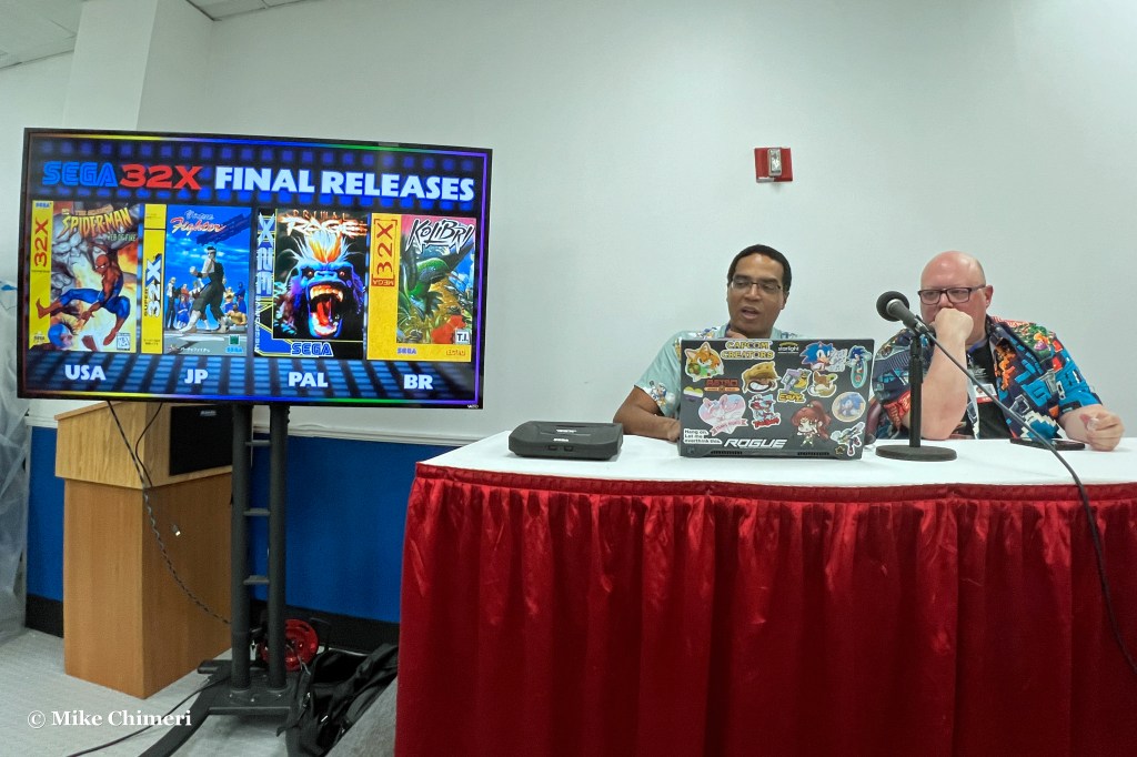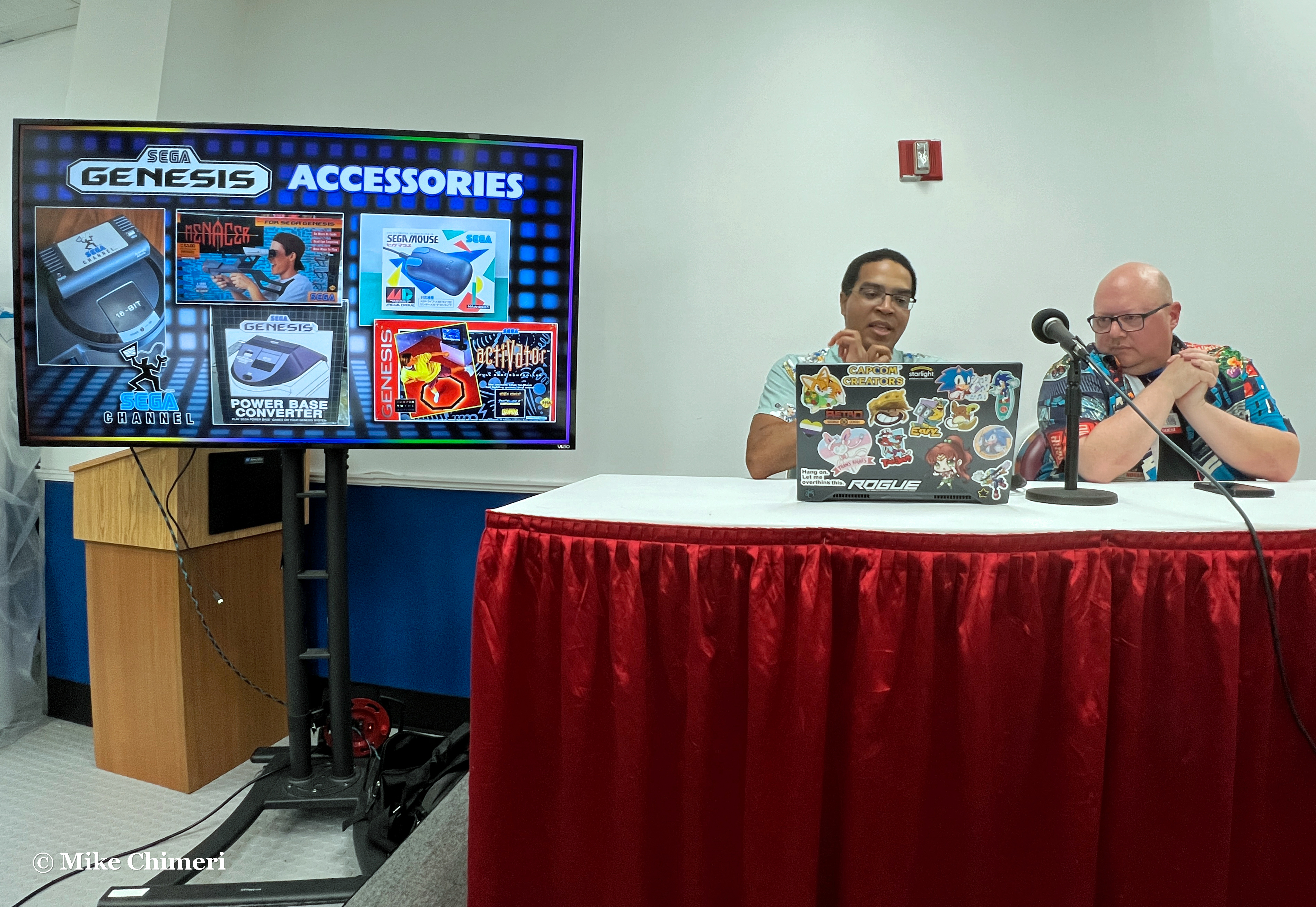 Sunday afternoon, “Mike Camera” and Adam Koralik met a third time. (That’s my server name on his Discord.) Adam’s trusty Sega Pluto prototype was part of the Retro Gaming Museum exhibit and he was more than happy to discuss it with attendees and have them try out its few playable games.