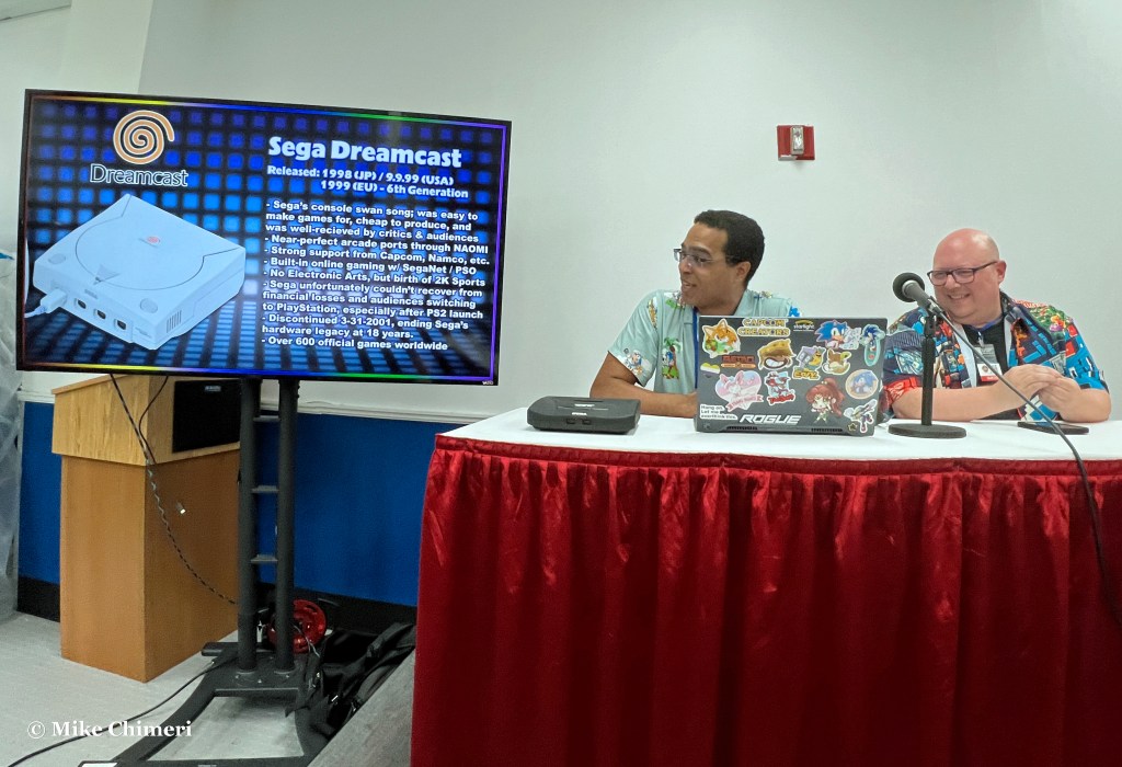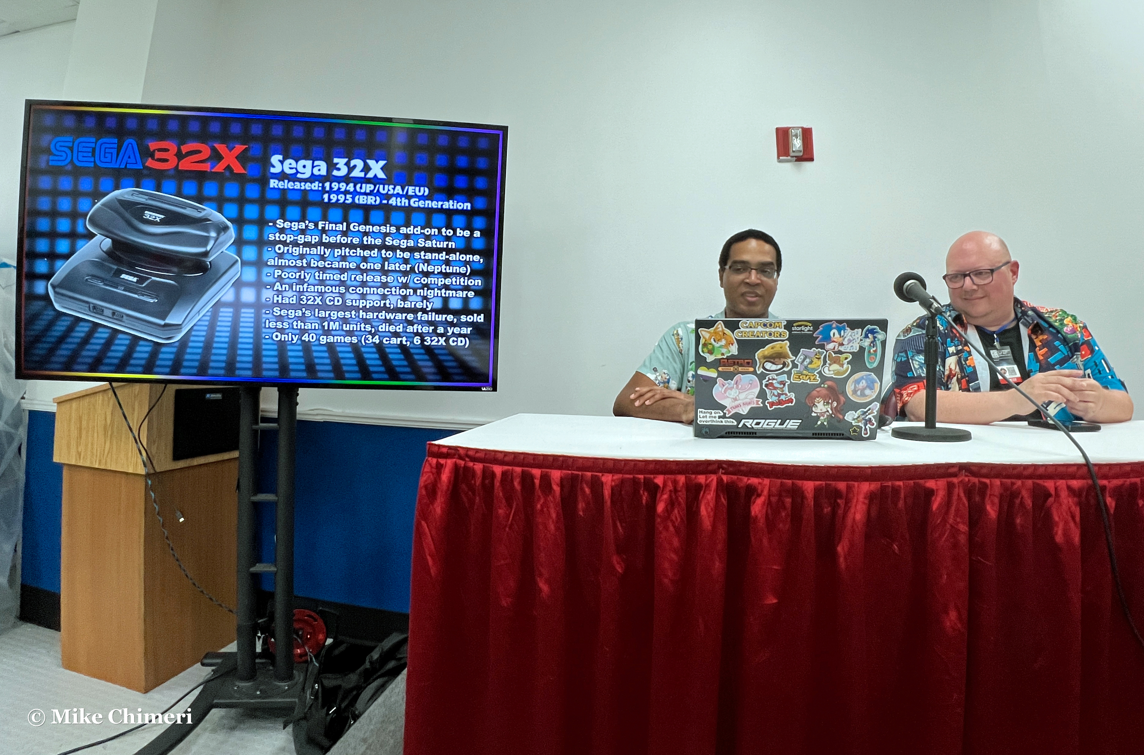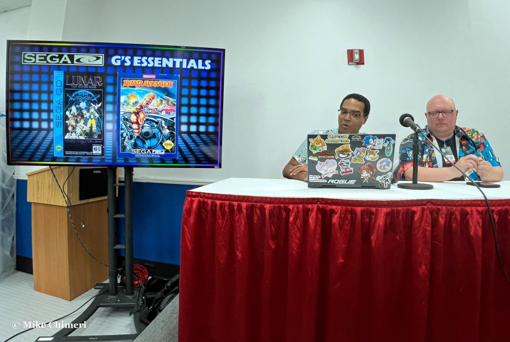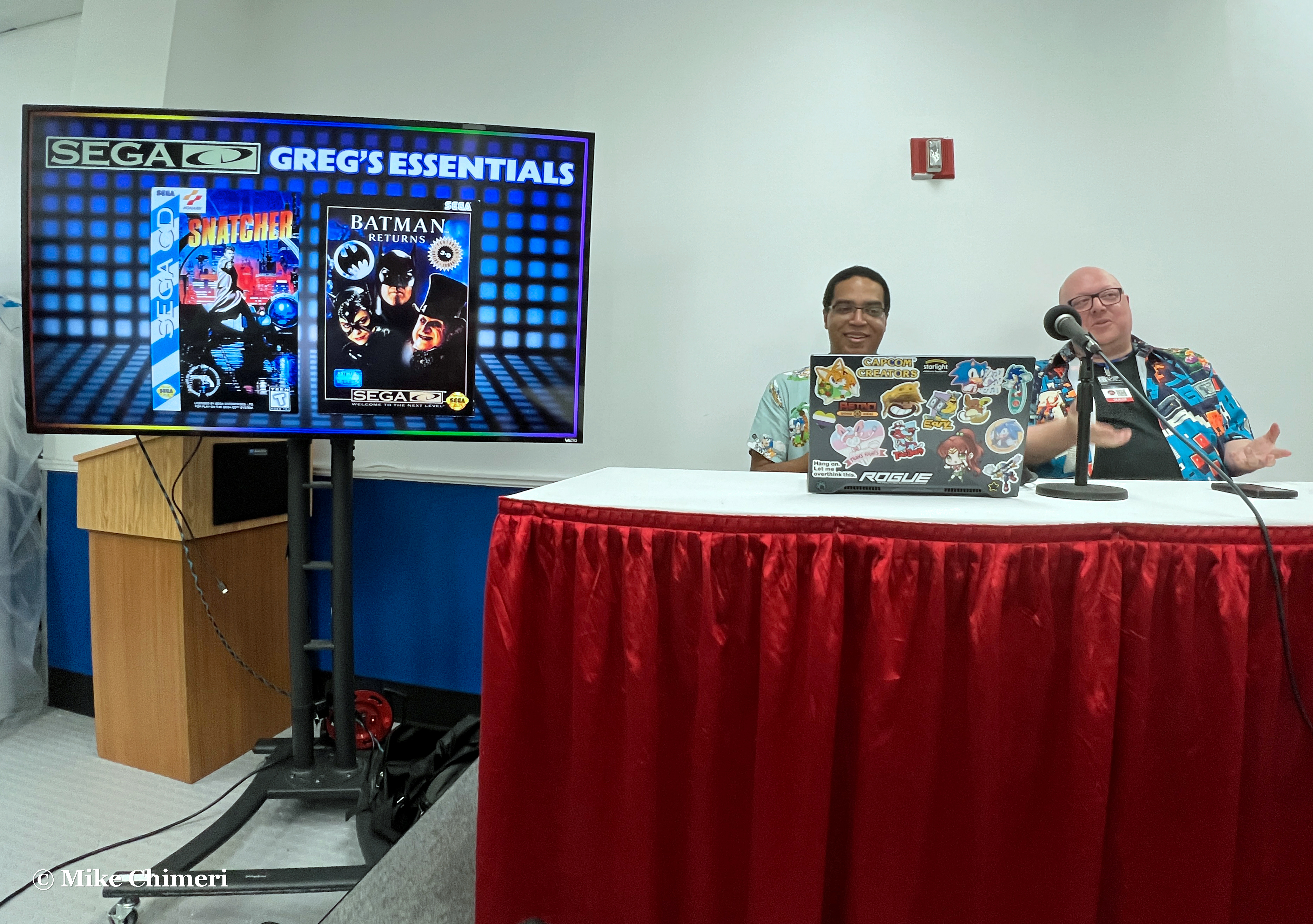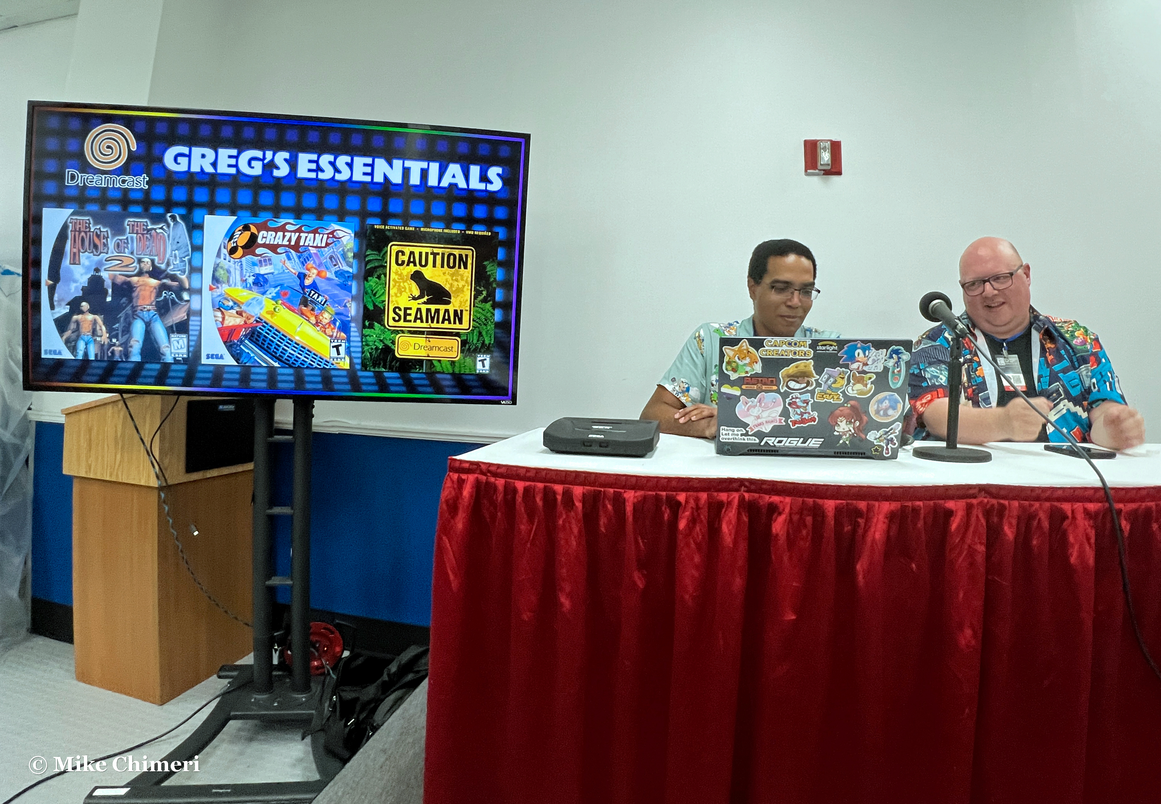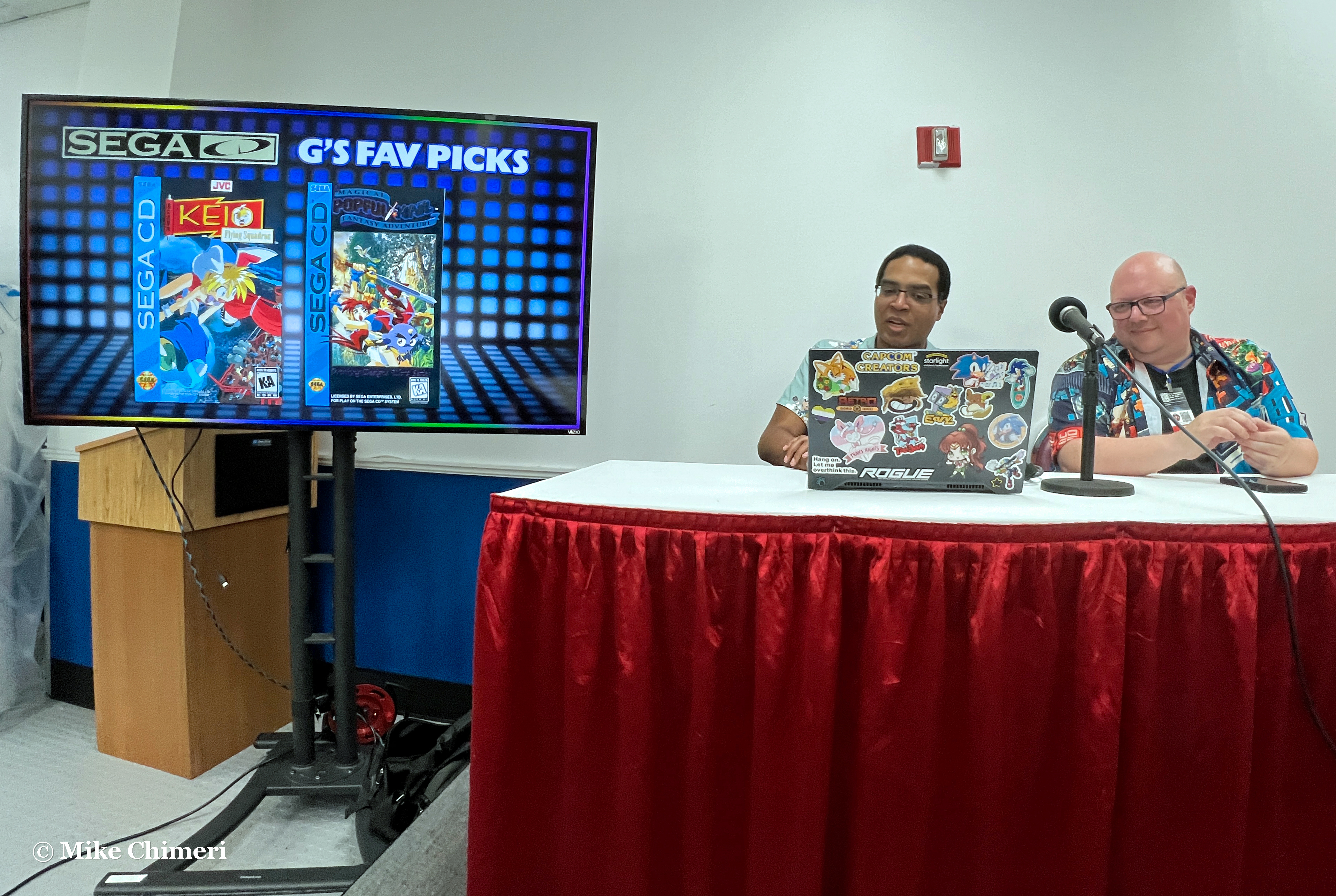 Sunday afternoon, “Mike Camera” and Adam Koralik met a third time. (That’s my server name on his Discord.) Adam’s trusty Sega Pluto prototype was part of the Retro Gaming Museum exhibit and he was more than happy to discuss it with attendees and have them try out its few playable games.