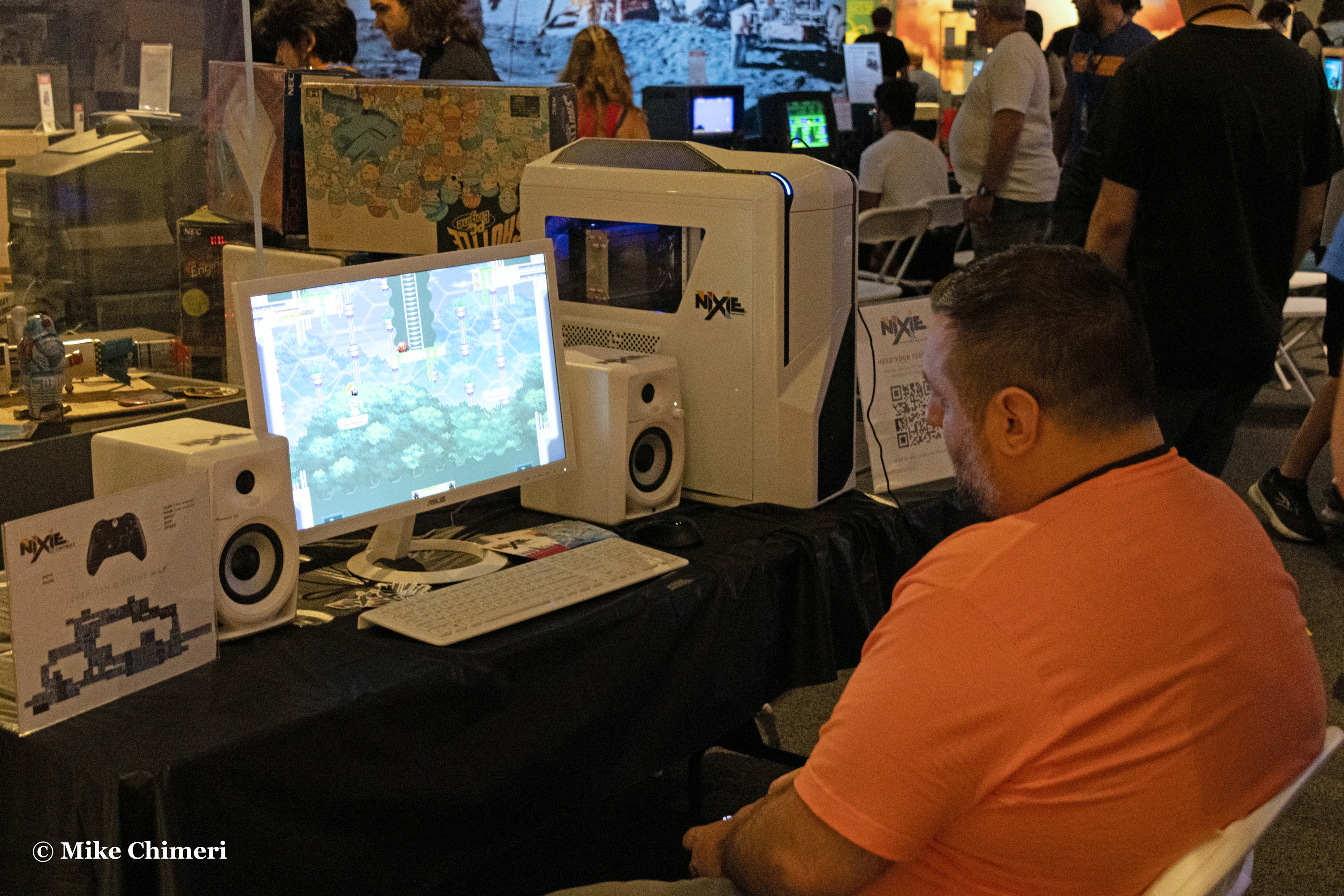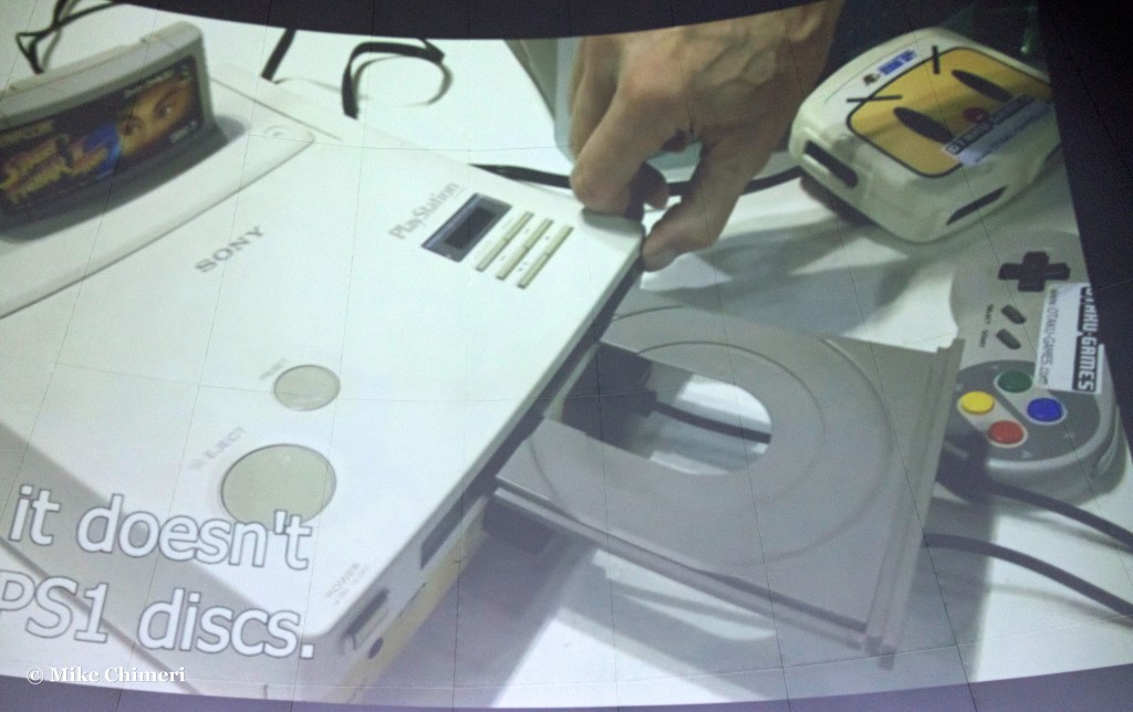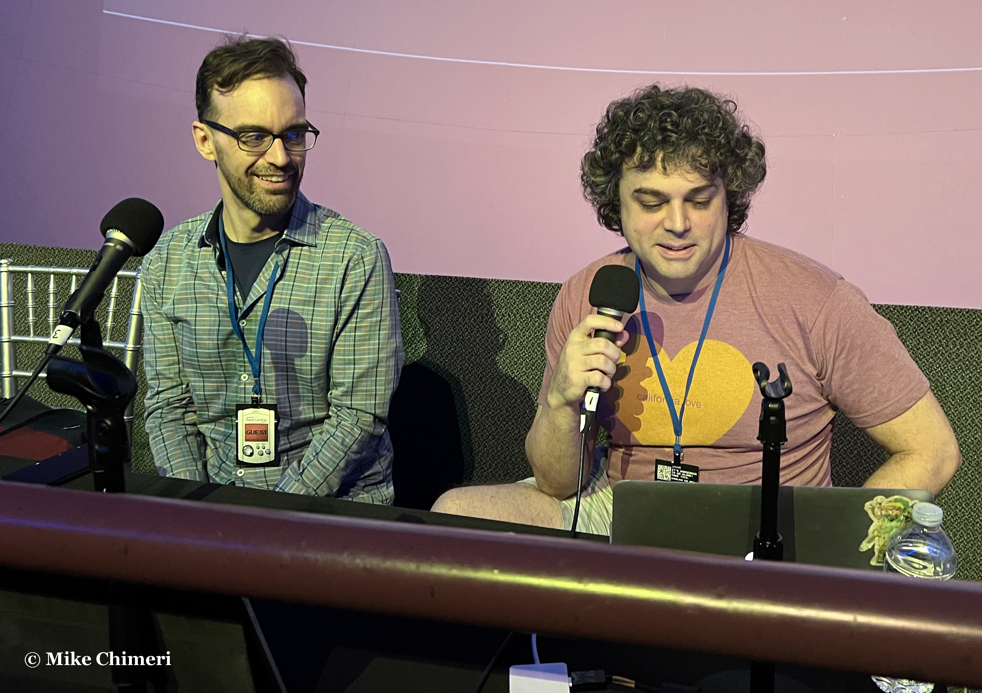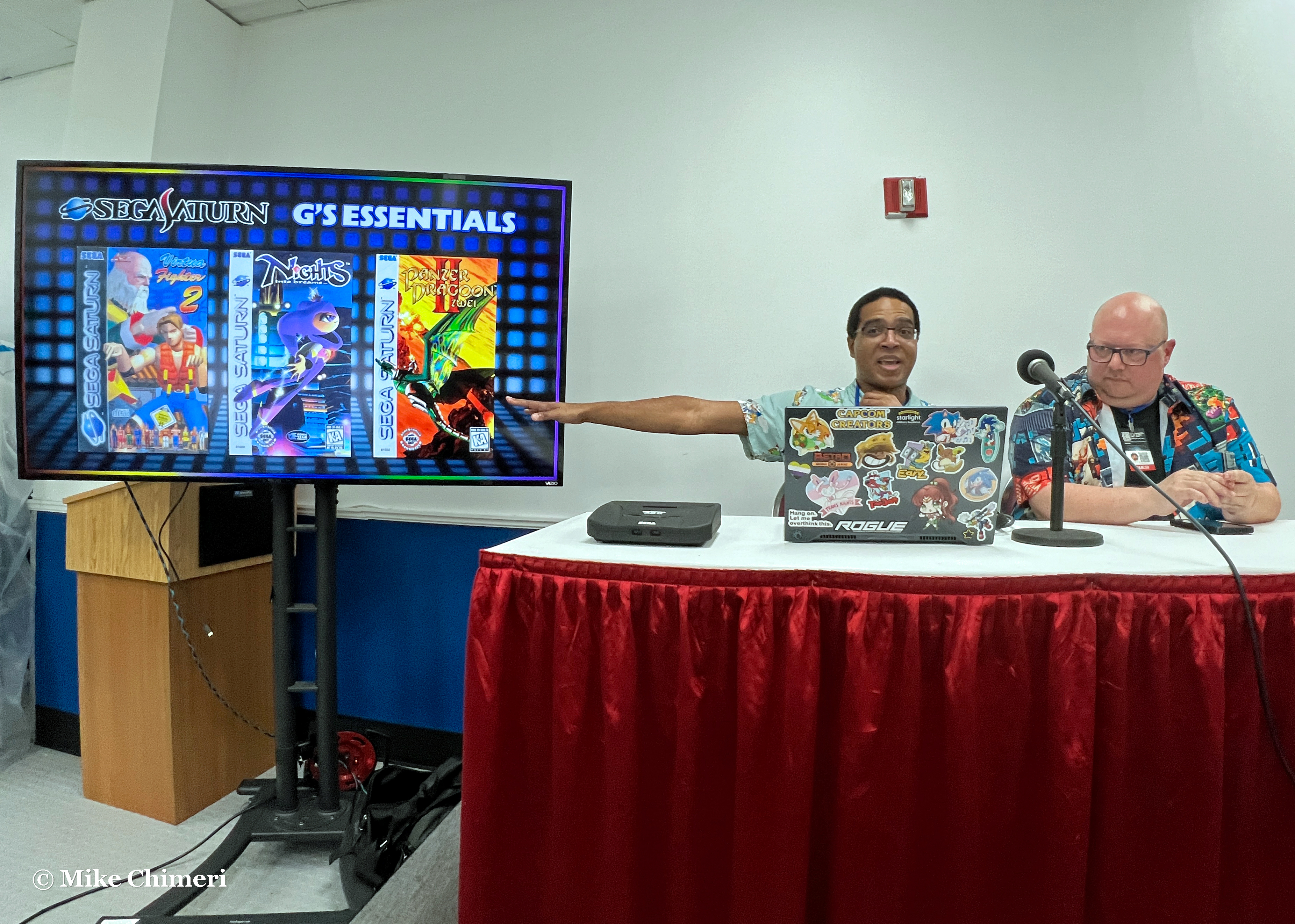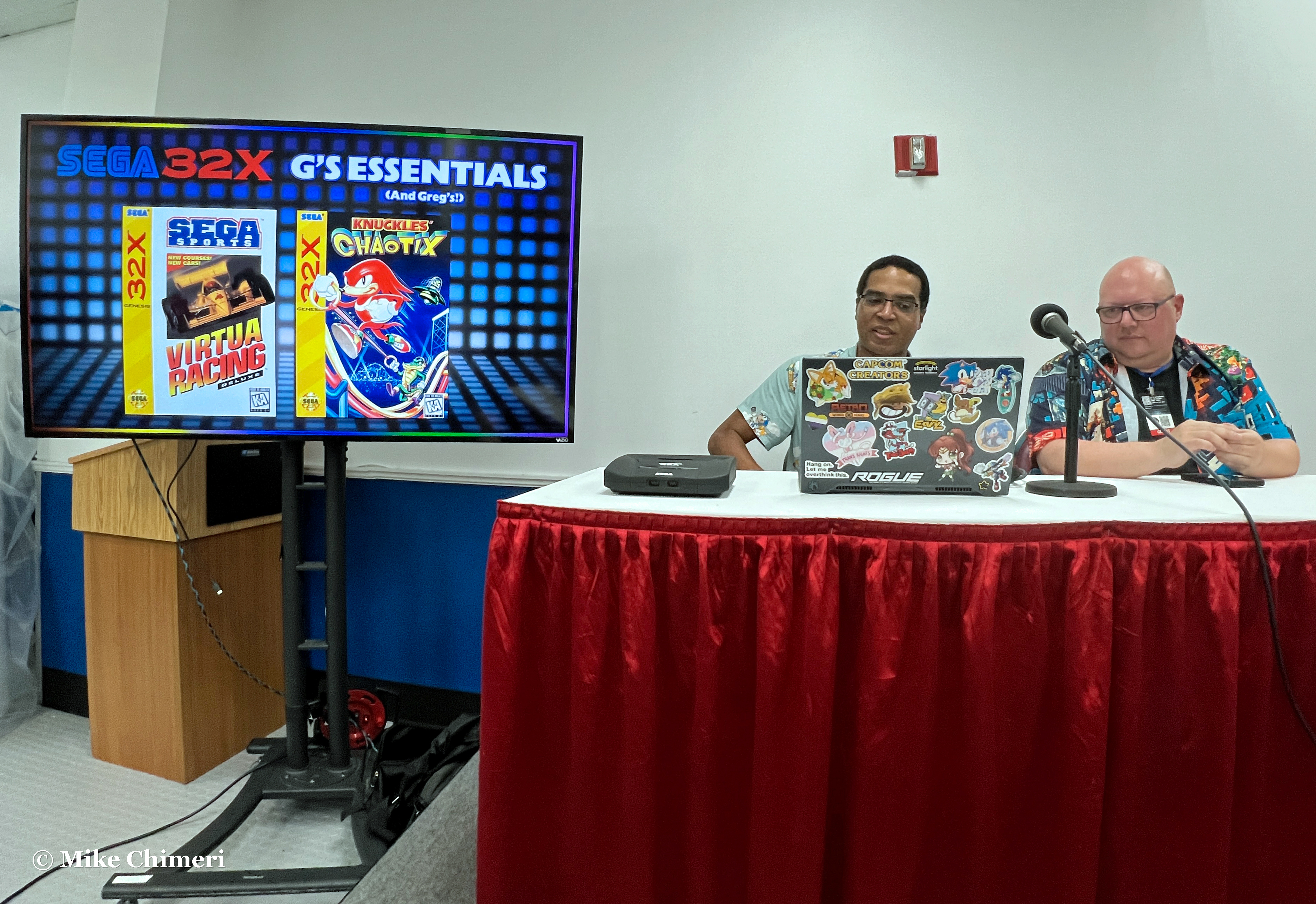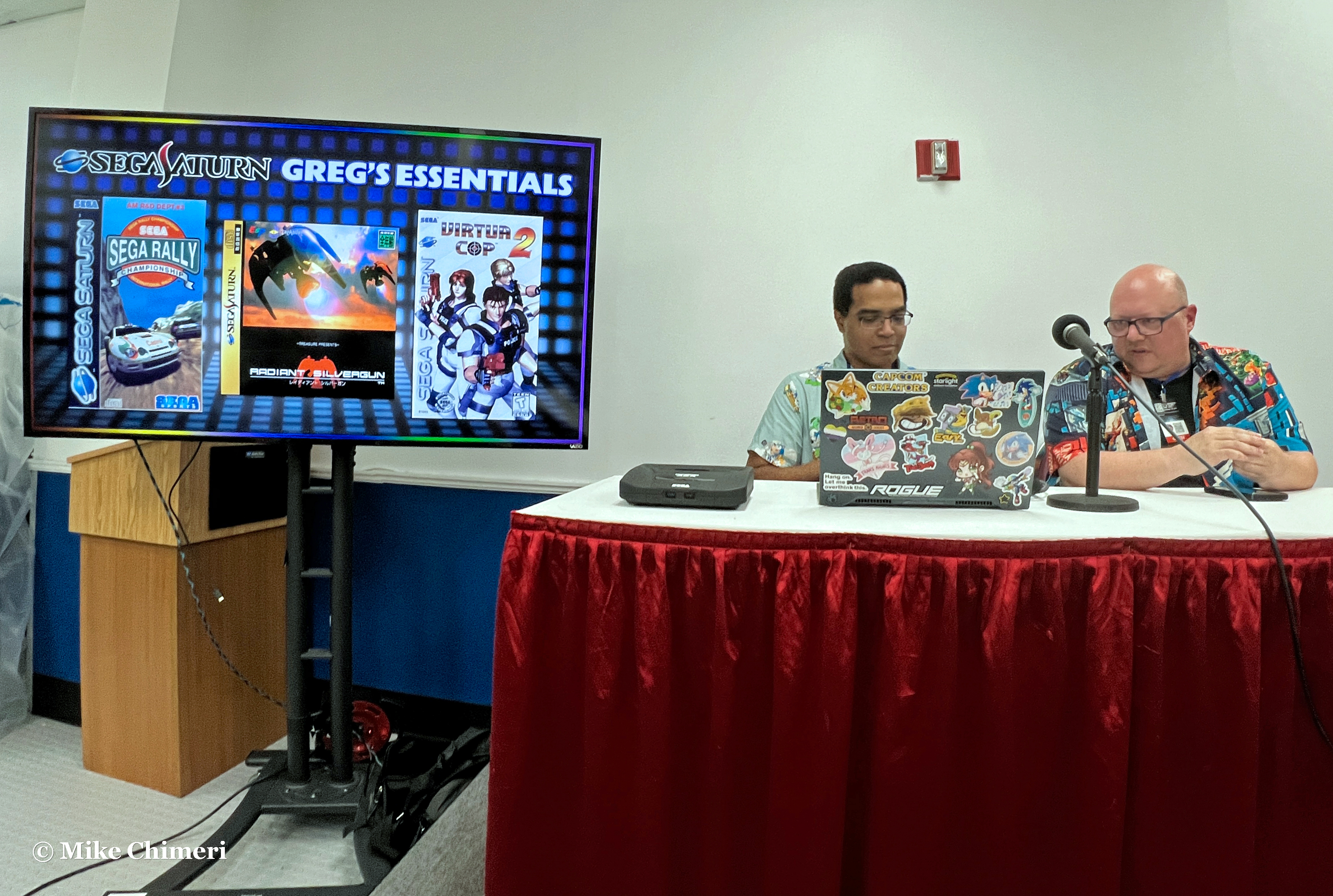 Sunday afternoon, “Mike Camera” and Adam Koralik met a third time. (That’s my server name on his Discord.) Adam’s trusty Sega Pluto prototype was part of the Retro Gaming Museum exhibit and he was more than happy to discuss it with attendees and have them try out its few playable games.