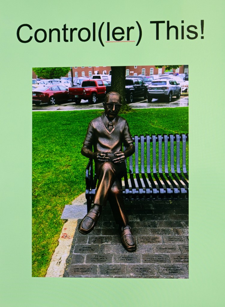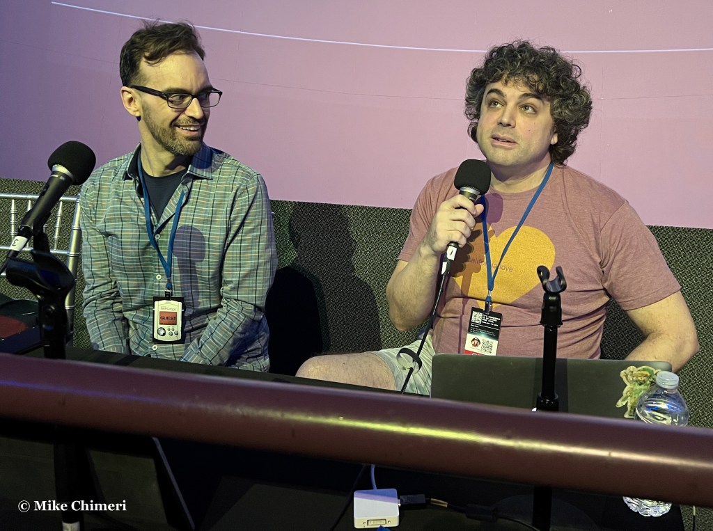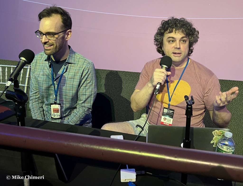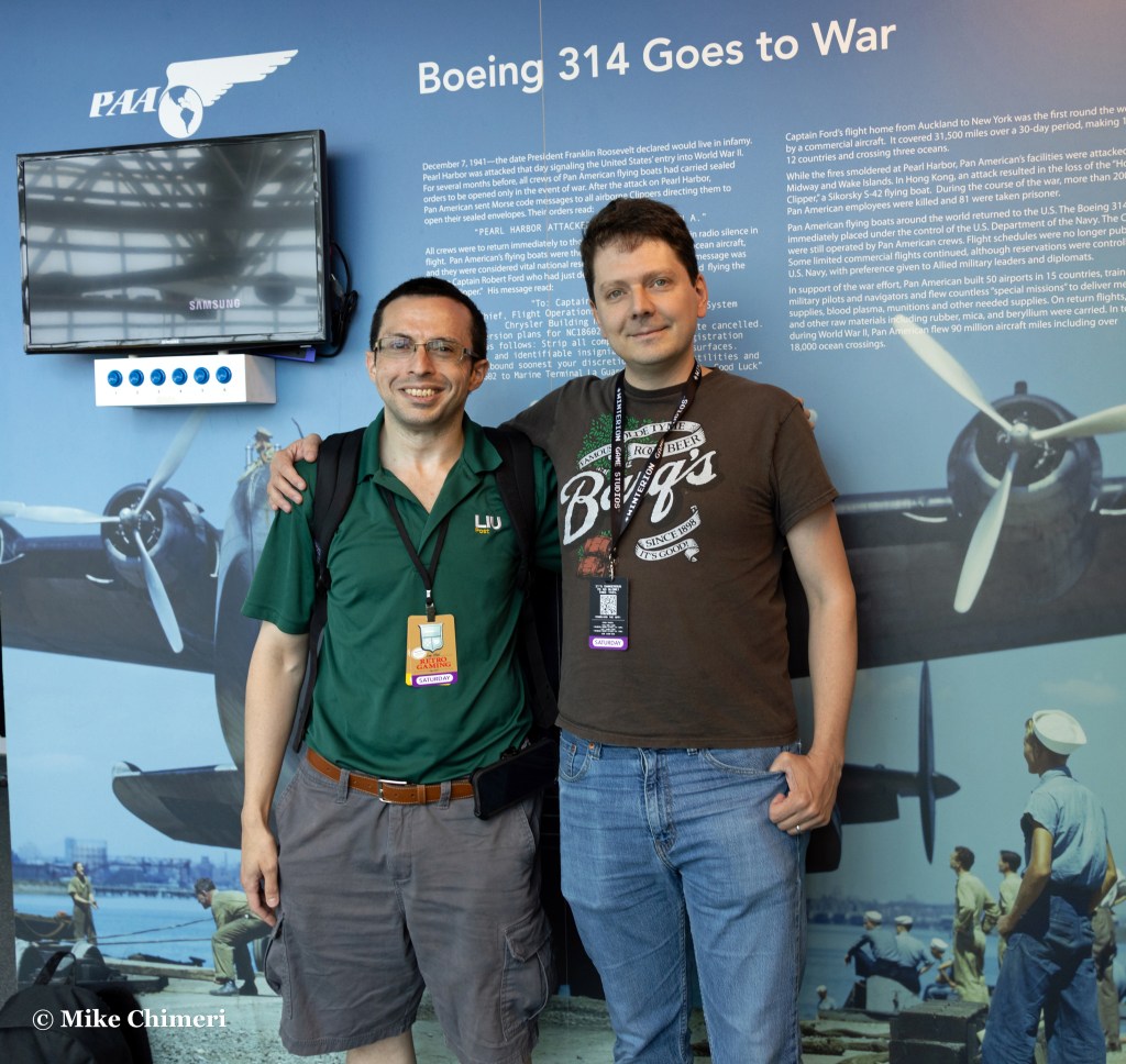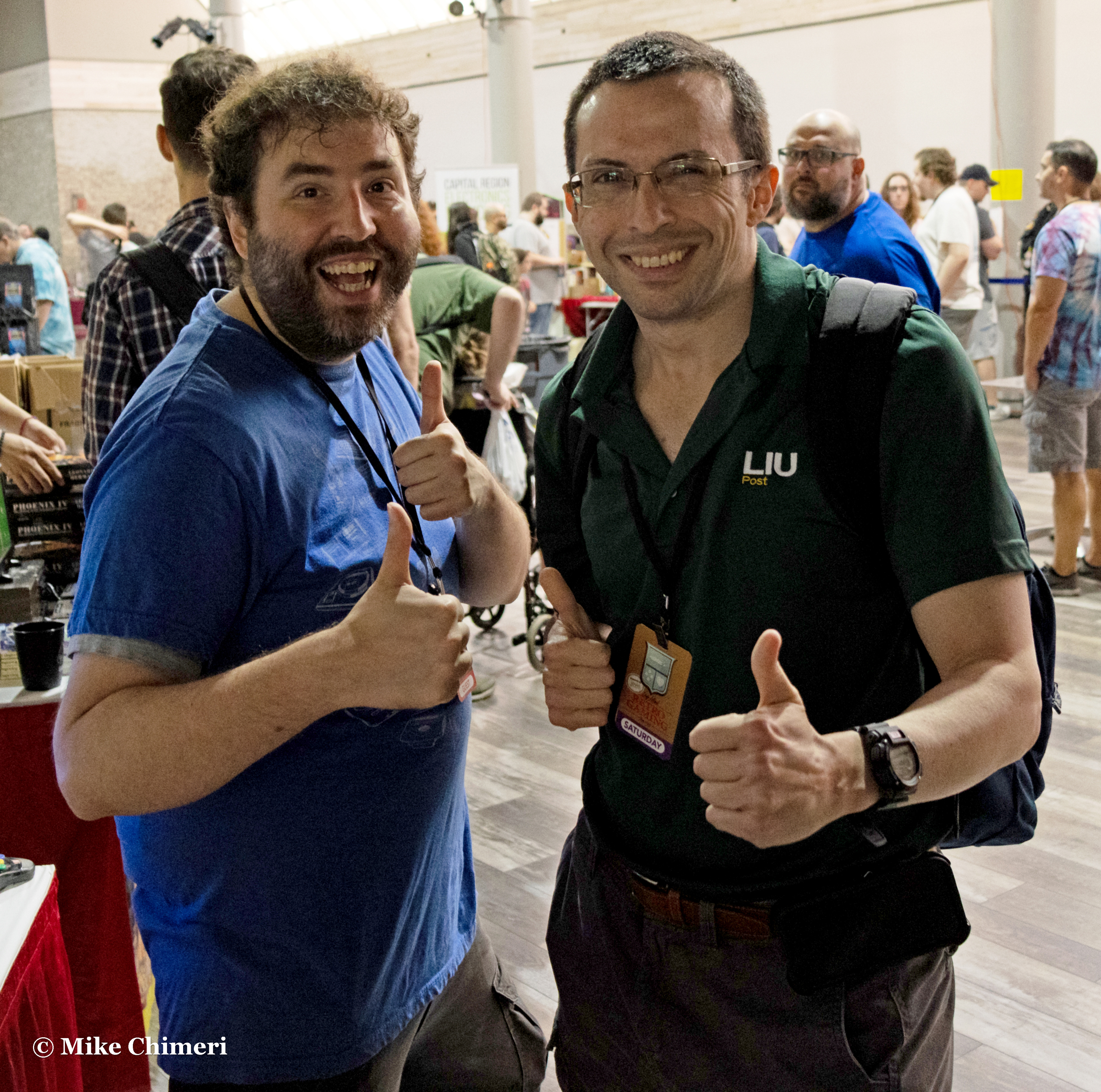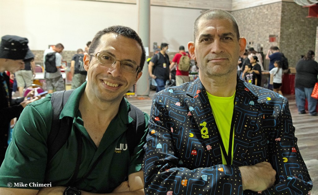 While waiting to ask a question, I noticed my friend Daniel Greenberg of Winterion Game Studios in the audience with his wife Alex. I whispered hello and we spoke more after the panel. It turns out Daniel and Alex had visited LIU Post earlier in the day. As you’ll see in the photo Alex took, I was wearing a Post polo on Saturday: