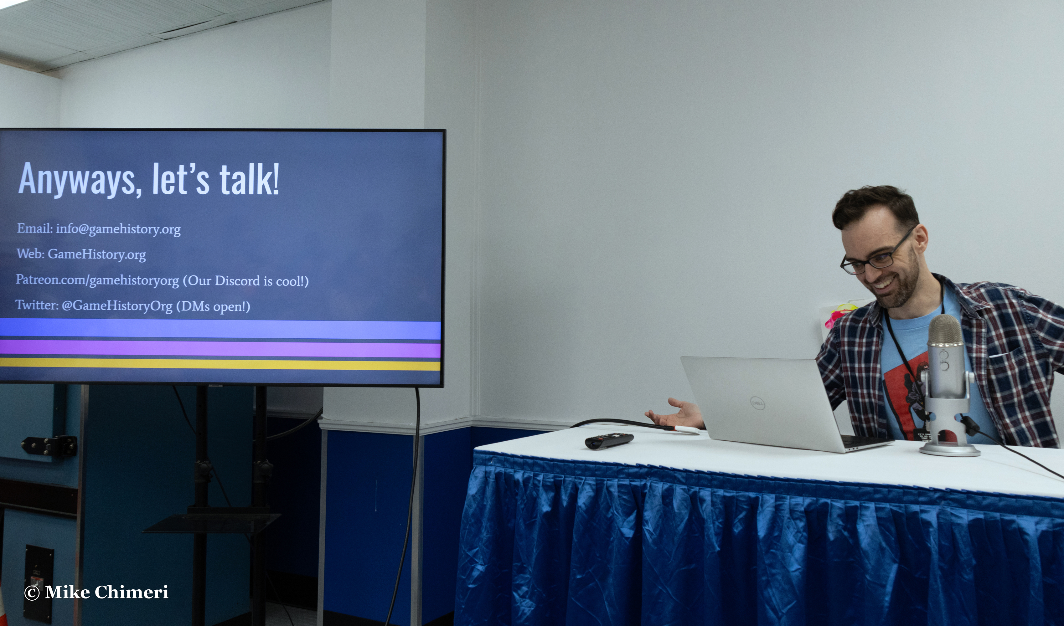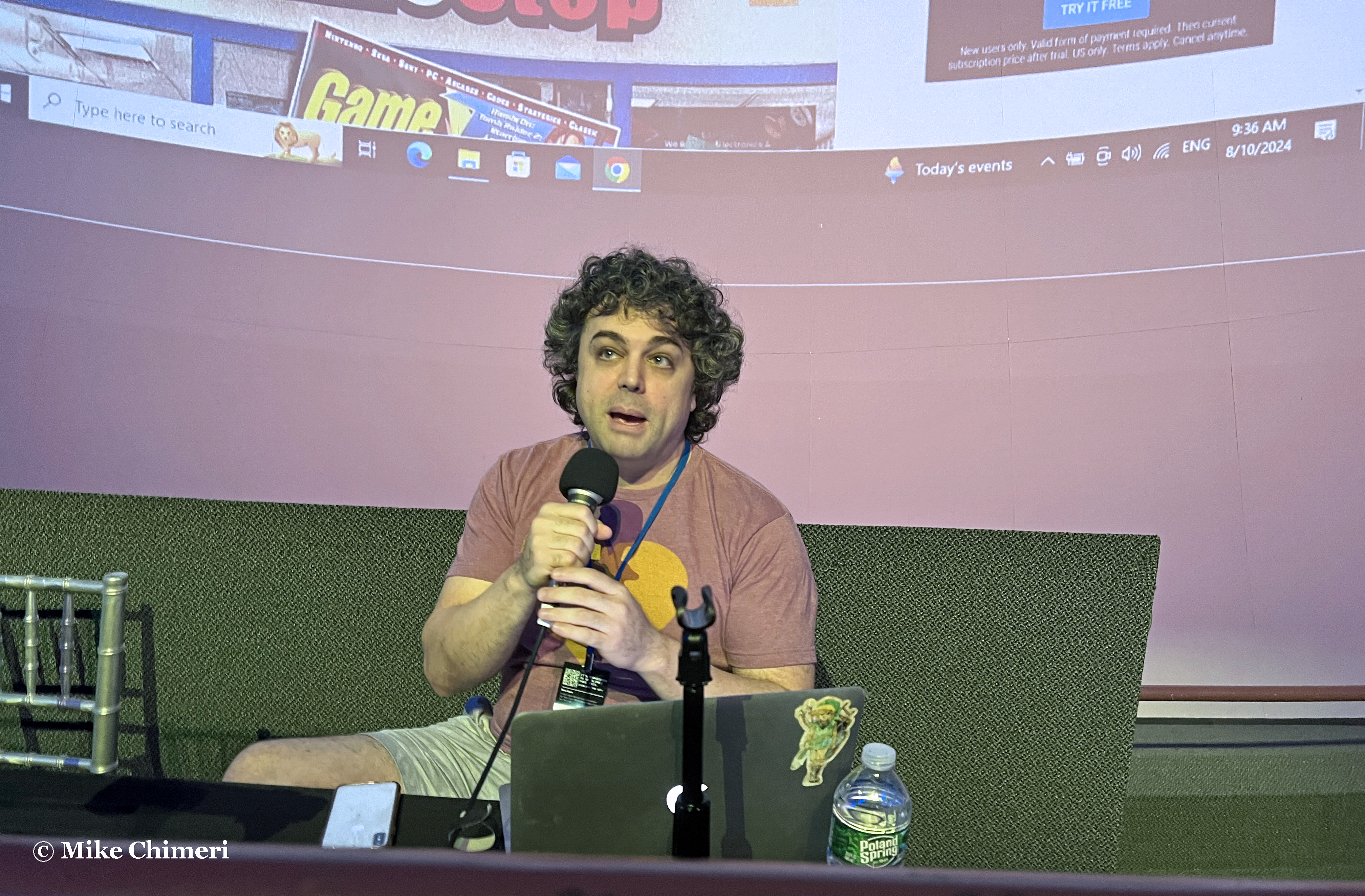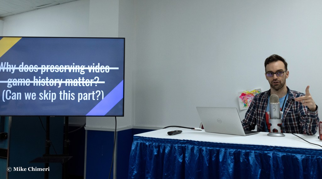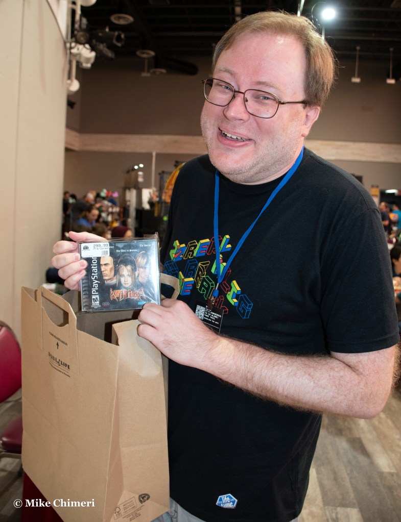 Ryan graciously gifted me with Old School Gamer Magazine Issue 46, which I held in our Sunday morning photo. You’ll see it again among the pickups in part three. Ryan was part of the third Saturday panel I attended: The Role Print Media Plays in Video Game Preservation. One of Ryan’s fellow panelists was…