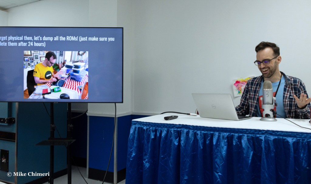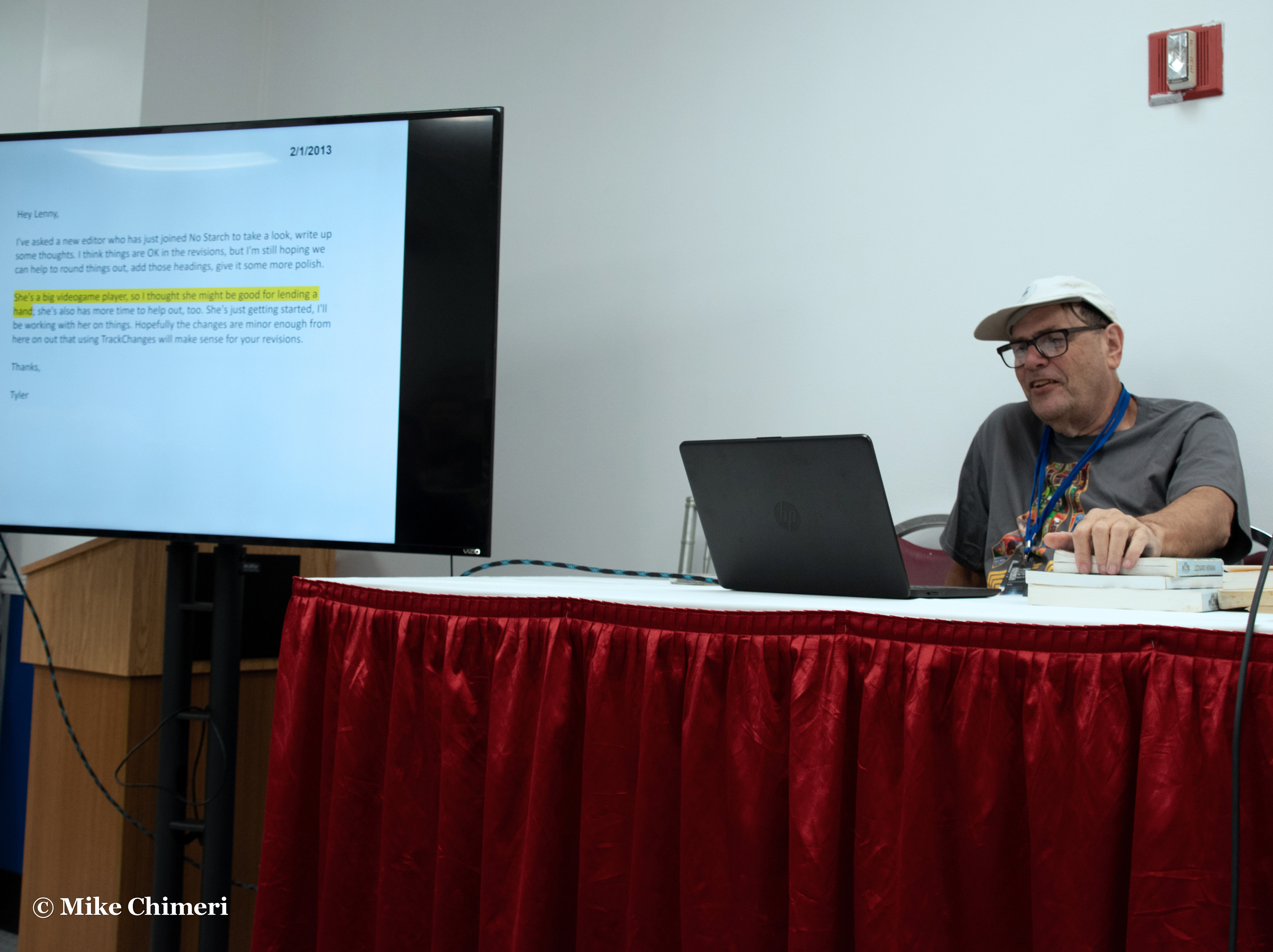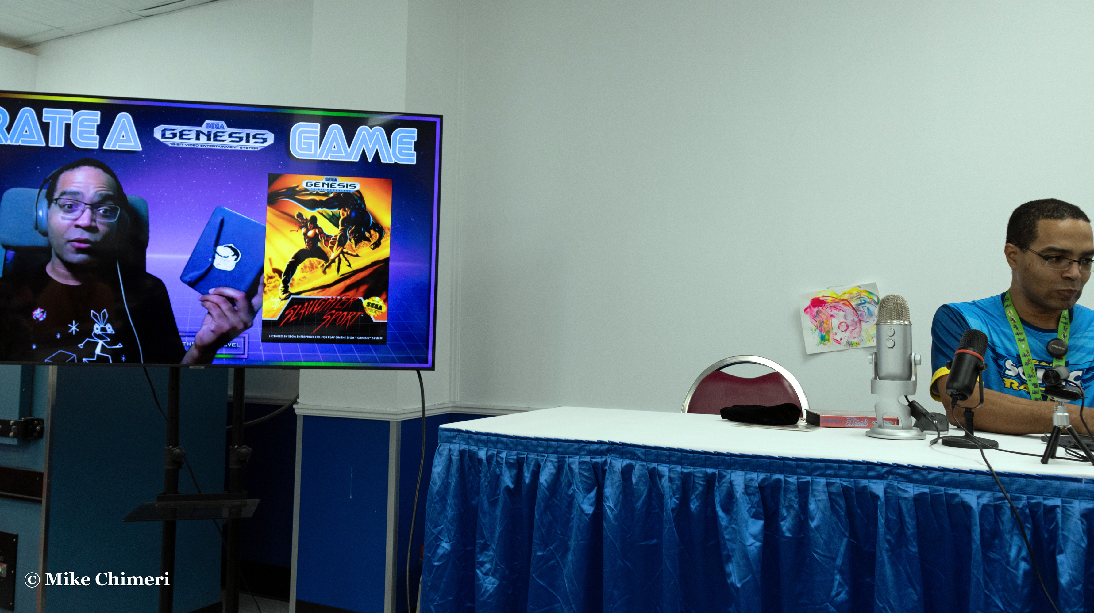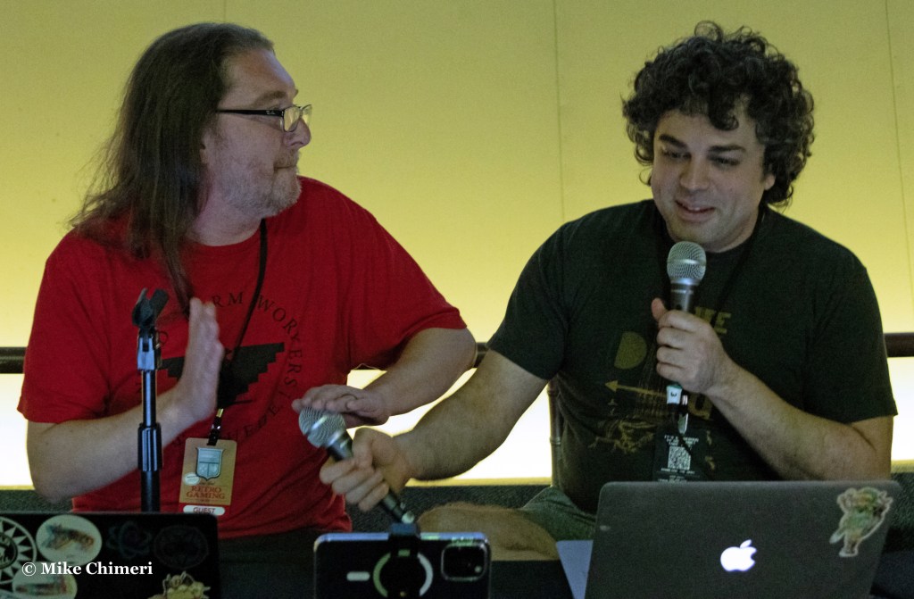 Ryan graciously gifted me with Old School Gamer Magazine Issue 46, which I held in our Sunday morning photo. You’ll see it again among the pickups in part three. Ryan was part of the third Saturday panel I attended: The Role Print Media Plays in Video Game Preservation. One of Ryan’s fellow panelists was…