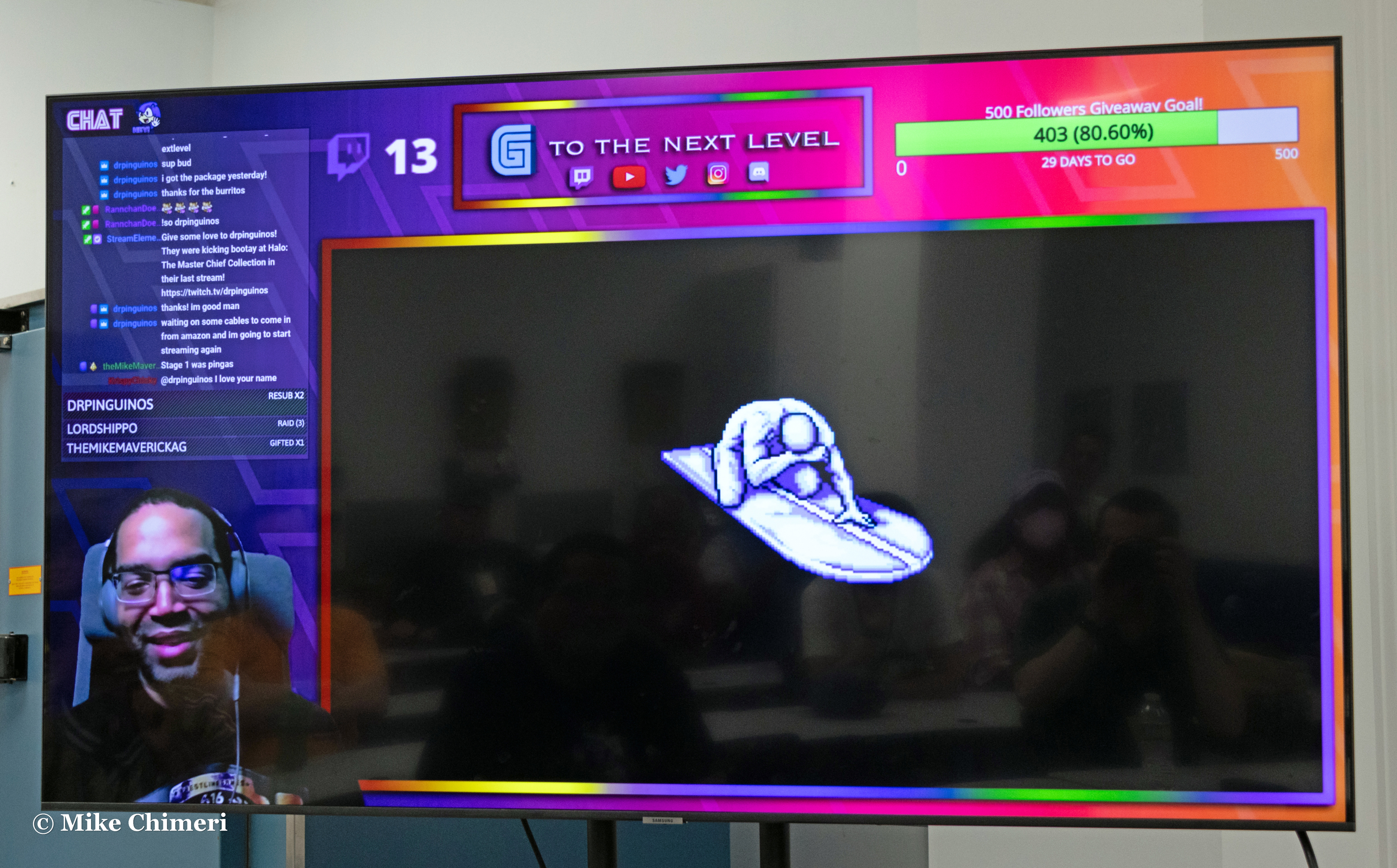 On the Twitch side, I broadcast my streams with a program called OBS Studio. Once per day, there was a brief server disconnection. Friday’s outage happened while recording the fourth talk break of hour 2 (the last recorded that day). Rather than stop until OBS reconnected, I soldiered on. It made for this funny outtake: