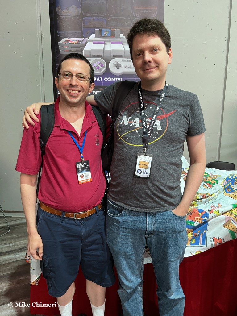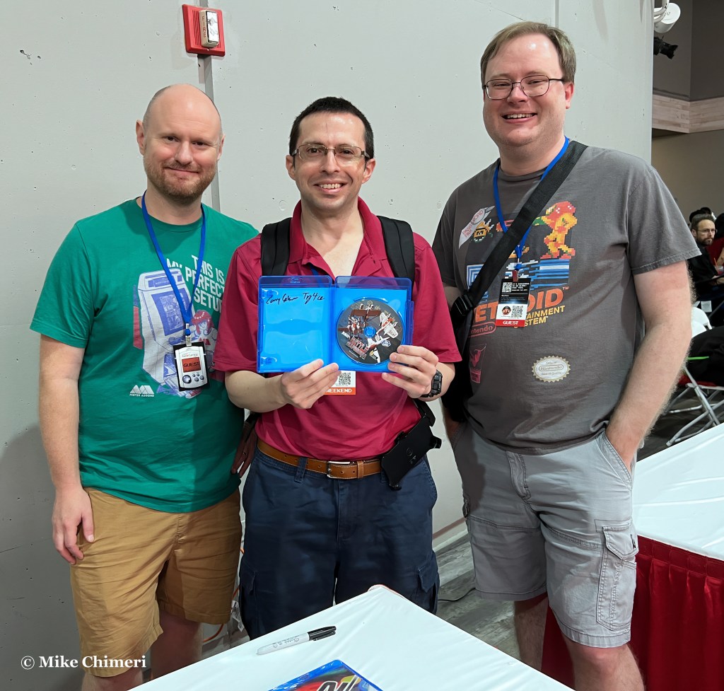 A big component of this year’s LI Retro was print media’s role in video game preservation. Pat’s Ultimate Nintendo series does its part. I have been a loyal reader since the Guide to the NES Library, which I bought from Pat (along with Pat the NES Punk DVD sets) in 2019. I helped fund Guide to the SNES Library later that year and last year, the latest book (as seen behind Ian, me, and Pat): Guide to the N64 Library. Pat, Ian, and an all-star lineup of reviewers break down every release for Nintendo’s first three home consoles. I used the Ultimate Nintendo app after each day of LI Retro to add any NES pickups to my collection. (Buy Ultimate Nintendo books here.)