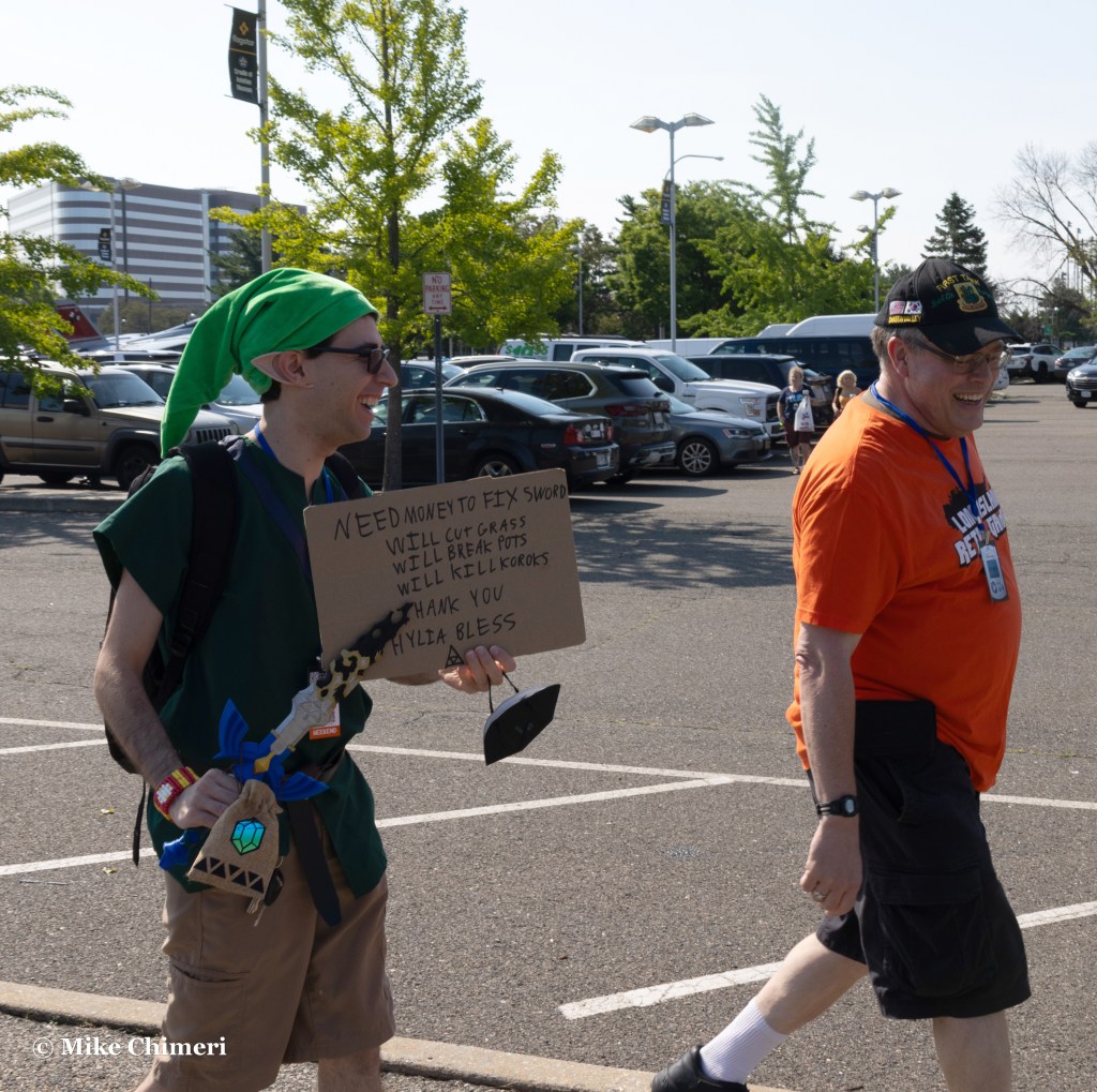 I exited the car with badge QR code printout in hand. I had the lanyard for my badge wrapped around my neck, along with my Canon EOS R7 with RF-S 18-150mm lens and Speedlite 430EX II attached. (I only used the latter on for flash photos, and never during panels.)