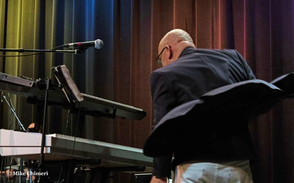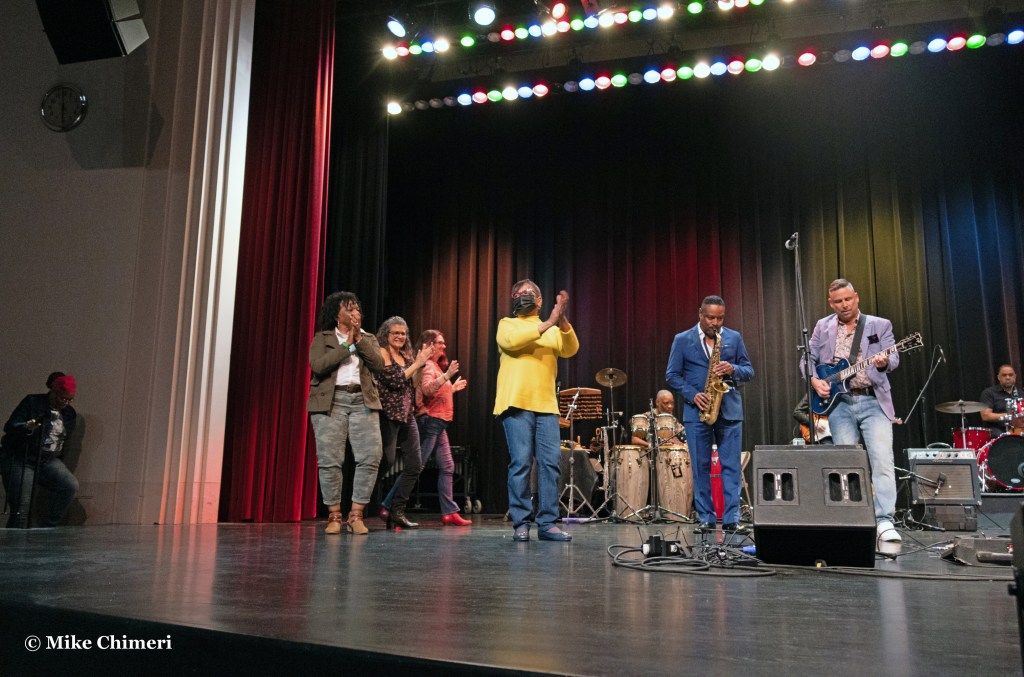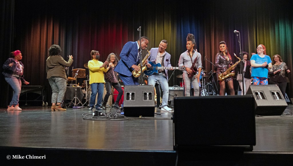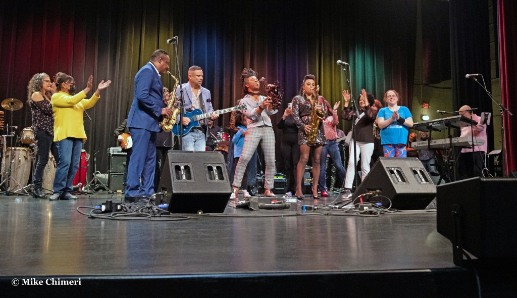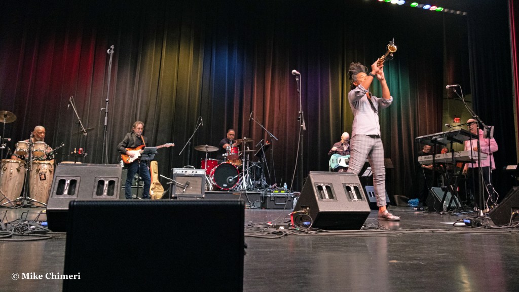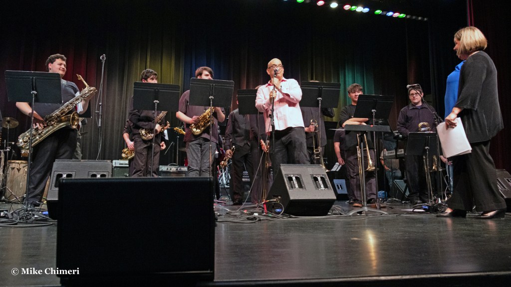 Jay Rowe‘s opening remarks were in two parts. First, he complimented the Foran Jazz Ensemble for their EWF cover. Then, he came back out after the chairs were removed and Kevin McCabe introduced the house band and headliners.