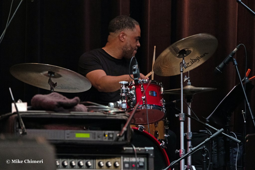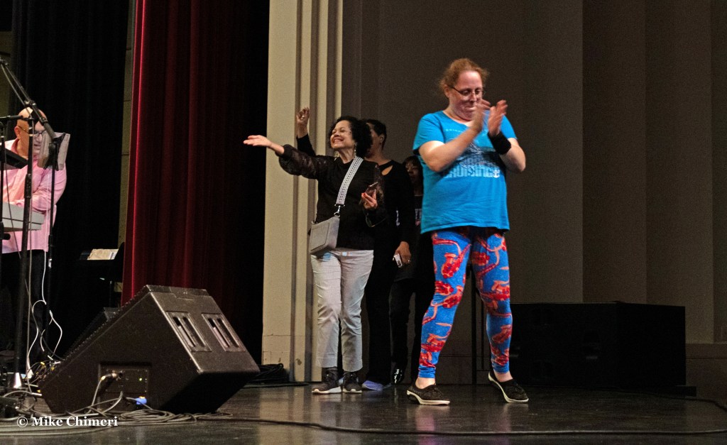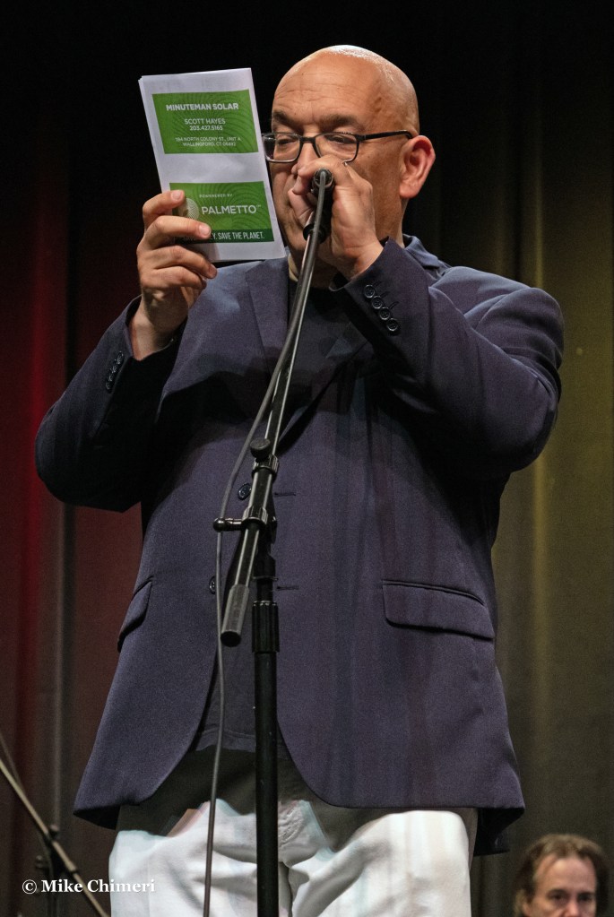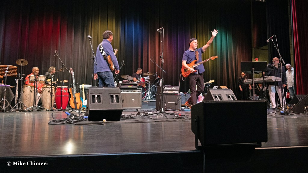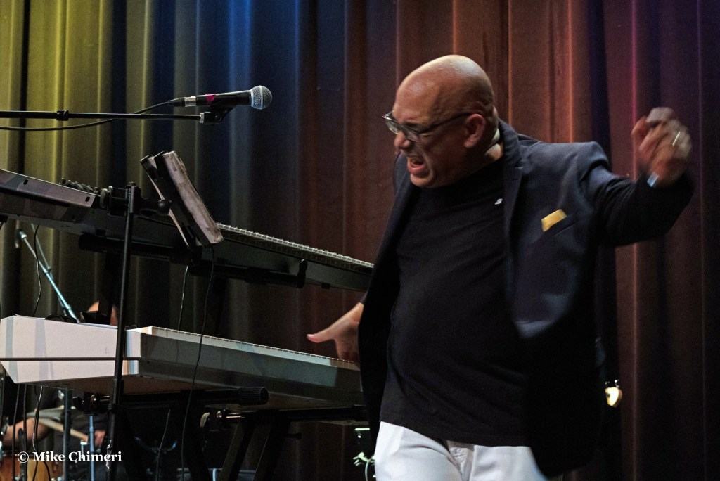 Jay Rowe‘s opening remarks were in two parts. First, he complimented the Foran Jazz Ensemble for their EWF cover. Then, he came back out after the chairs were removed and Kevin McCabe introduced the house band and headliners.