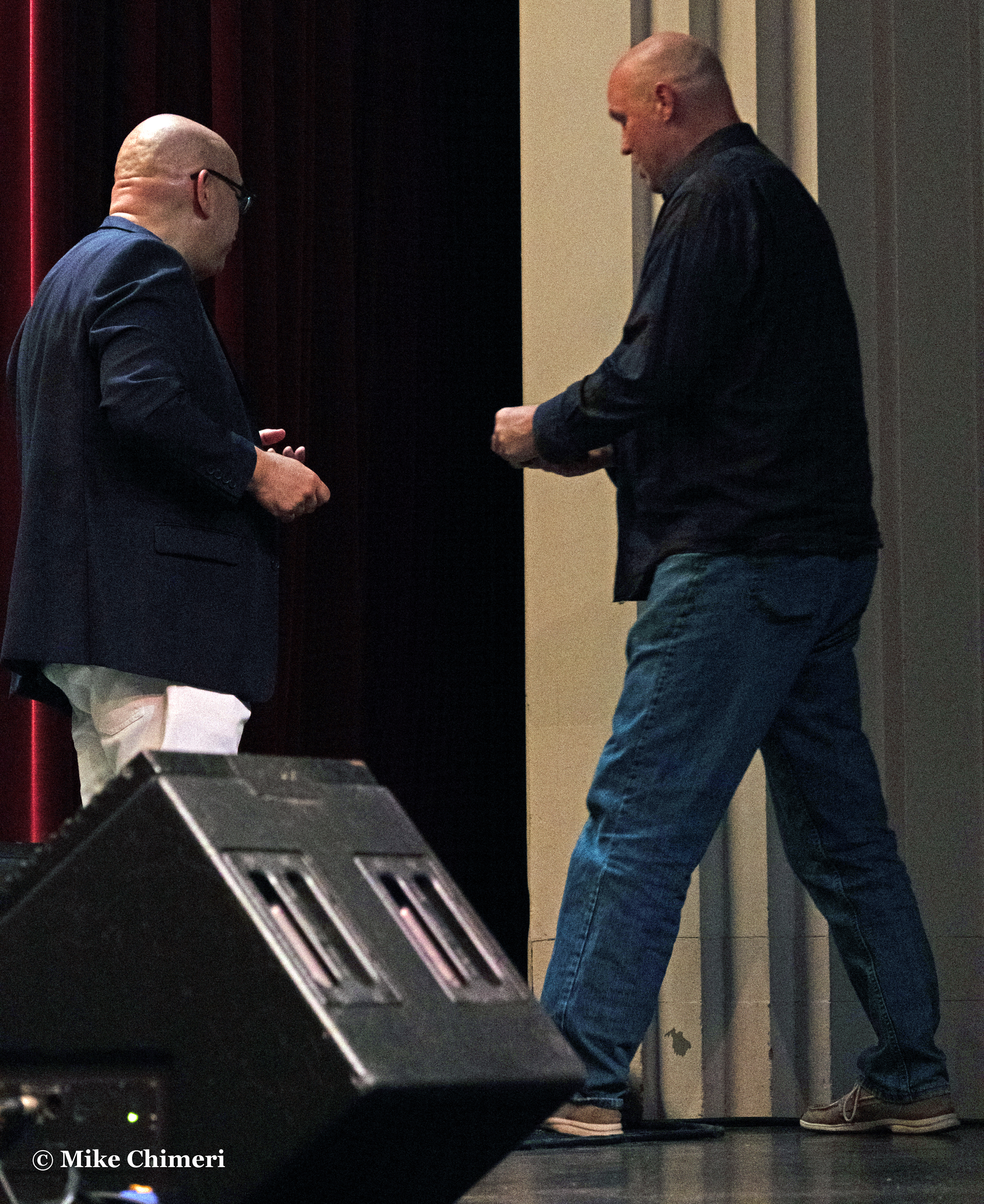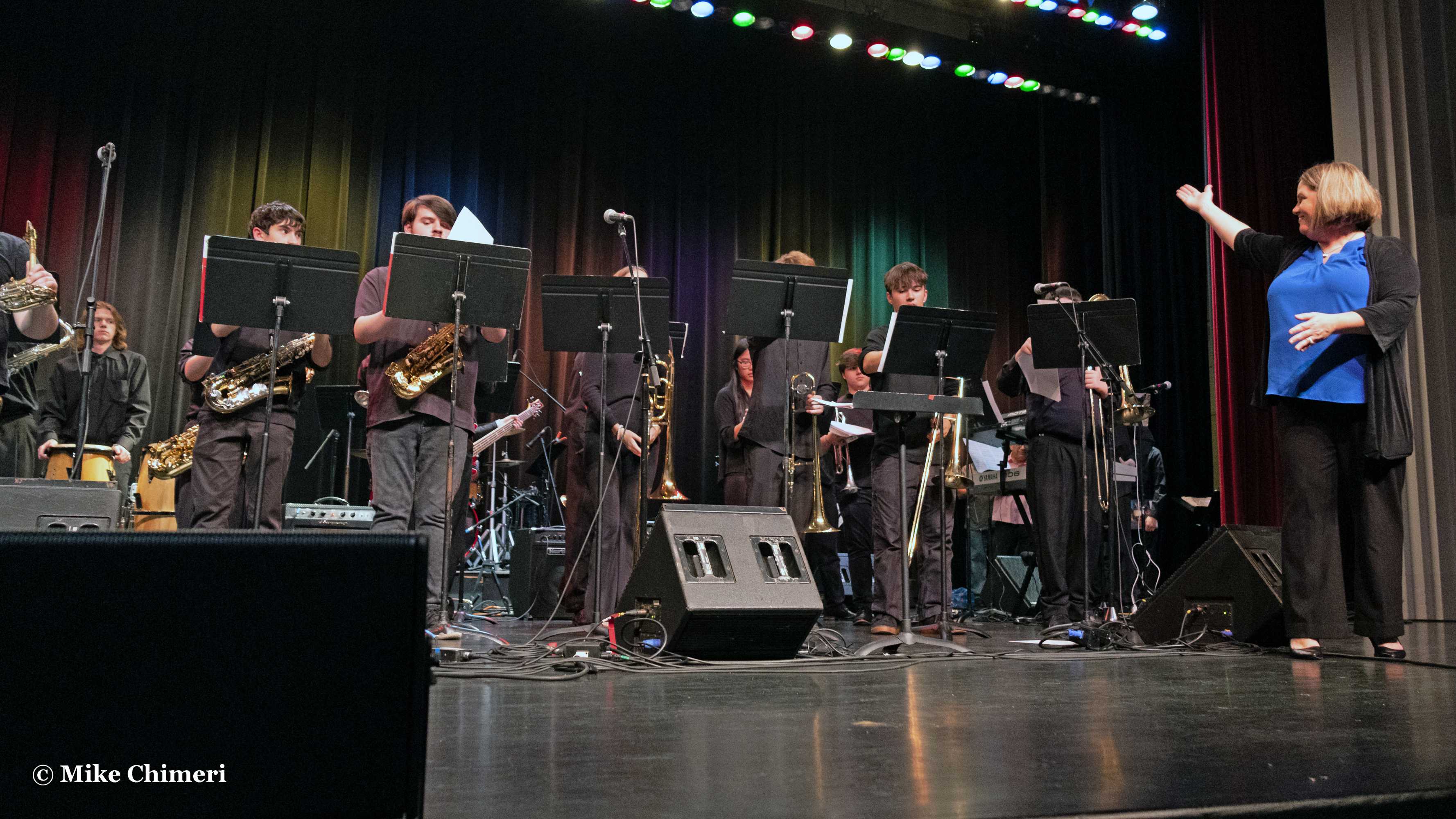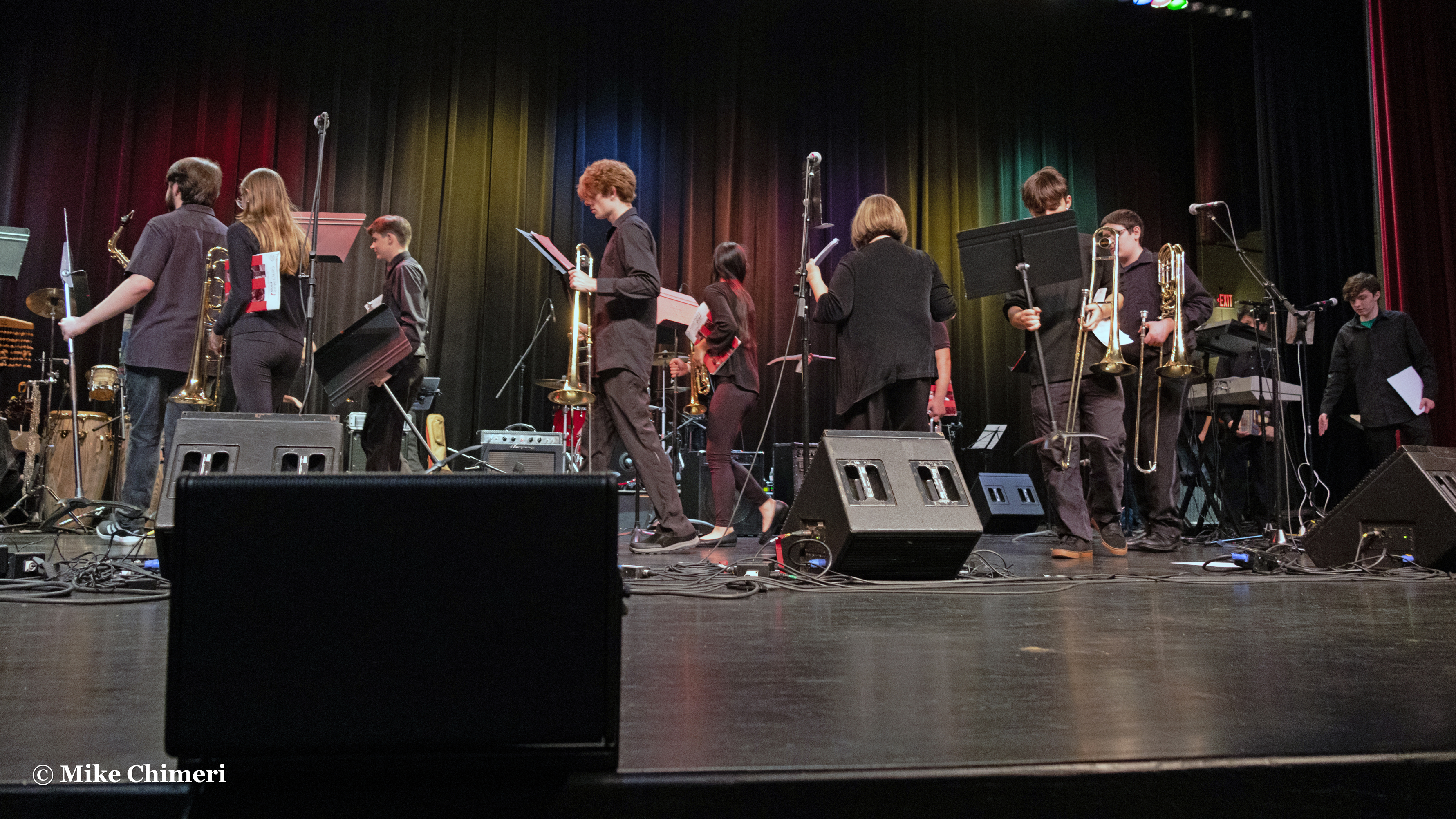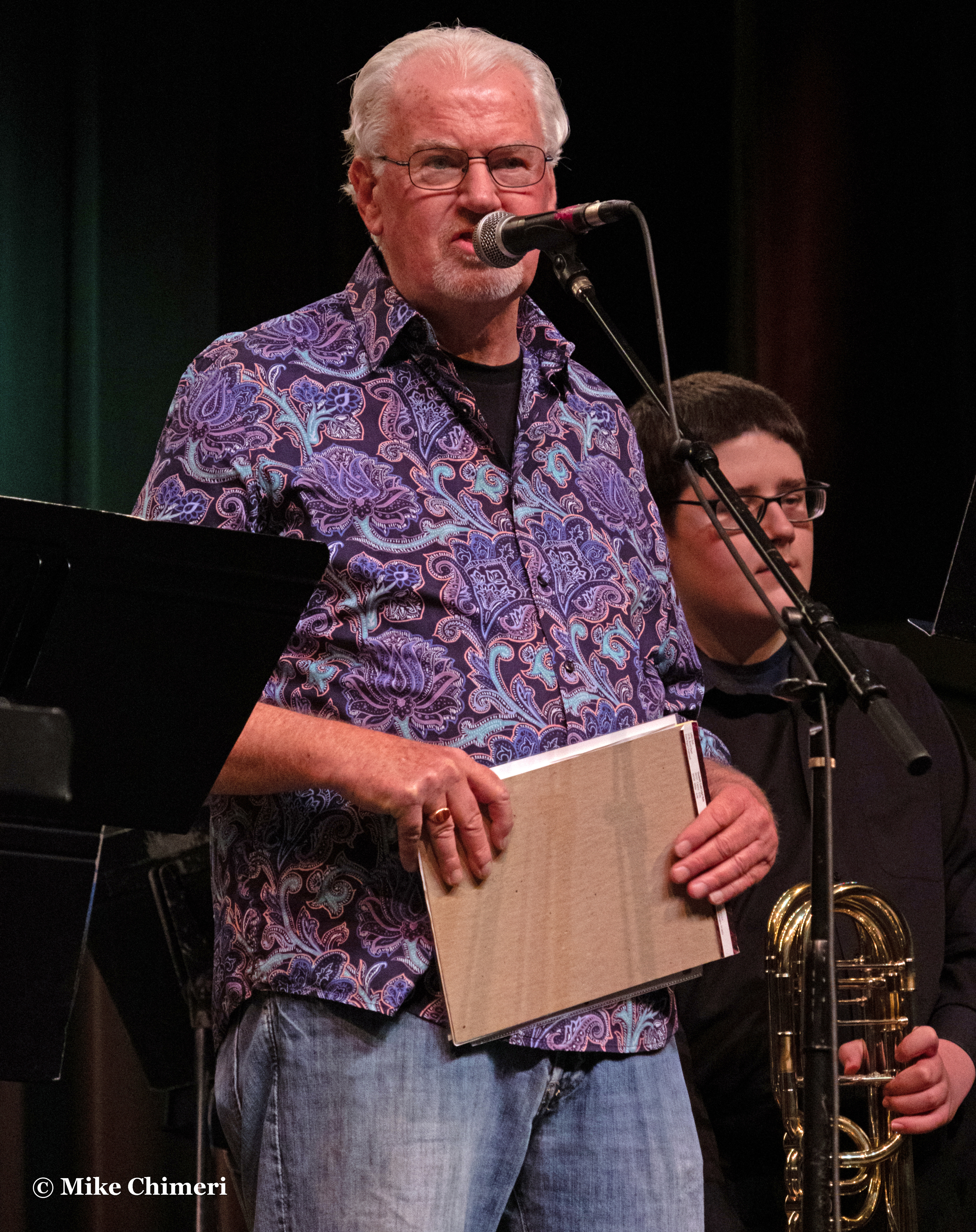 Jay Rowe‘s opening remarks were in two parts. First, he complimented the Foran Jazz Ensemble for their EWF cover. Then, he came back out after the chairs were removed and Kevin McCabe introduced the house band and headliners.
