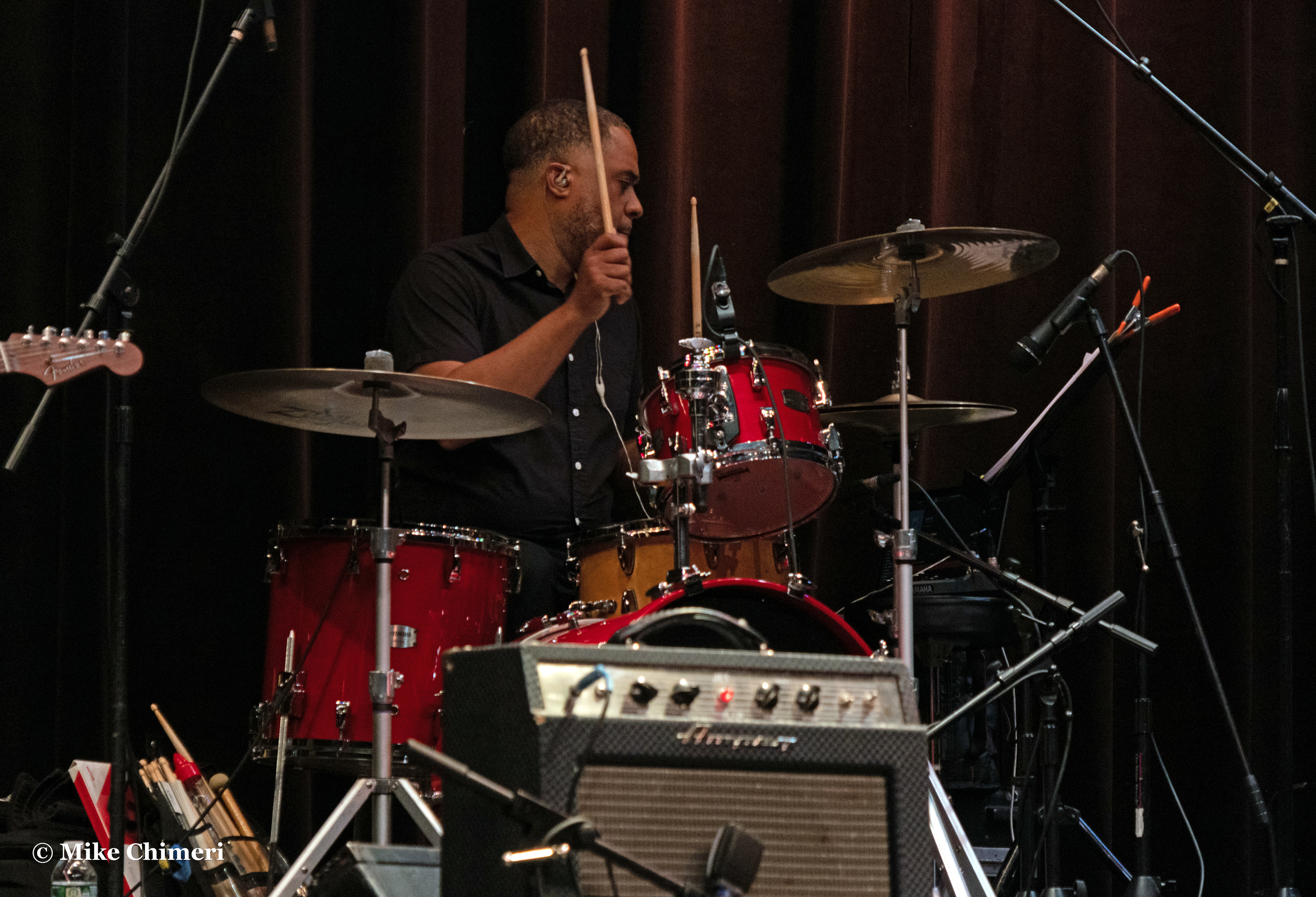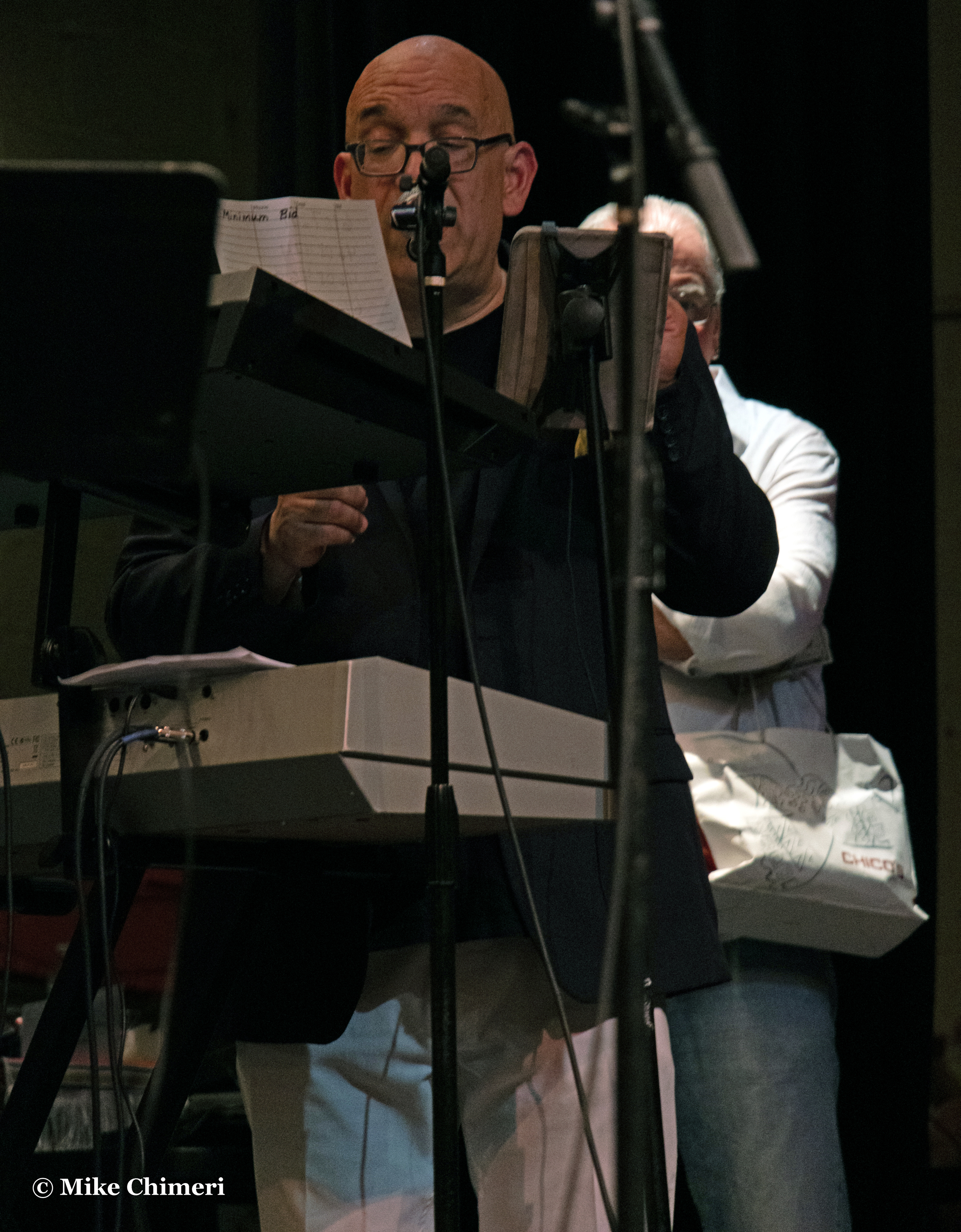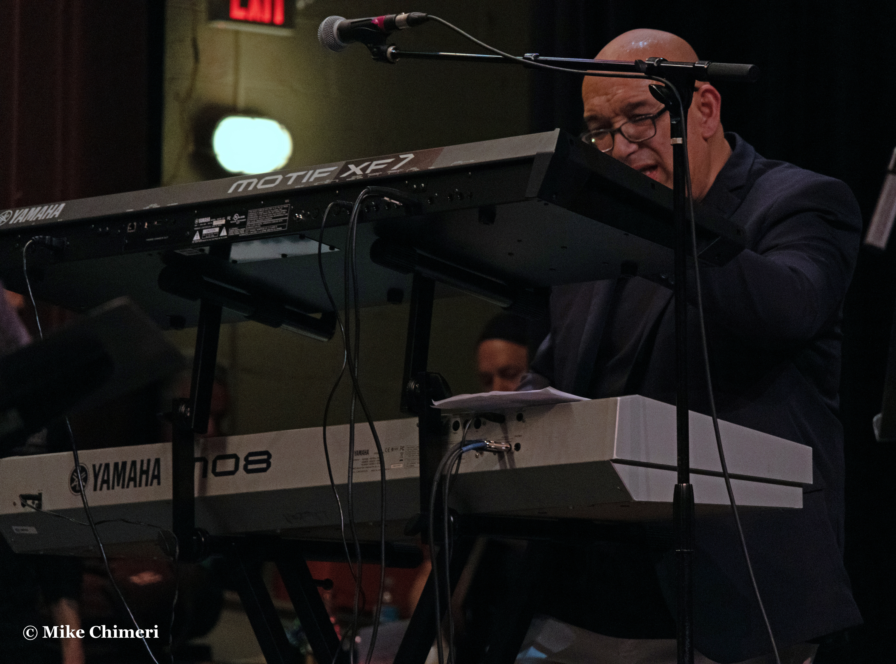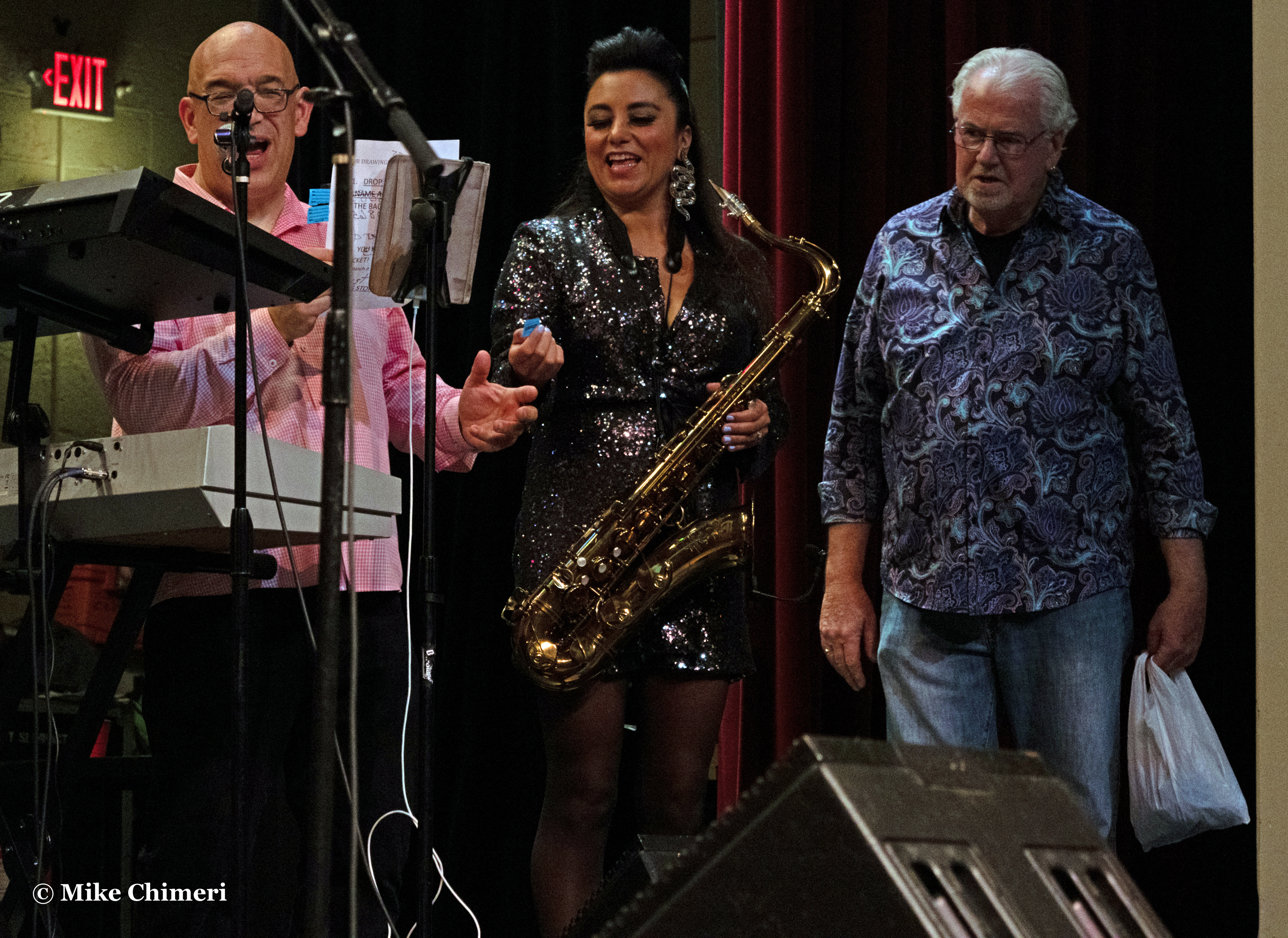 Jay Rowe‘s opening remarks were in two parts. First, he complimented the Foran Jazz Ensemble for their EWF cover. Then, he came back out after the chairs were removed and Kevin McCabe introduced the house band and headliners.