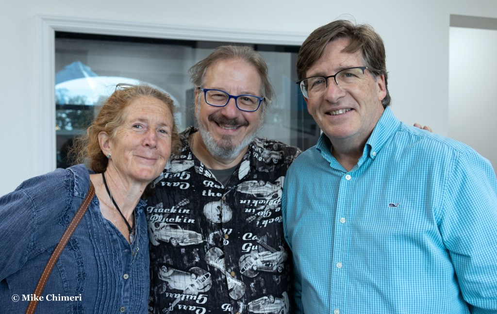 Outside the studio, a photo of Dan Cox (right) with Winnie and Tony Traguardo: