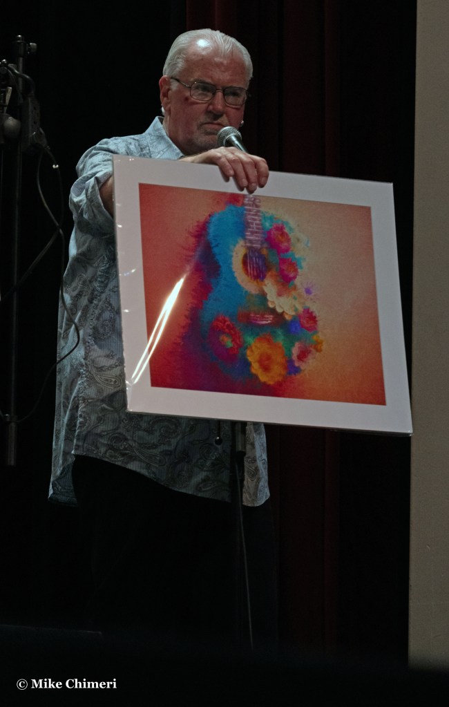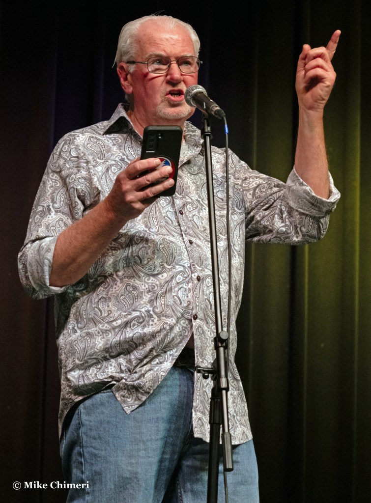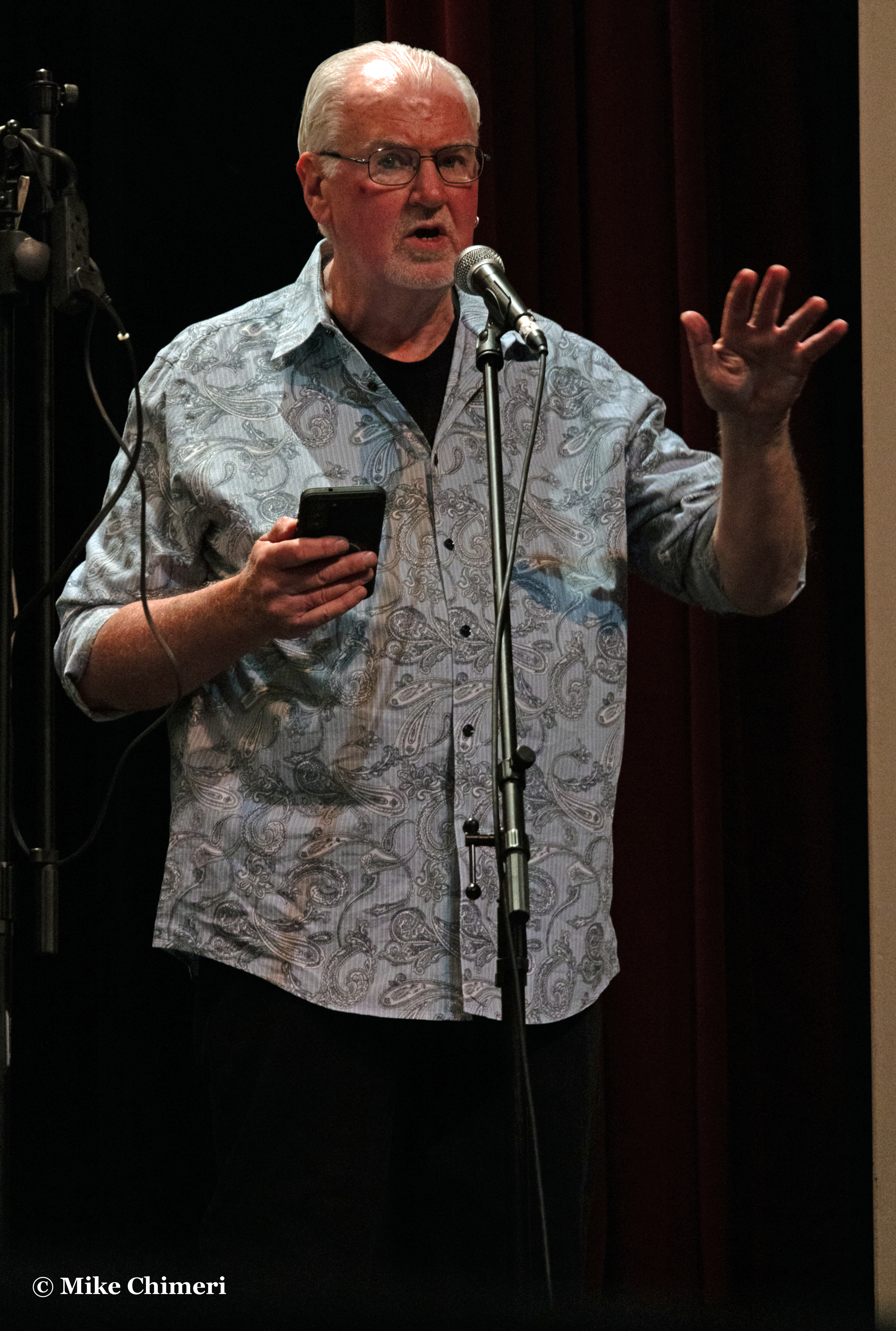 Kelly parked in the lot adjacent to Wasson Field, a baseball field where a game was in progress. We walked in to Veterans Memorial Auditorium and I set up my equipment in the orchestra pit. Then, I went back to the lobby to buy a copy of Saturday headliner Blake Aaron‘s latest CD, Love and Rhythm, from Michelle at the merchandise table. I said hello to Jay Rowe’s mother Mia DiStasi who stood at a table next to the 50/50 raffle table. It was there that I bought three tickets for $10. I didn’t expect to win, but I figured I’d take a chance.