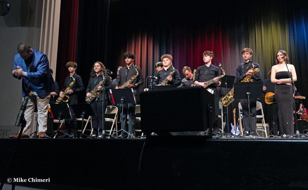 He introduced the Jonathan Law High School Jazz Ensemble, directed by Dave Pelaggi. Mr. P’s ensemble performed “Blue Moon” and “Cry Me a River.”