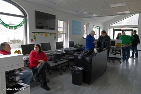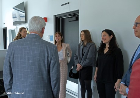 There was an open house at the Abrams Communications Center on Saturday afternoon. In this first photo, WCWP station manager Dan Cox showed the current makeup of Studio 3 to Neil Marks (1977), Fred Gaudelli (1982), and Suzanne Langwell (1983).