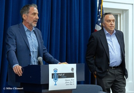 Ted David, Rich Lacourciere, new HOF inductee Tony Traguardo, John Zoni, John Mullen, Frank Iemitti, WCWP station manager Dan Cox