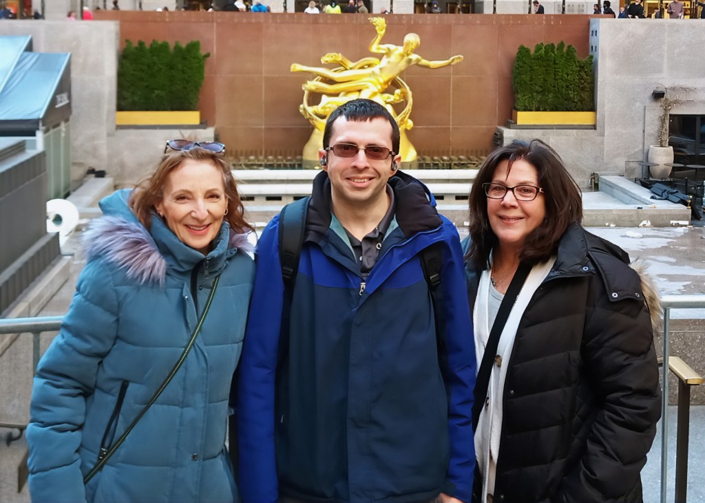 Dr. Cline speaking with Cynthia Hochman, another daughter of Benjamin Abrams; and one of Cynthia’s granddaughters: