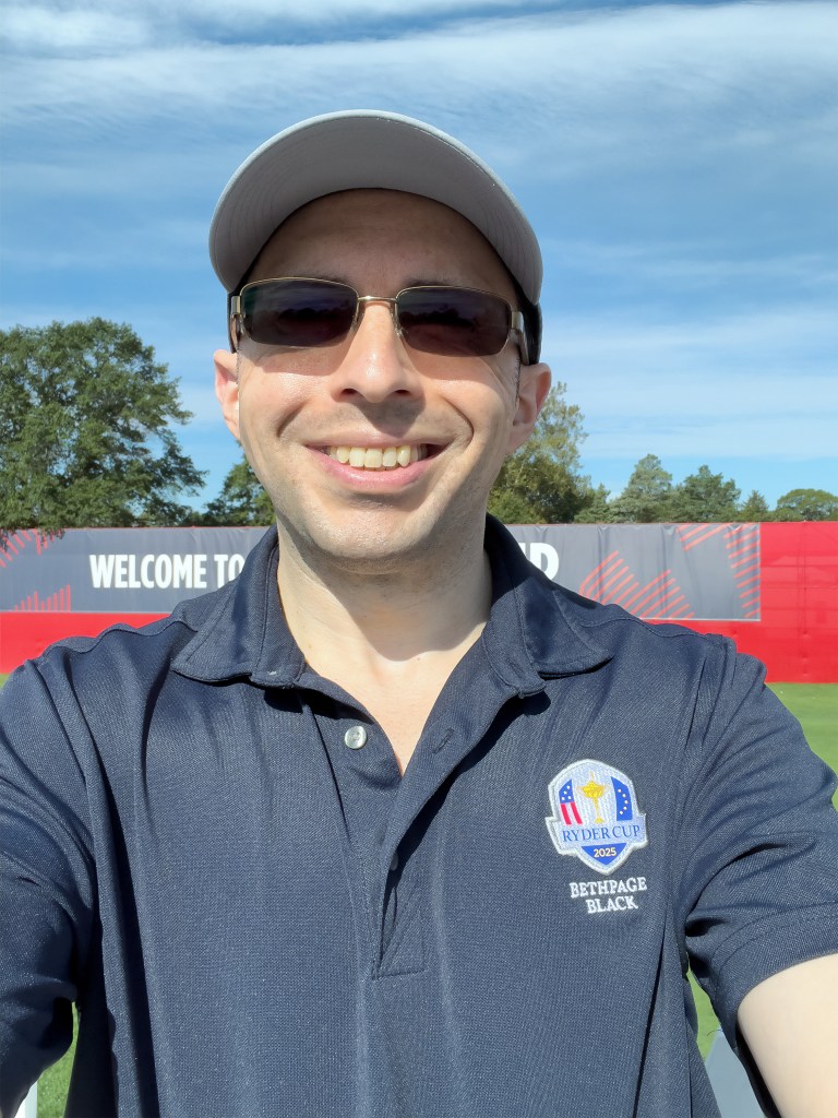 Perhaps it was foreshadowing when my dad purchased Friday tickets shortly after Rory McIlroy won The Masters on the evening of April 13. Either way, we were going. Good thing, too, because I’d purchased a hat and short-sleeve polo from the Ryder Cup online shop in March. I proudly wore those at Bethpage Black, per these selfies with and without my dad: