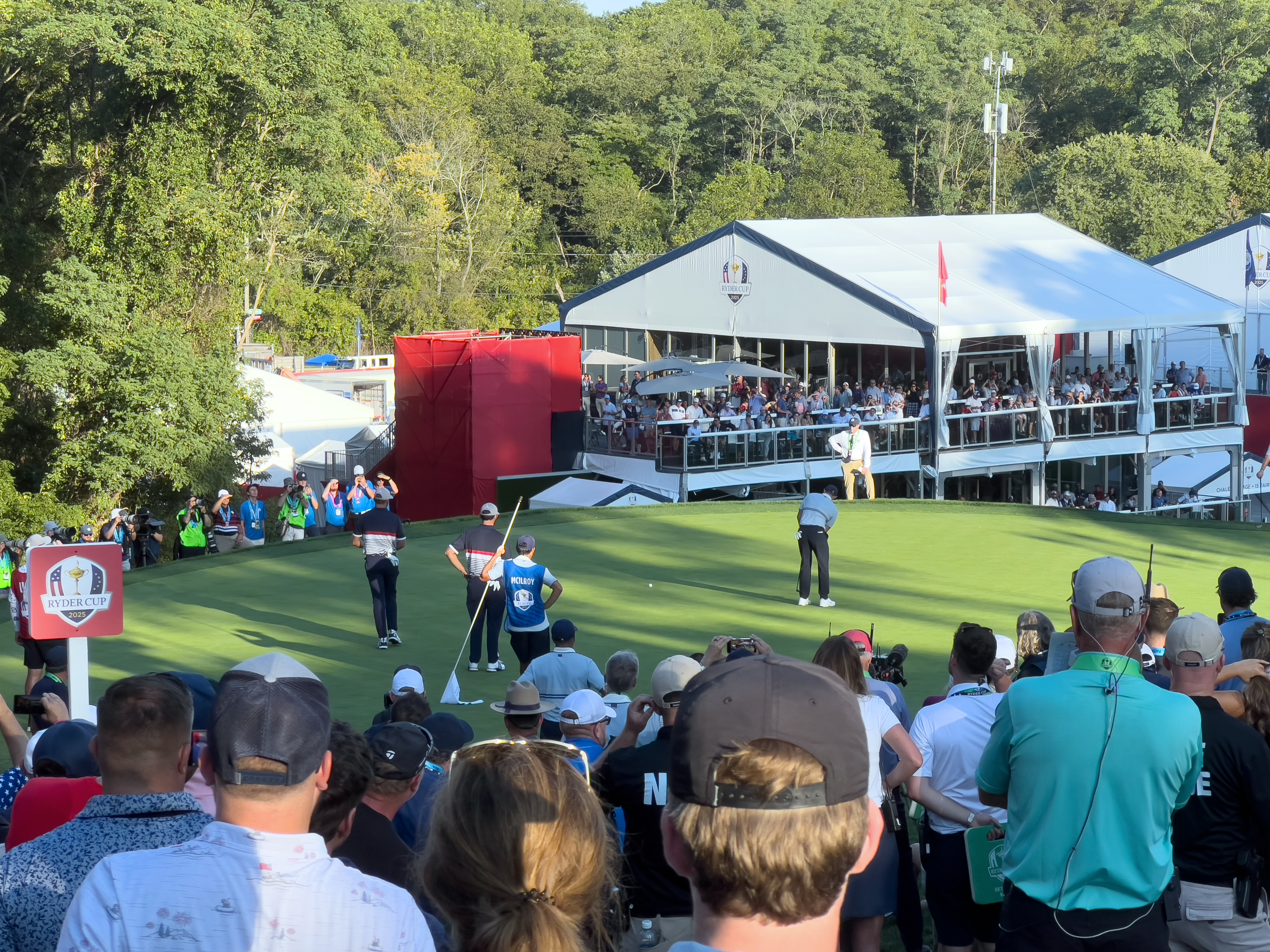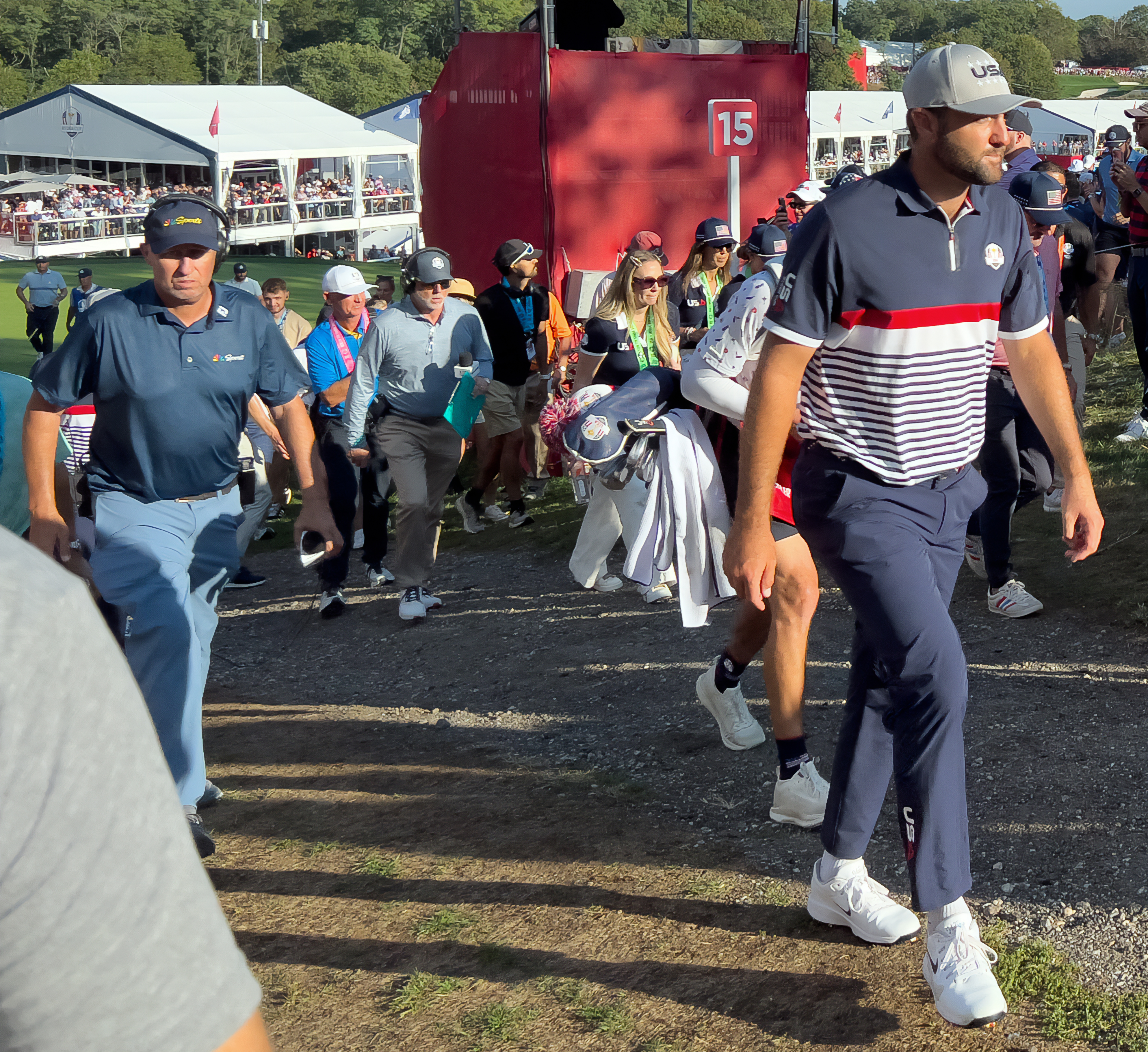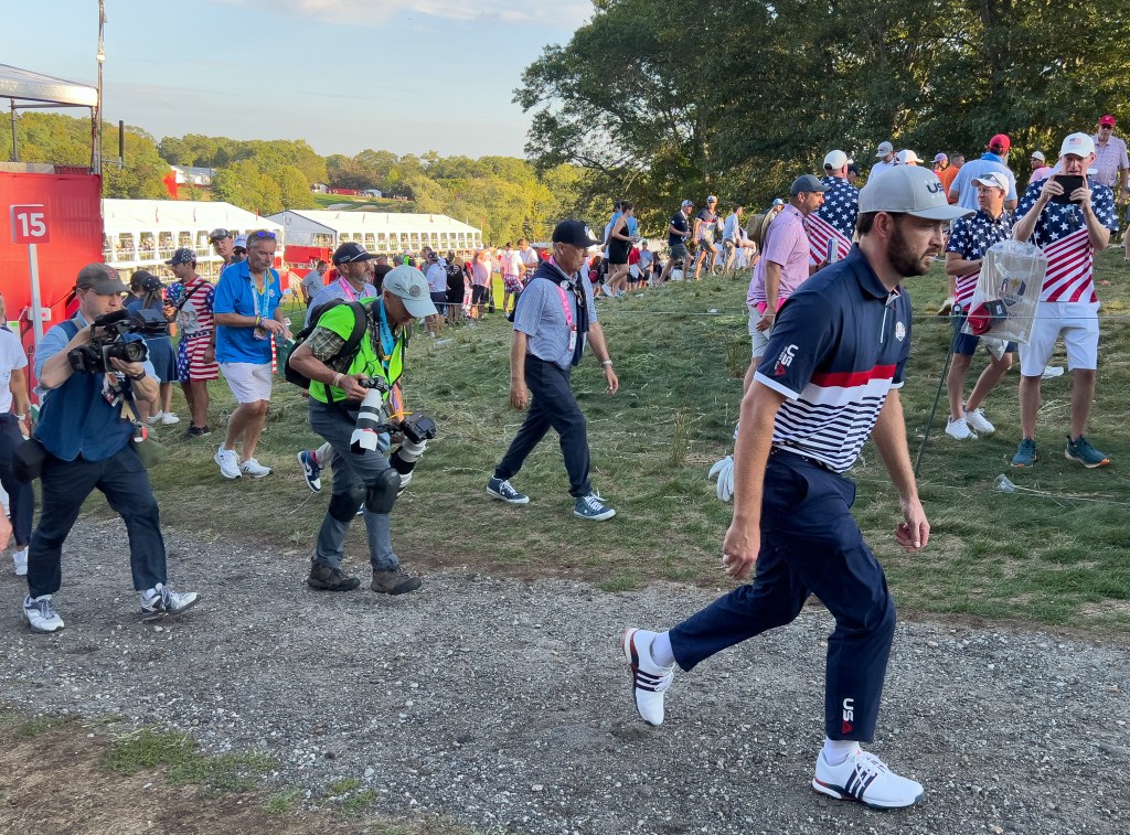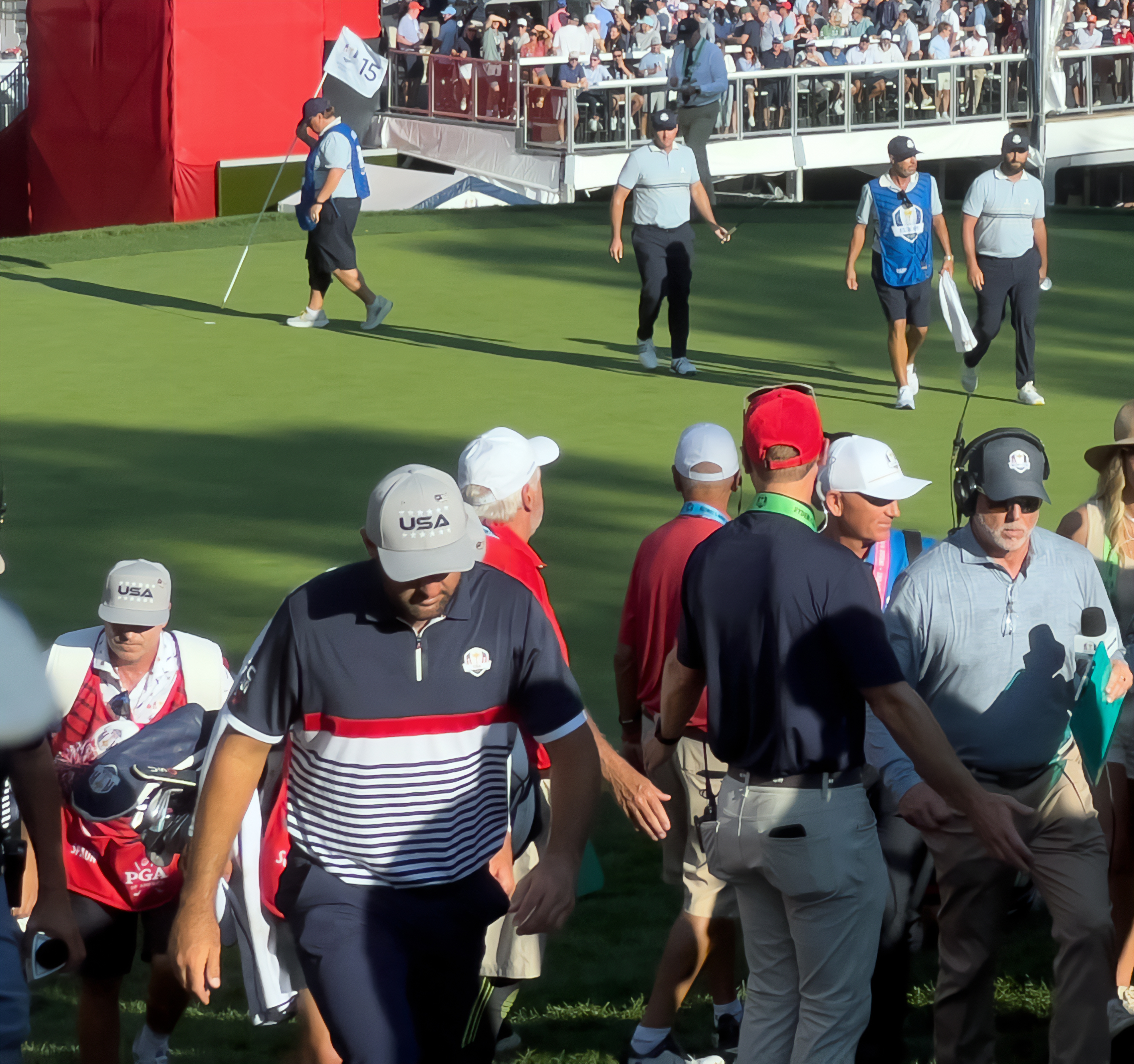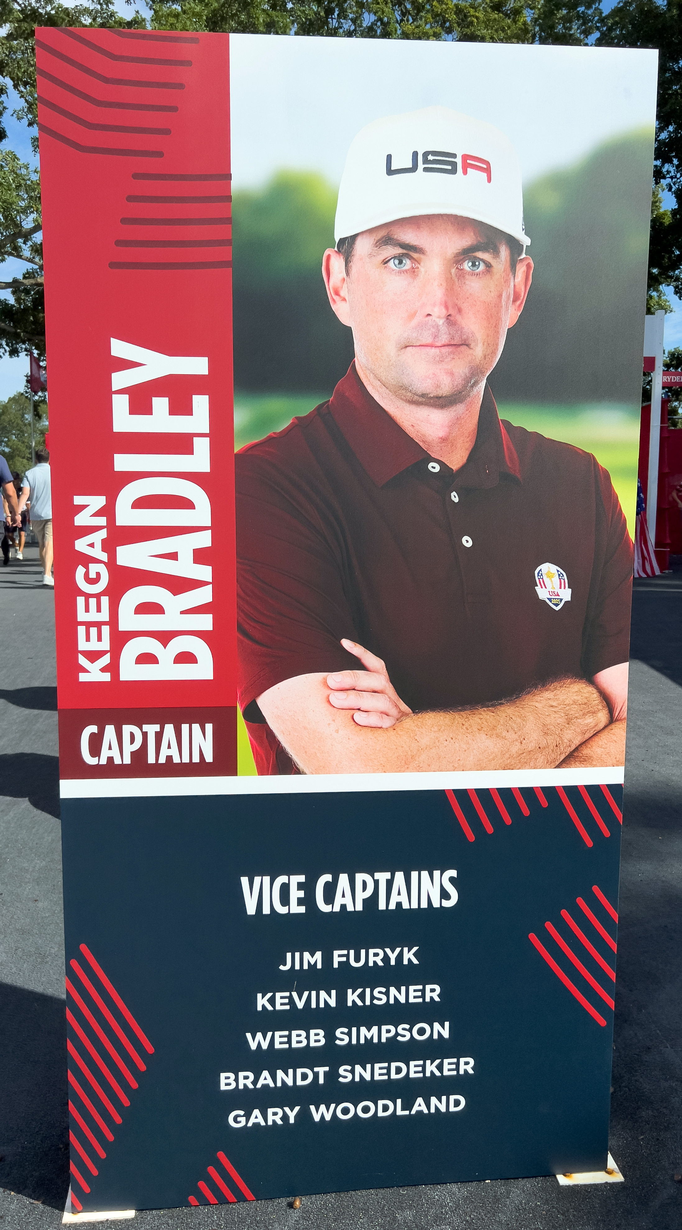 Even though my dad Bill and I were deferential to visiting European fans and respectful of Team Europe golfers, vice captains, and captain Luke Donald, the loss still hurts. So, this won’t be an in-depth recap, at least not verbally, and I won’t link to any media articles. The extensive gallery below will speak a thousand words per photo. That includes photos of players, caddies, vice captains, and captains of both teams. (St. John’s University alumnus Keegan Bradley was Team U.S.A. captain.)