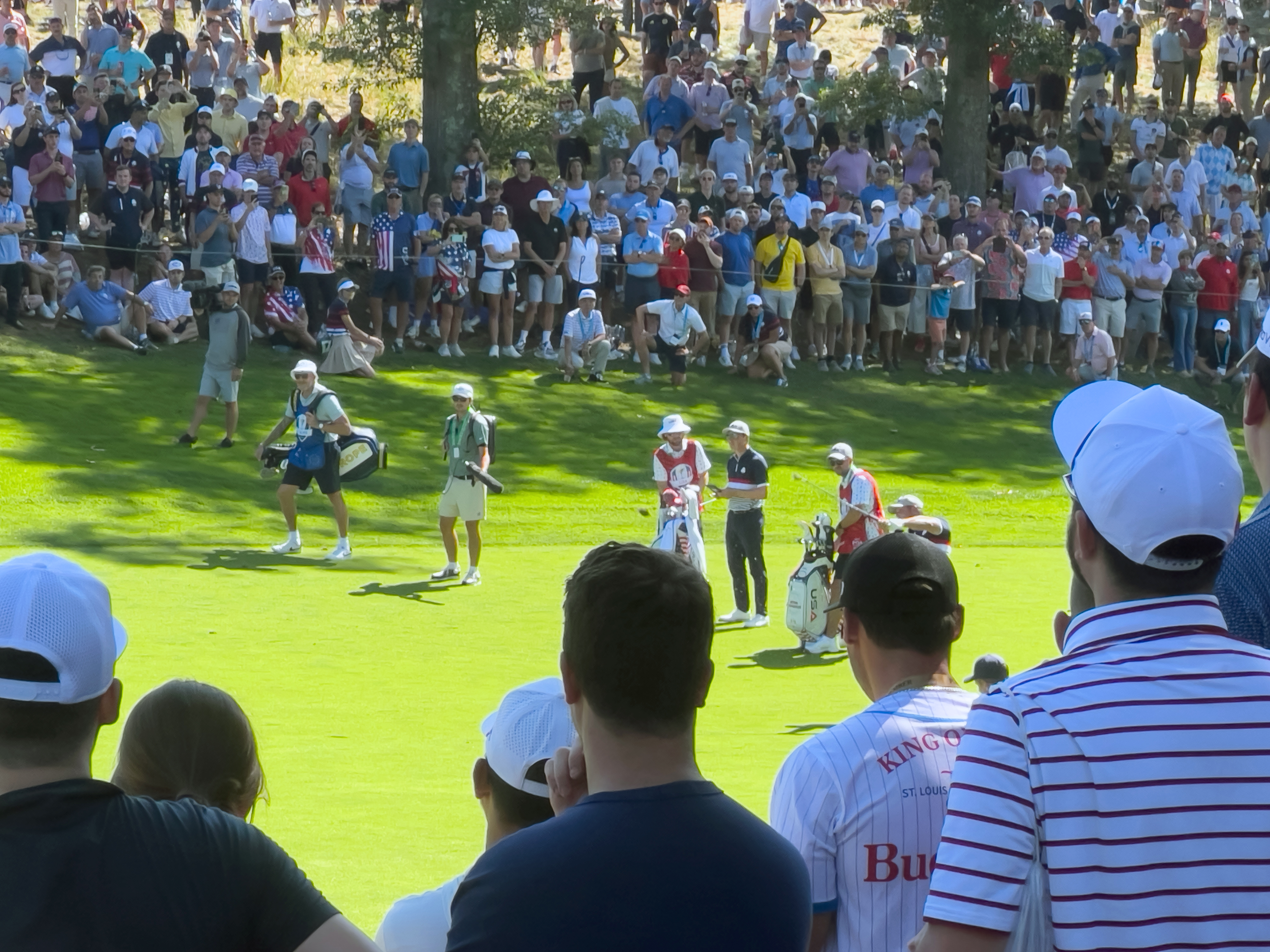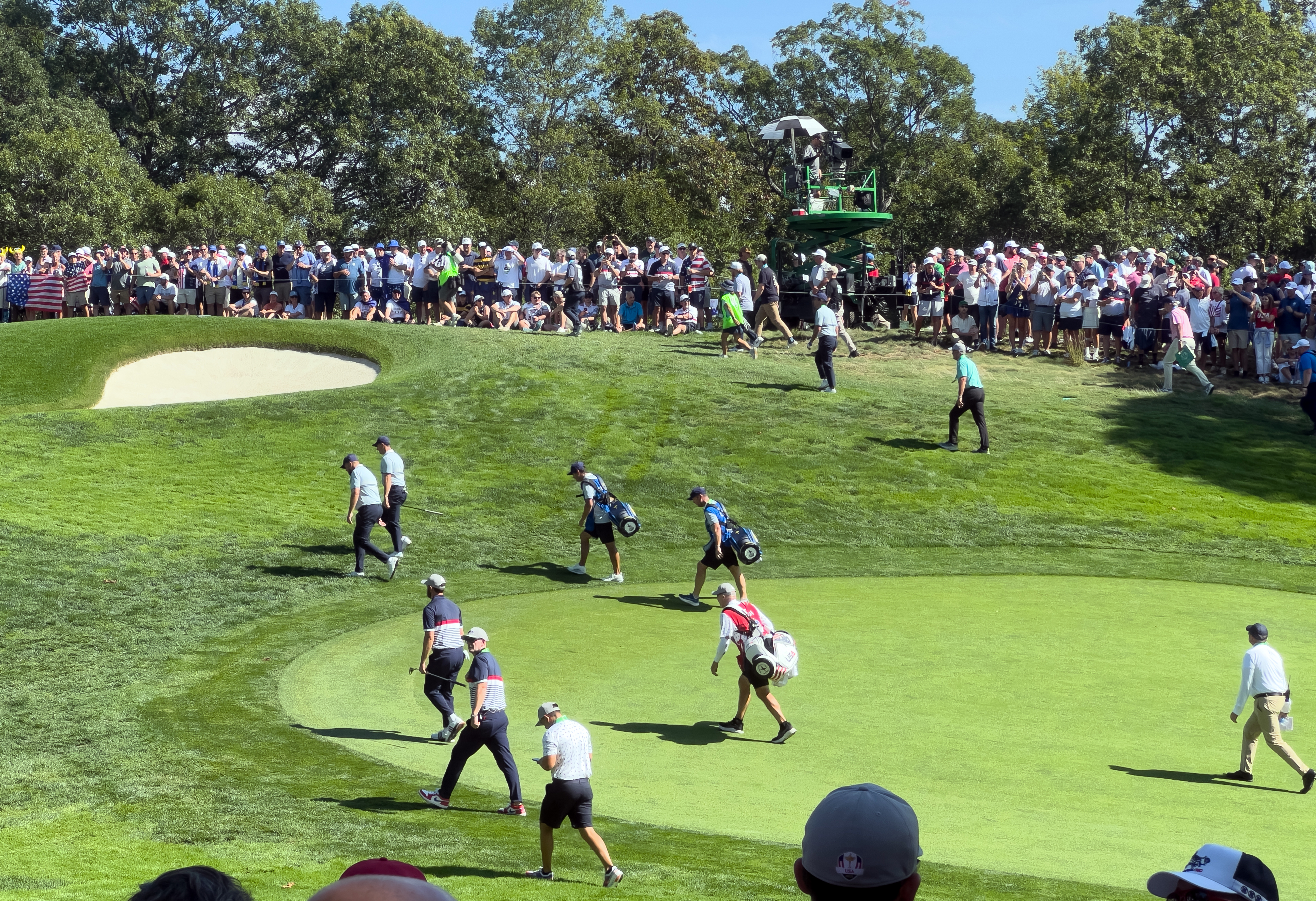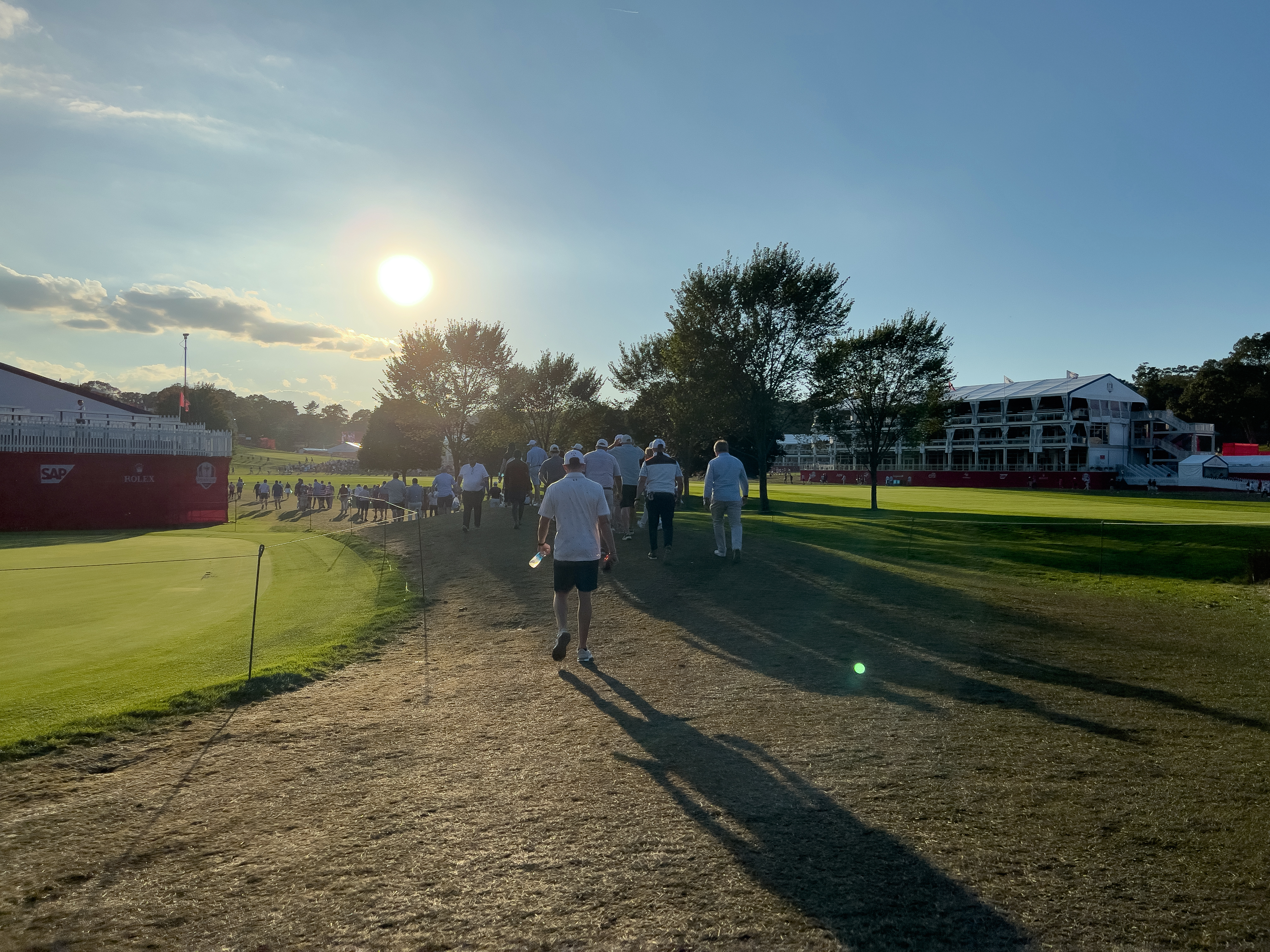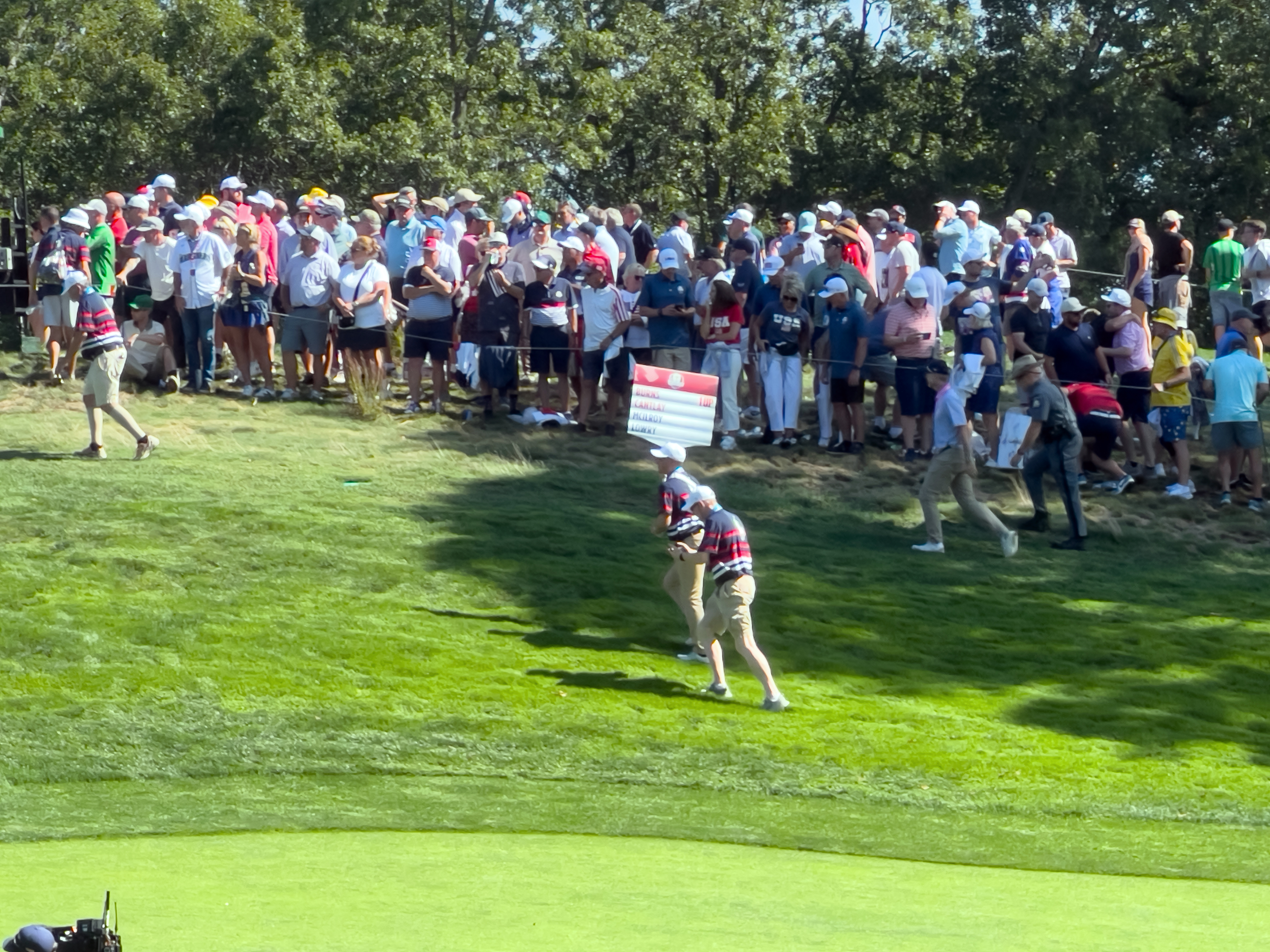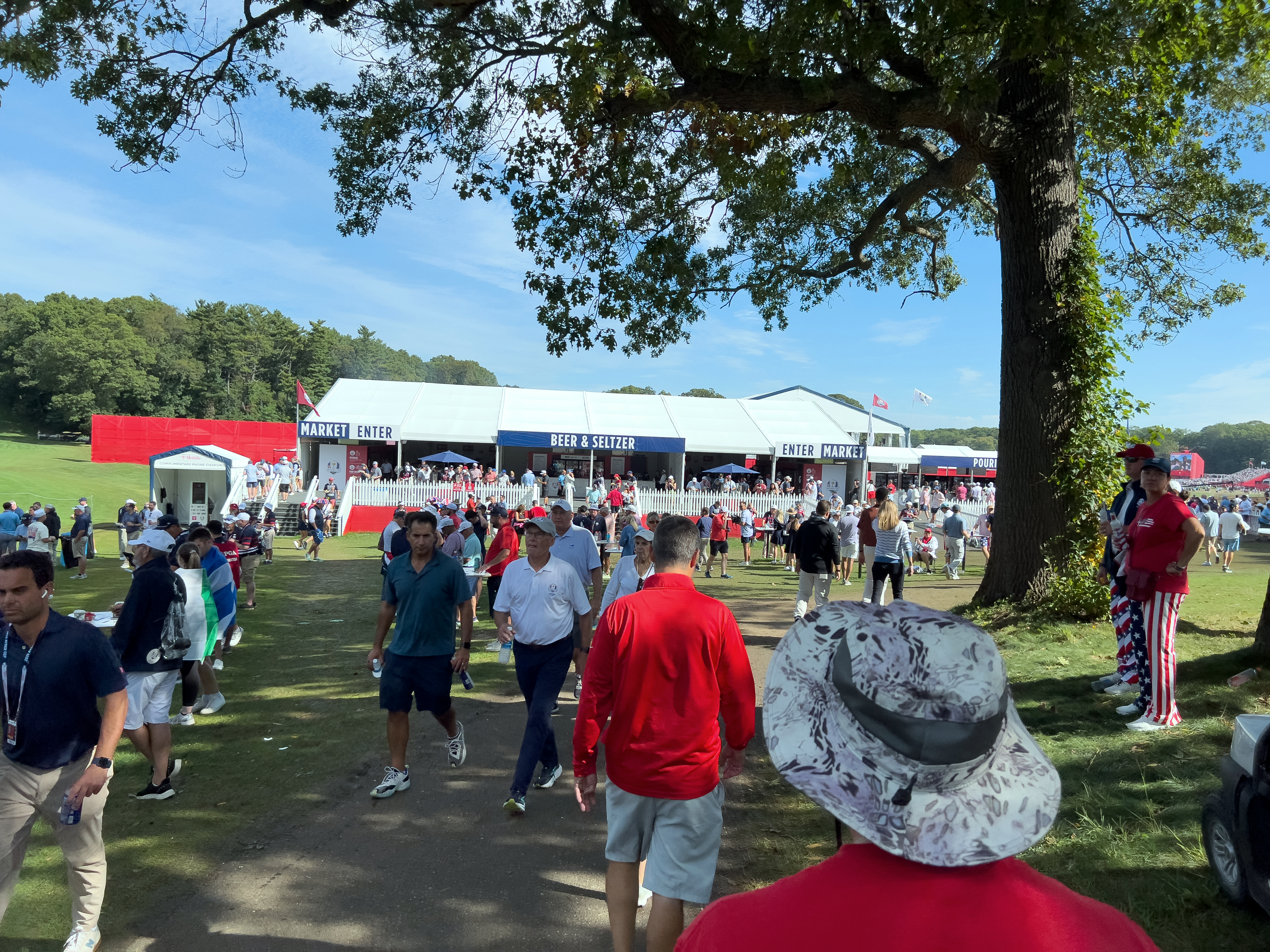 Even though my dad Bill and I were deferential to visiting European fans and respectful of Team Europe golfers, vice captains, and captain Luke Donald, the loss still hurts. So, this won’t be an in-depth recap, at least not verbally, and I won’t link to any media articles. The extensive gallery below will speak a thousand words per photo. That includes photos of players, caddies, vice captains, and captains of both teams. (St. John’s University alumnus Keegan Bradley was Team U.S.A. captain.)