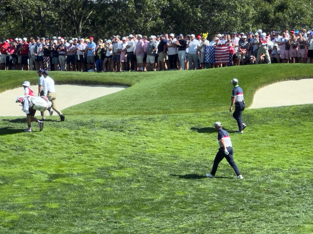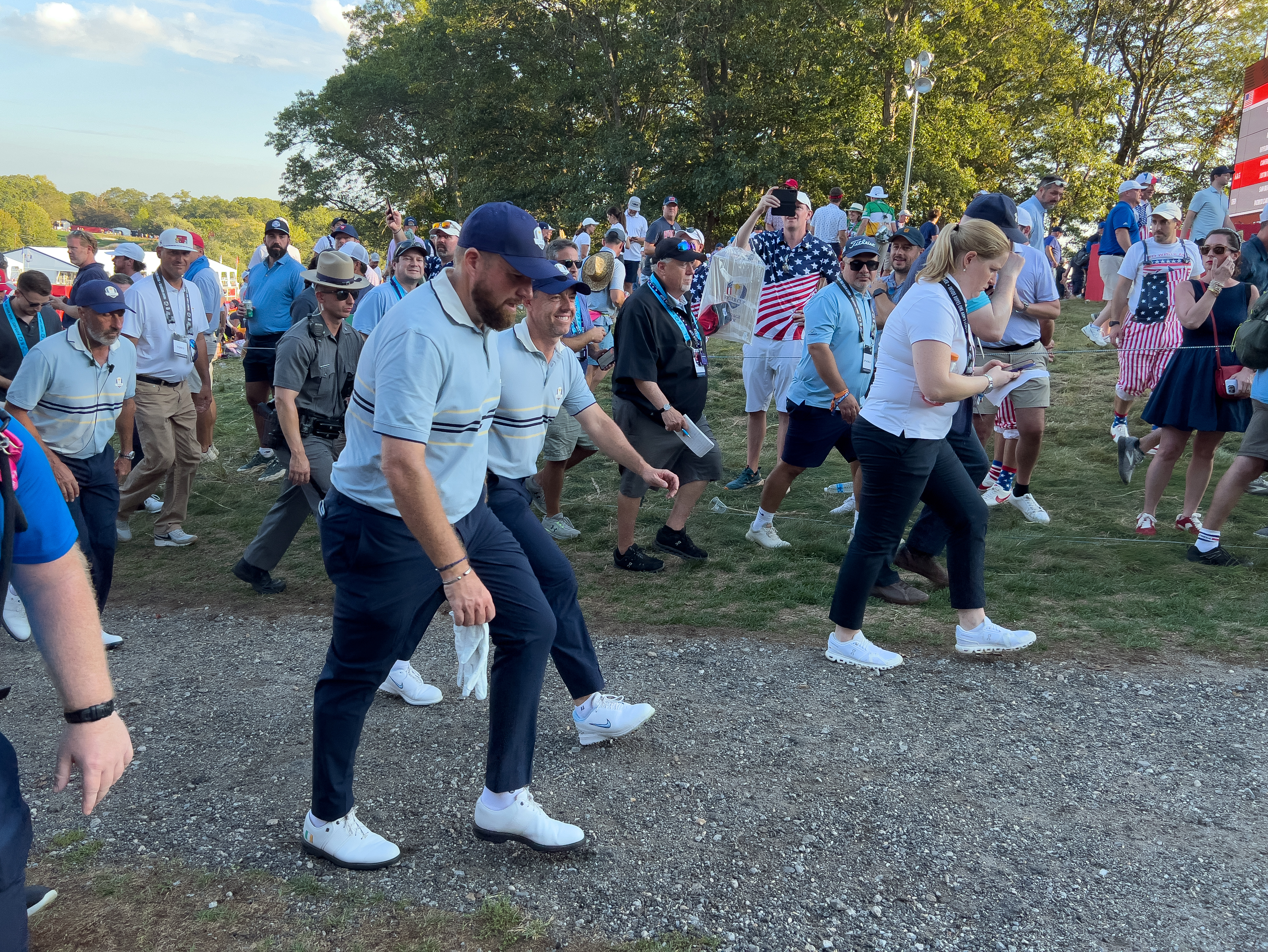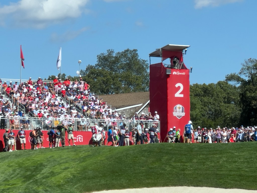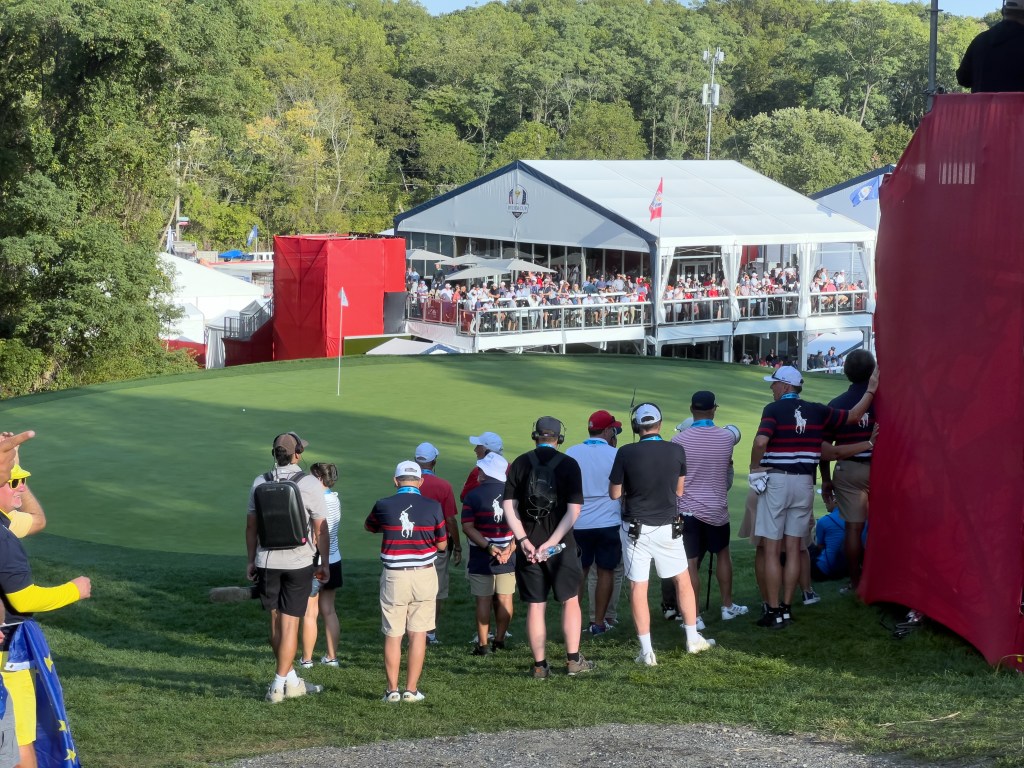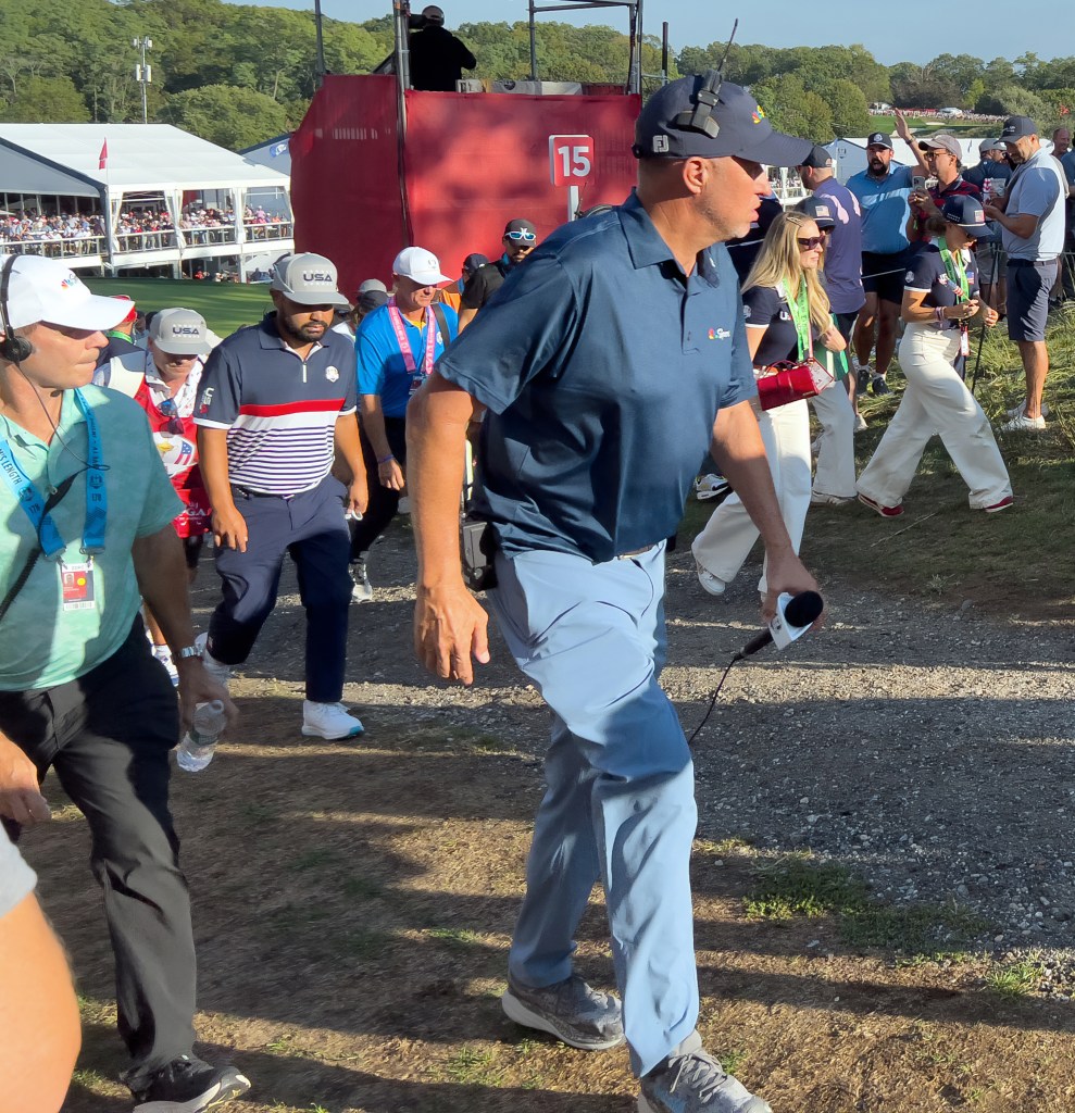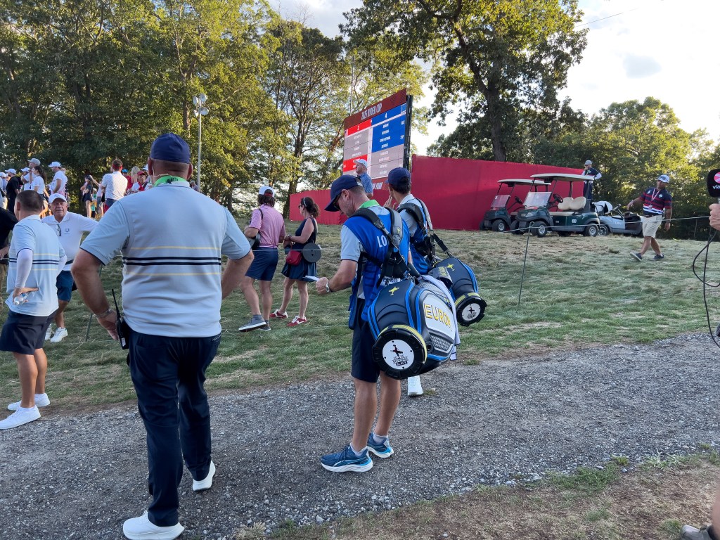 Even though my dad Bill and I were deferential to visiting European fans and respectful of Team Europe golfers, vice captains, and captain Luke Donald, the loss still hurts. So, this won’t be an in-depth recap, at least not verbally, and I won’t link to any media articles. The extensive gallery below will speak a thousand words per photo. That includes photos of players, caddies, vice captains, and captains of both teams. (St. John’s University alumnus Keegan Bradley was Team U.S.A. captain.)