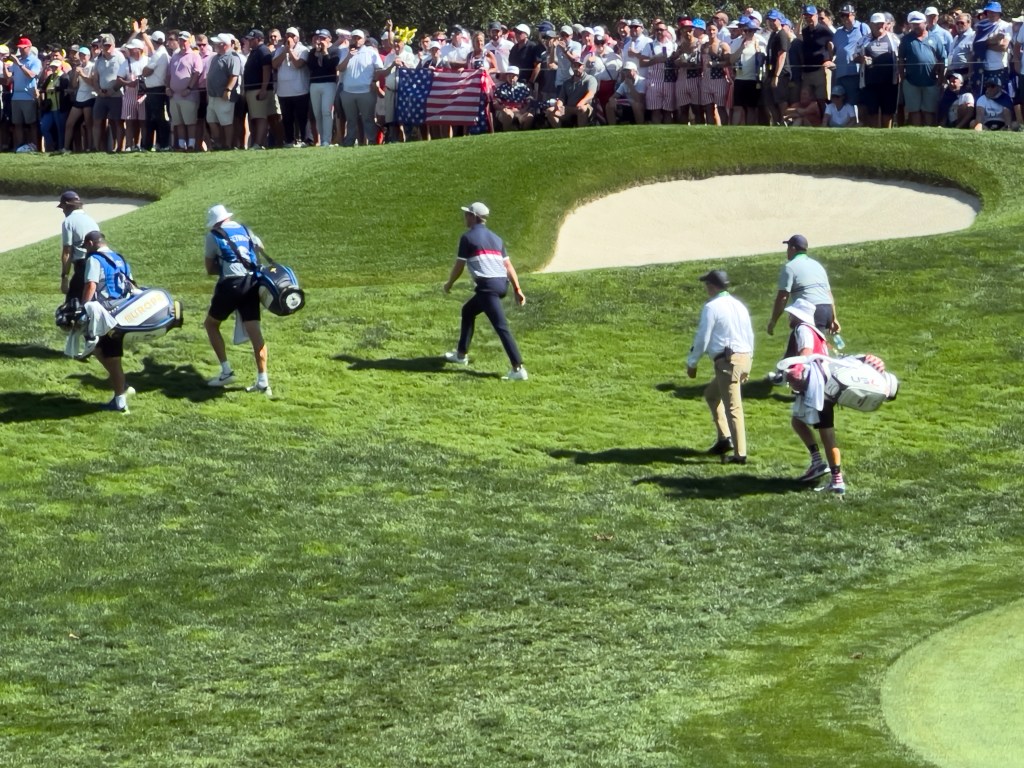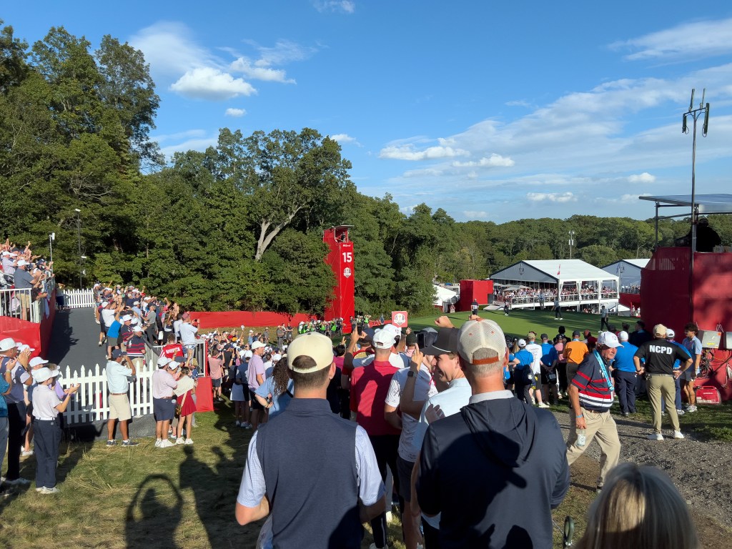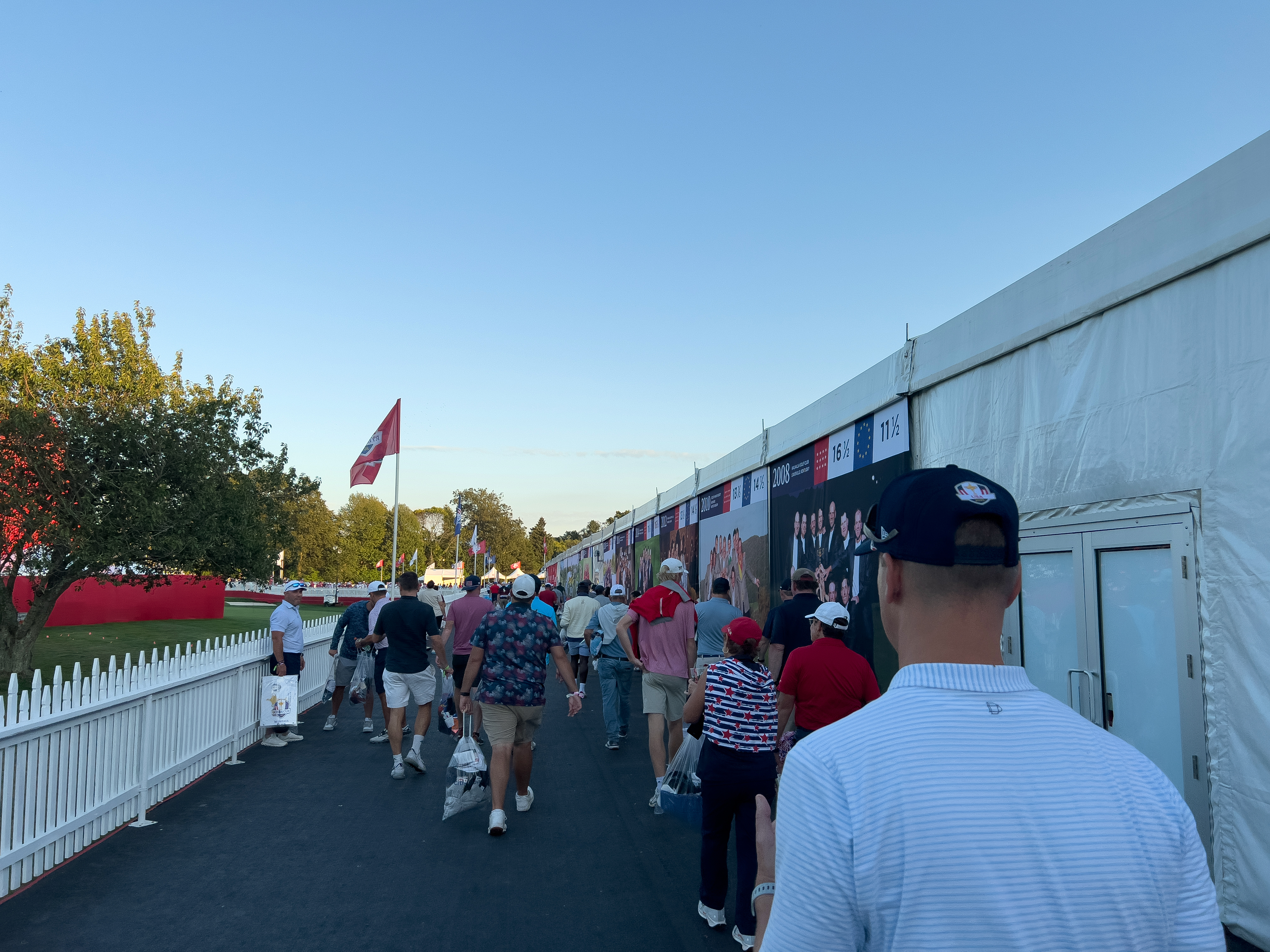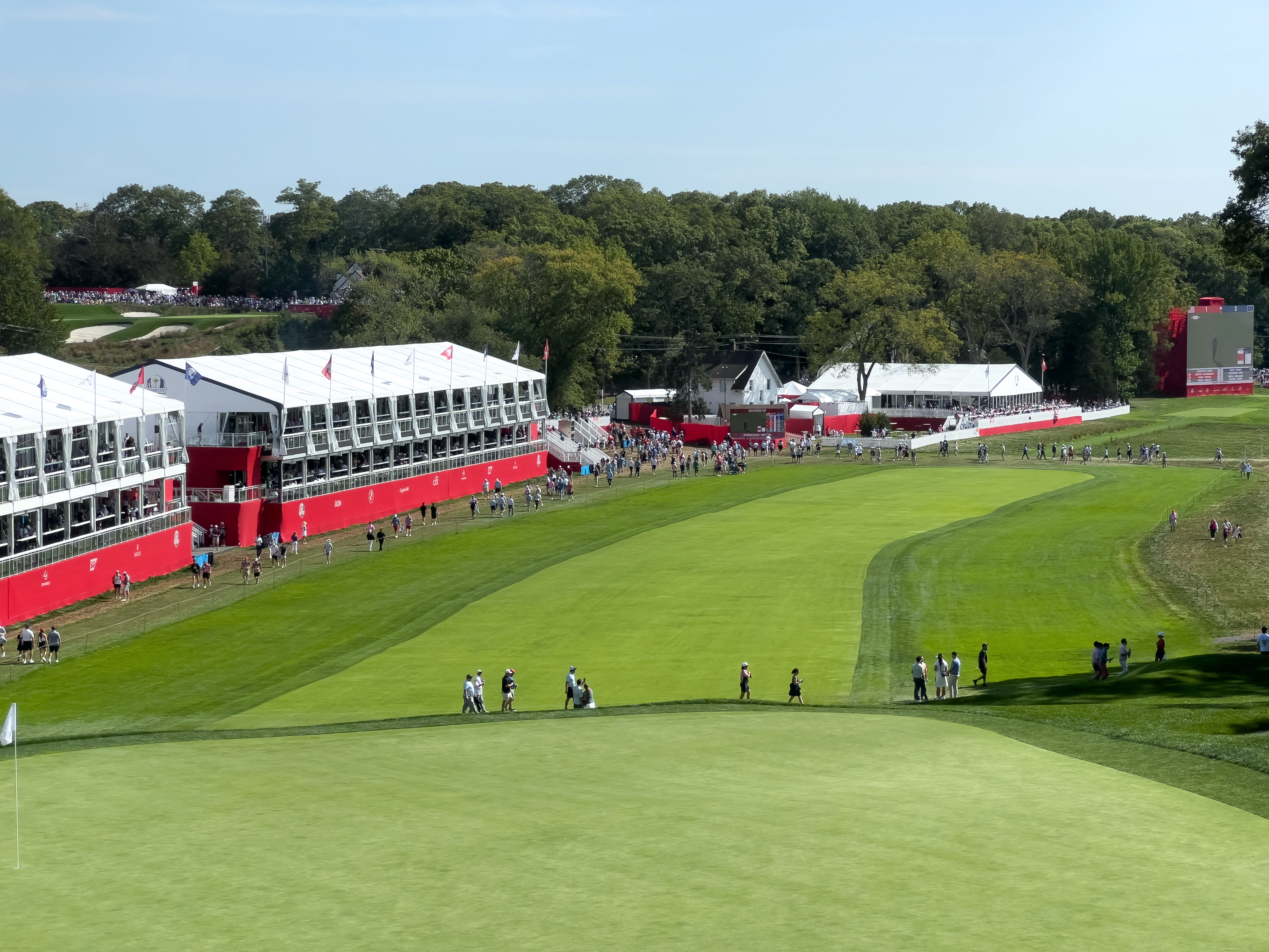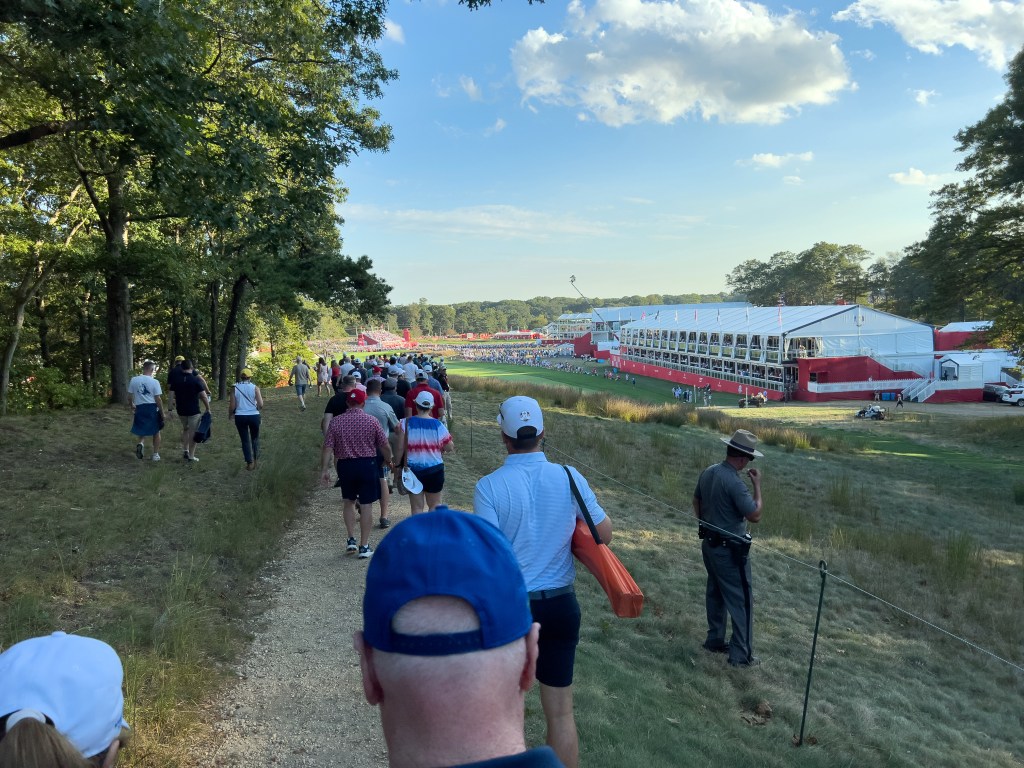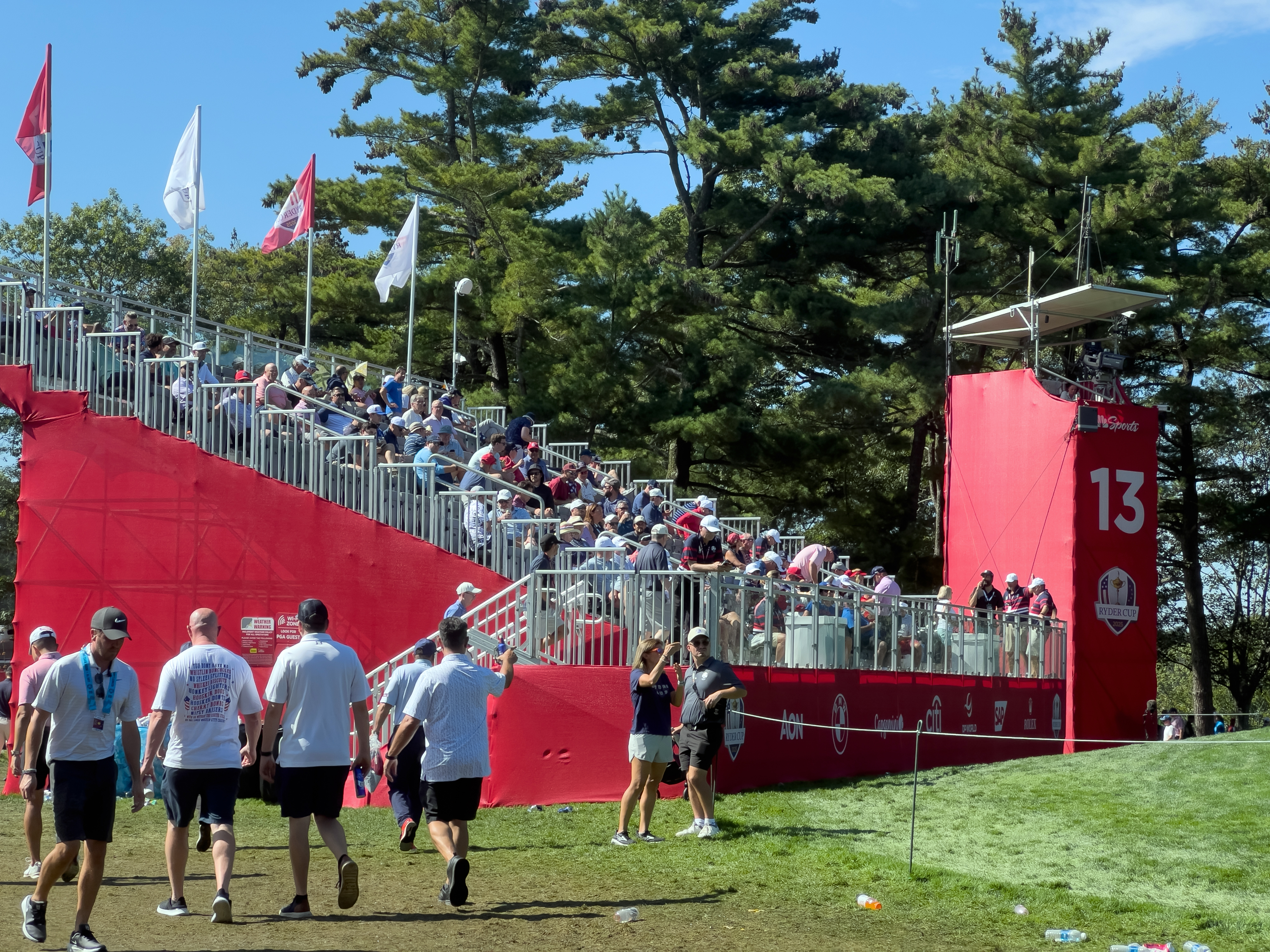 Even though my dad Bill and I were deferential to visiting European fans and respectful of Team Europe golfers, vice captains, and captain Luke Donald, the loss still hurts. So, this won’t be an in-depth recap, at least not verbally, and I won’t link to any media articles. The extensive gallery below will speak a thousand words per photo. That includes photos of players, caddies, vice captains, and captains of both teams. (St. John’s University alumnus Keegan Bradley was Team U.S.A. captain.)